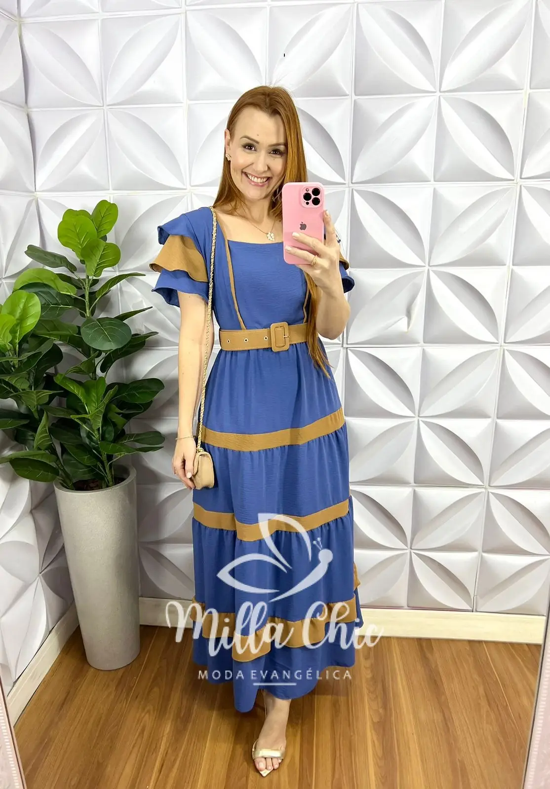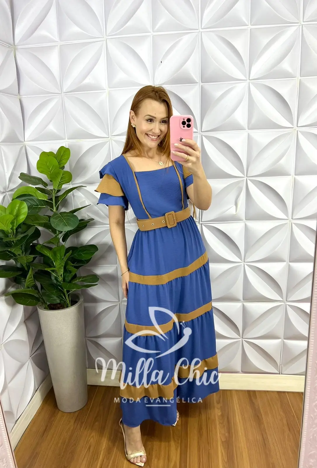 Vestido Todo no tecido Dunnas bem leve e fresquinho! Decote quadrado, Mangas com camadas de babadinhos, lastex nas costas para vestir bem, comprimento Mídi com marias e com listras nos entremeios estilo bicolor. Acompanha cinto encapado para dar um charme a mais!