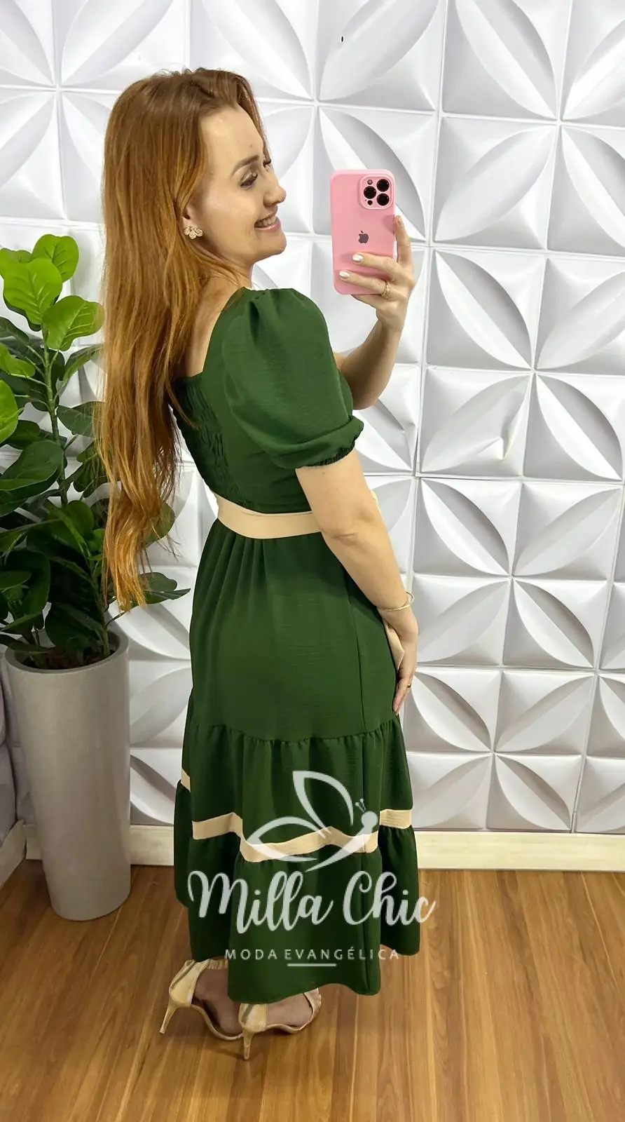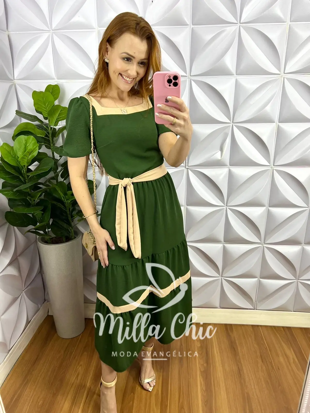 Vestido Dunna Mídi Com Marias e Cinto Bicolor Marcela - Verde - Milla Chic