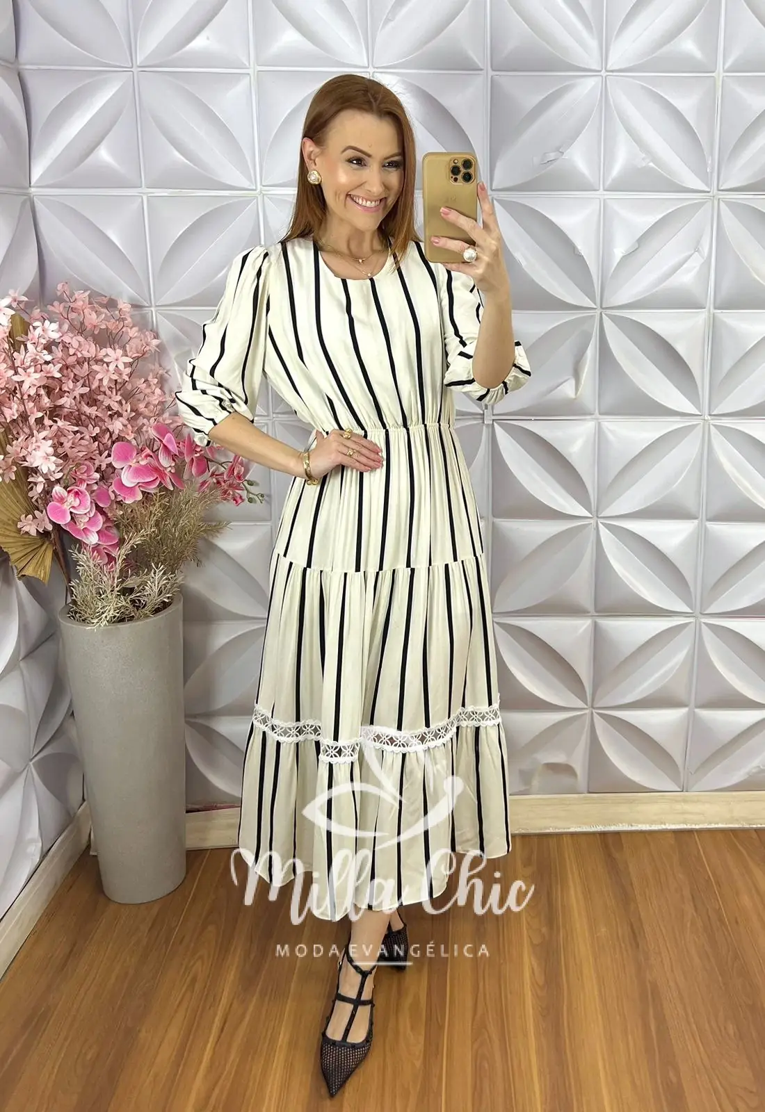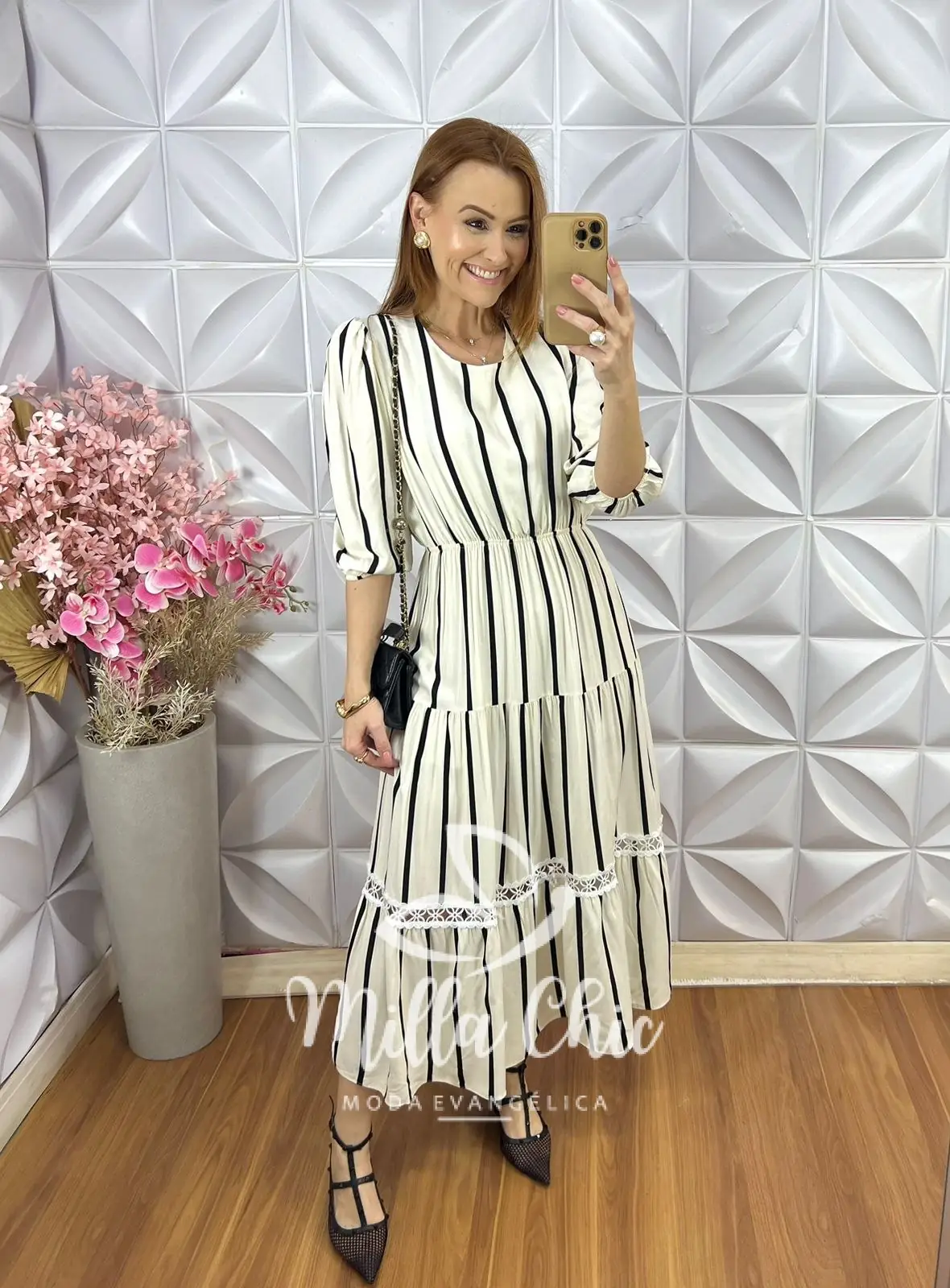 O vestido Eleonora faz você se sentir linda e estilosa. Fresco e muito confortável, quando você veste passa aquela feminilidade, delicadeza e elegância.