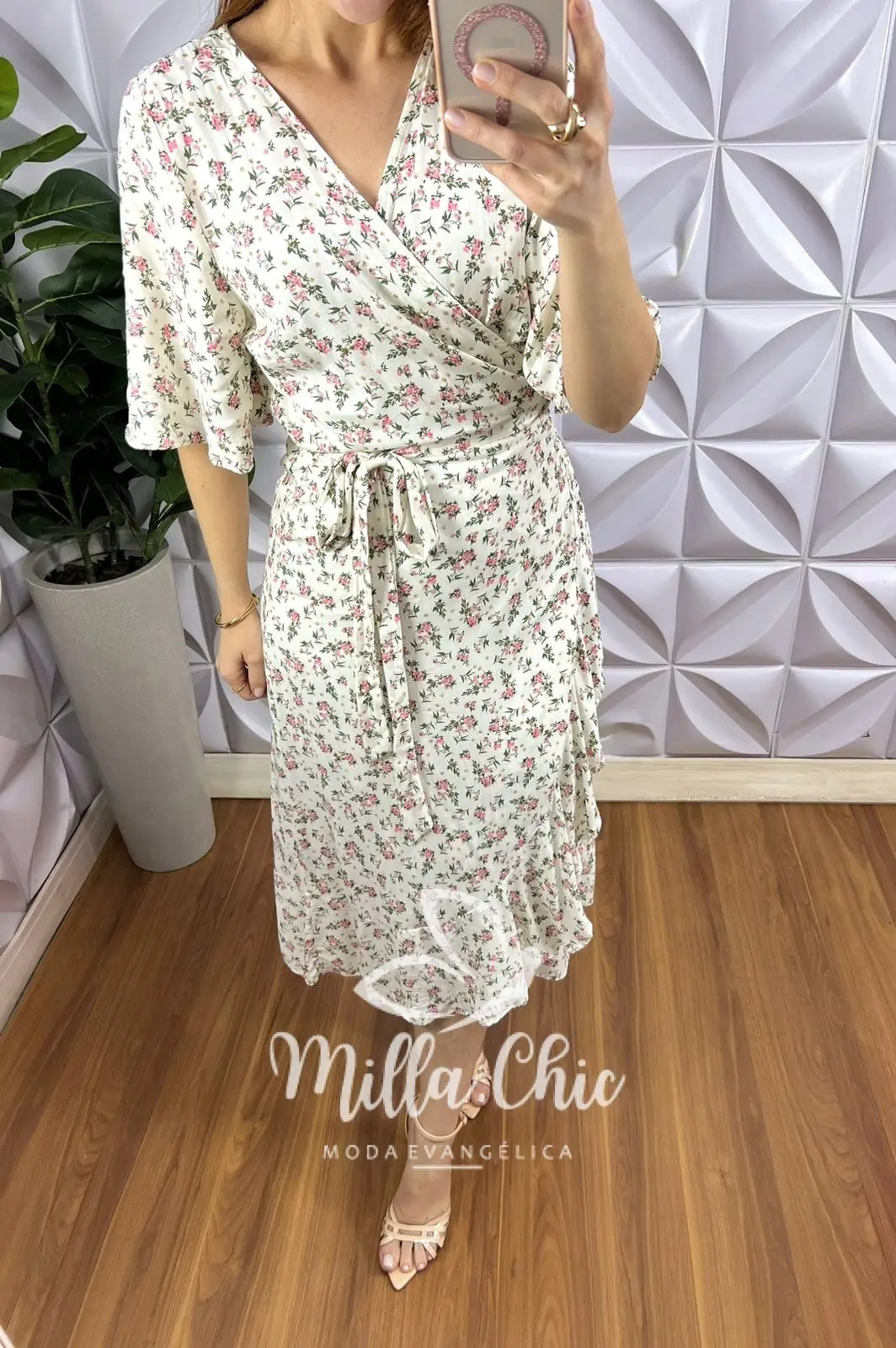 Vestido no Viscolinho Tecido com caimento leve e fresquinho! Modelagem envelope perfeito para todos os biótipos! todo floral que esta um charme!