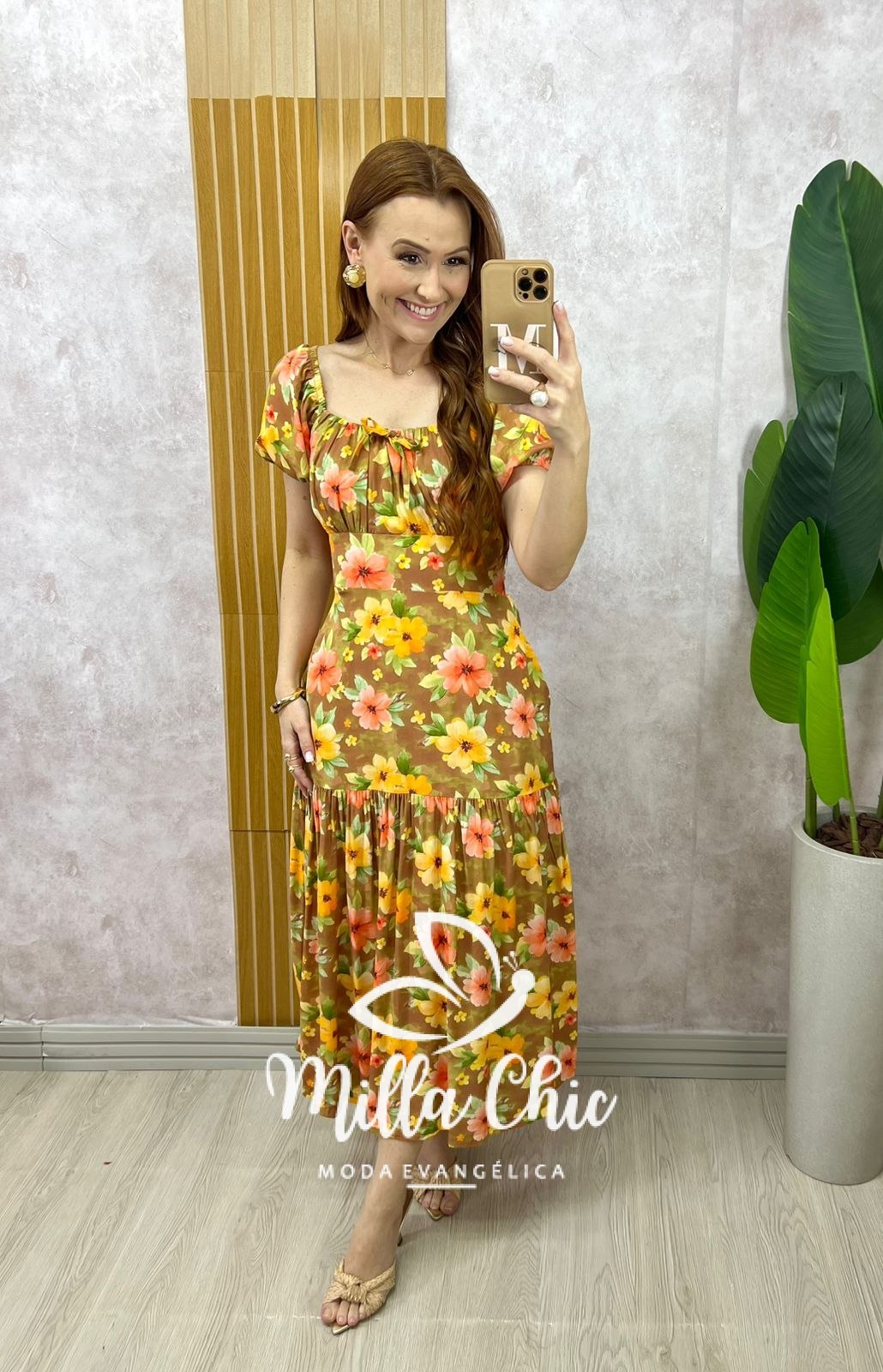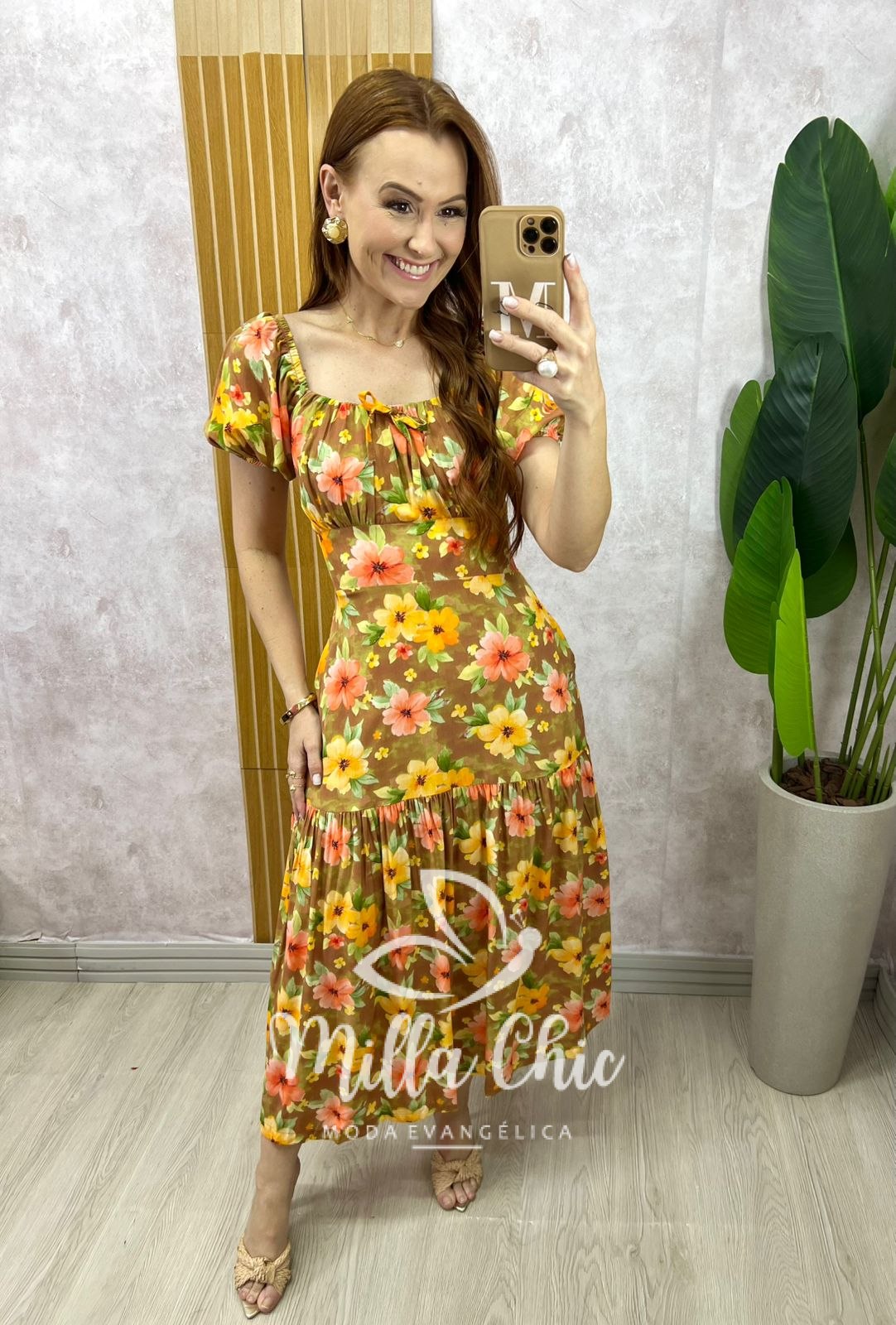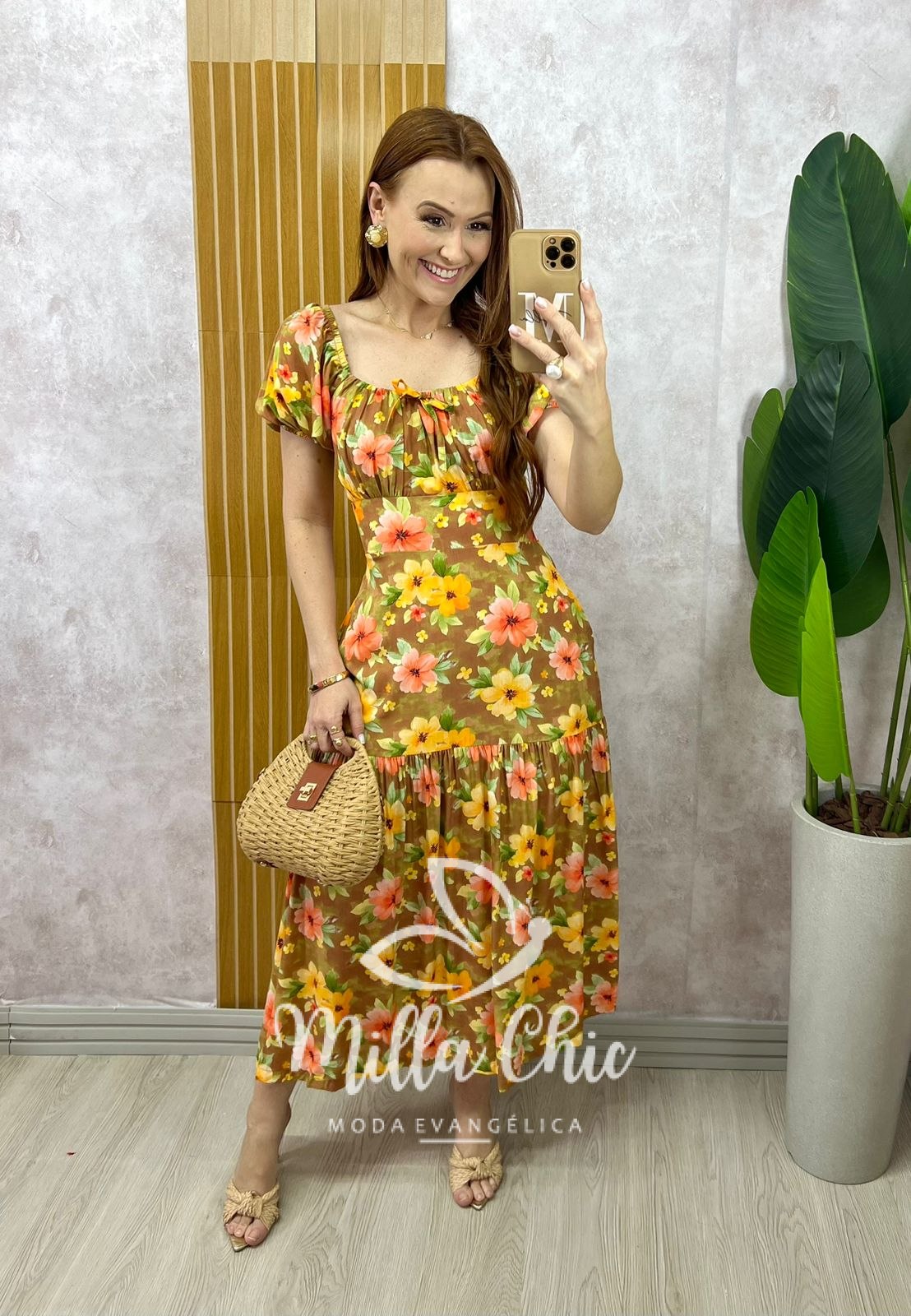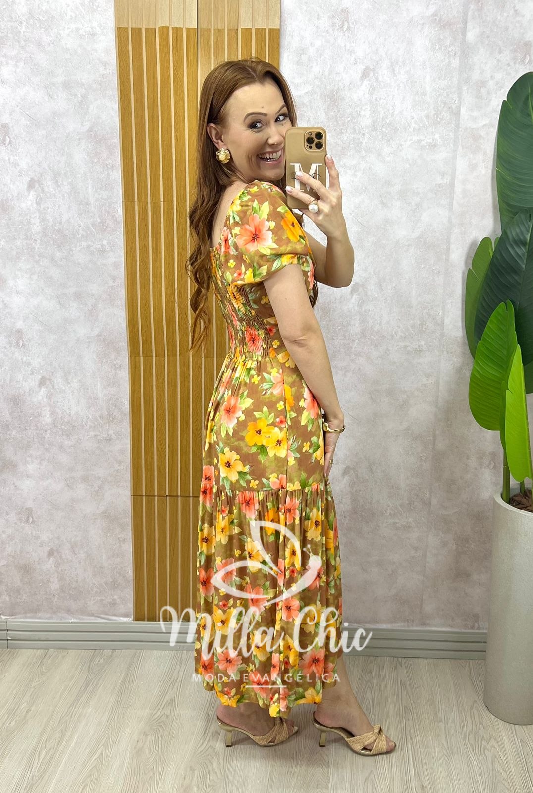 O vestido Érica tem essa estampa linda que transmite elegância e autenticidade. Ele apresenta um design super midi a longo possui elástex nas costas que valoriza a silhueta feminina, proporcionando um caimento perfeito. Ele une praticidade e charme, permitindo que você carregue estilo encantador.