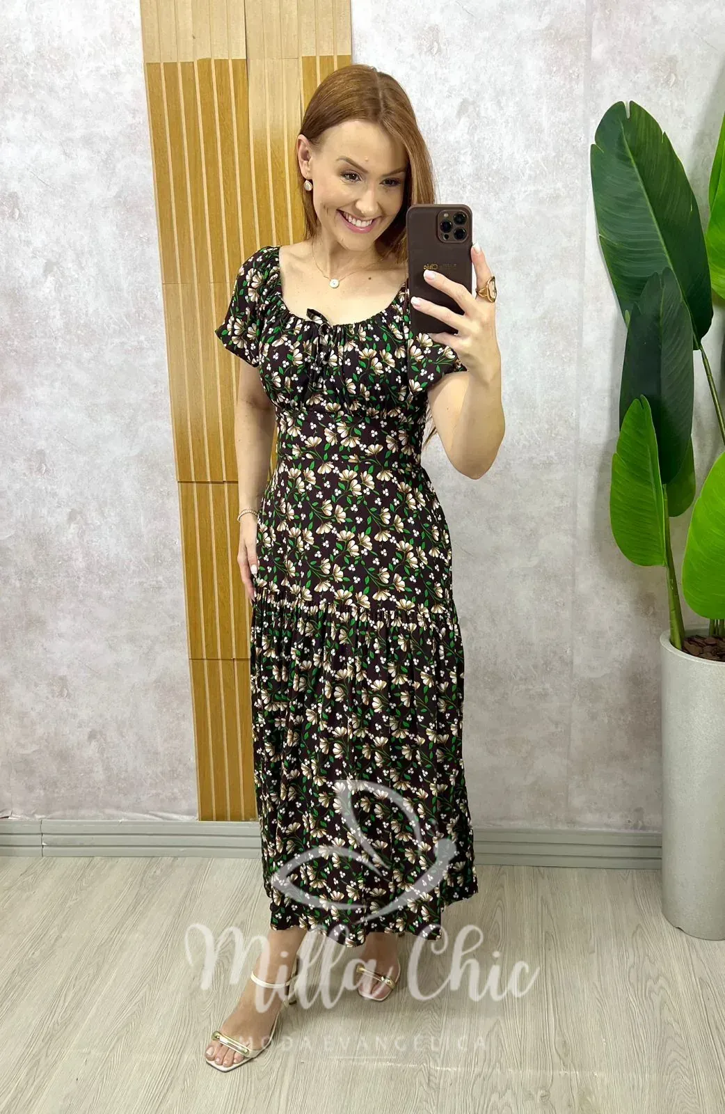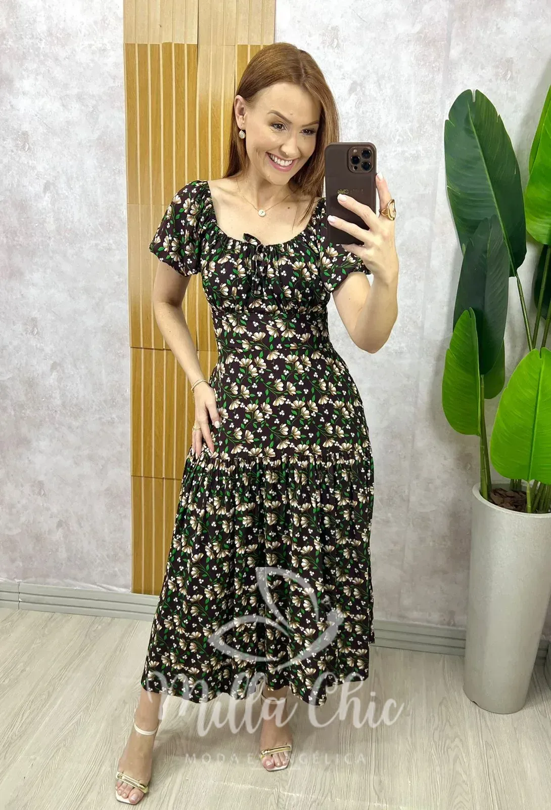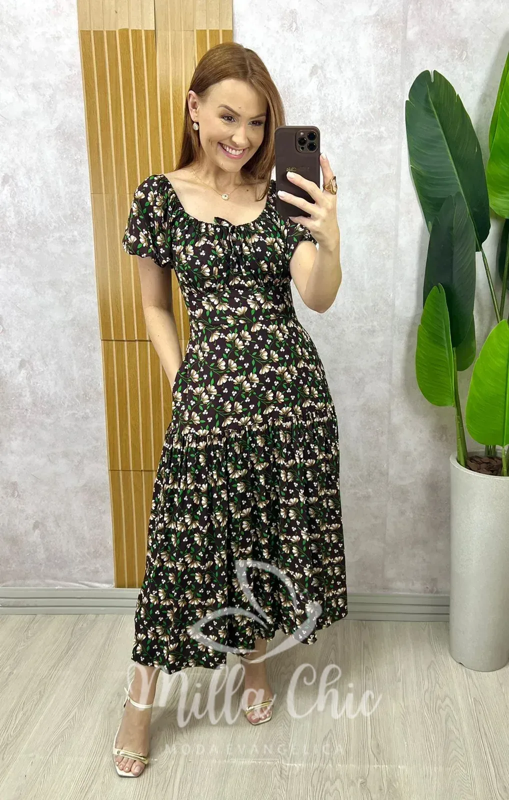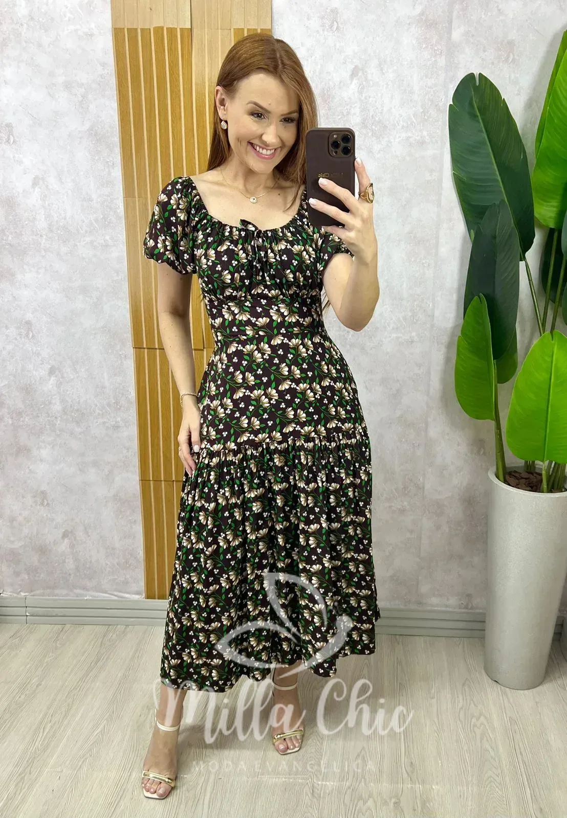 Milla Chic - Vestido Érica  - Caramelo  floral (cópia)