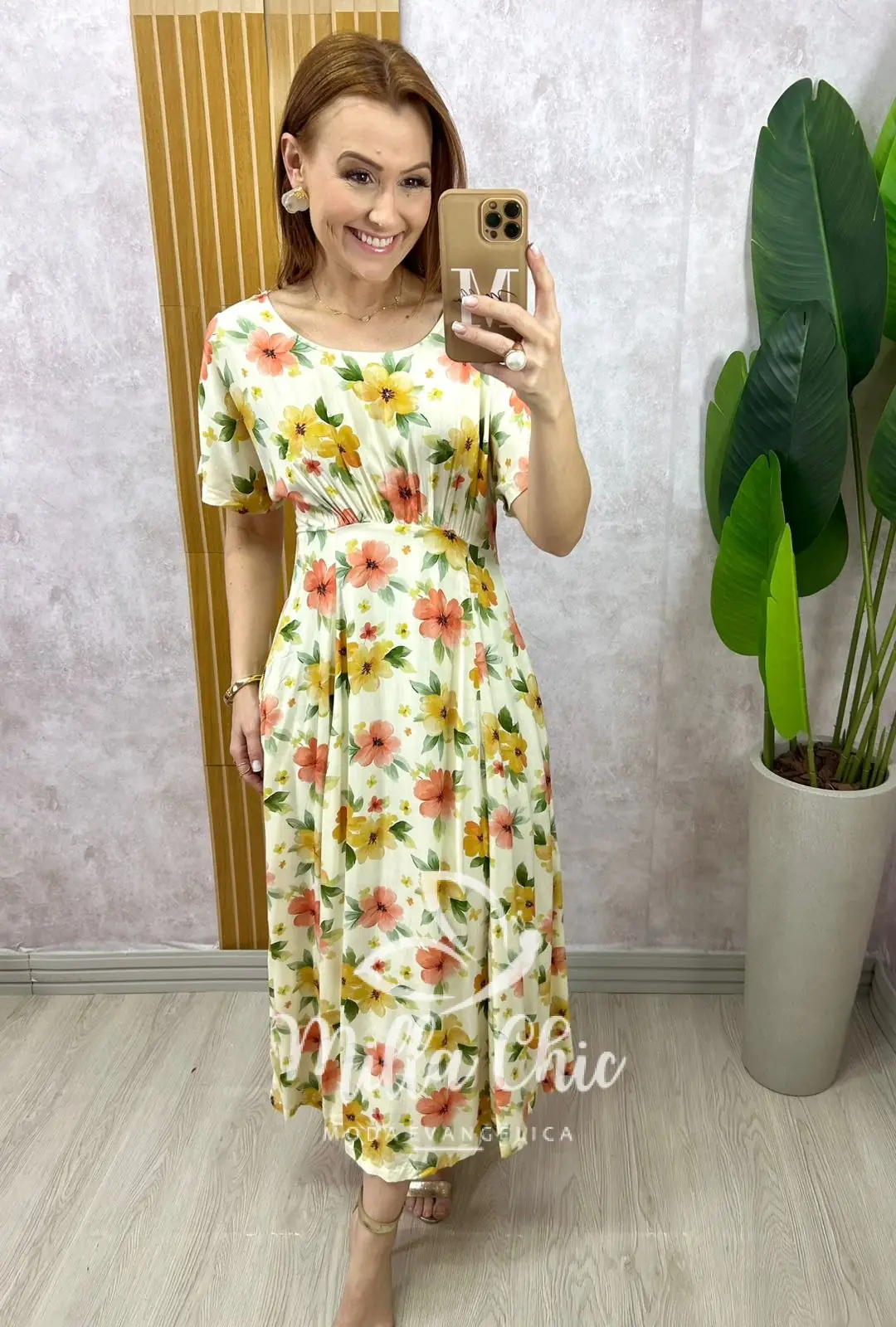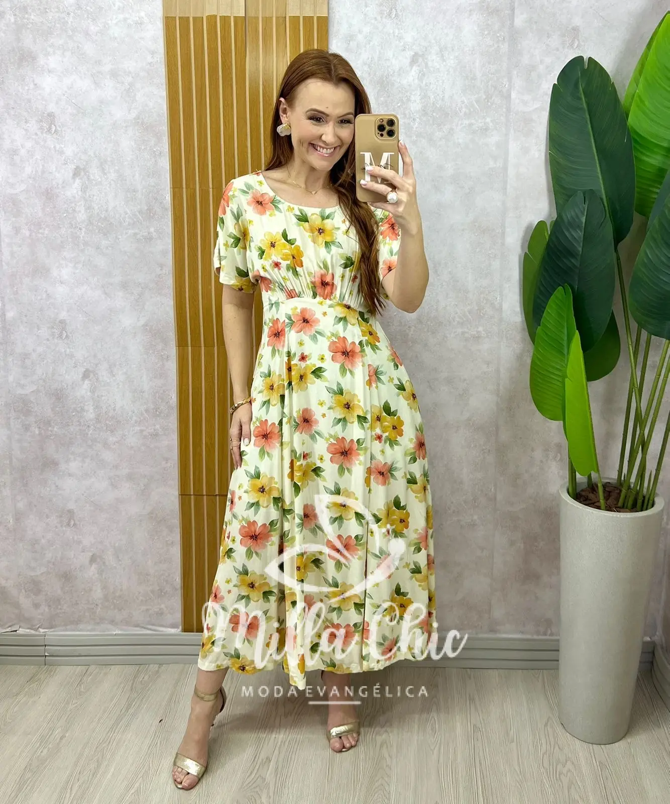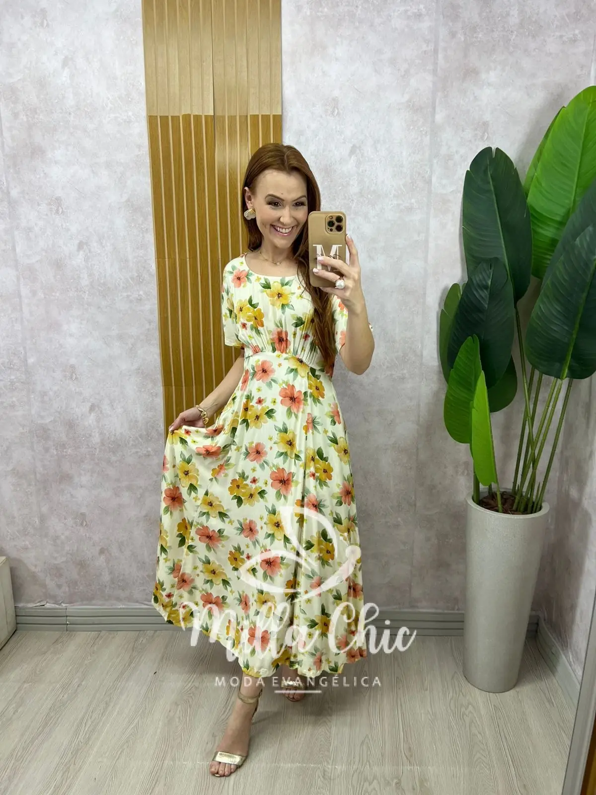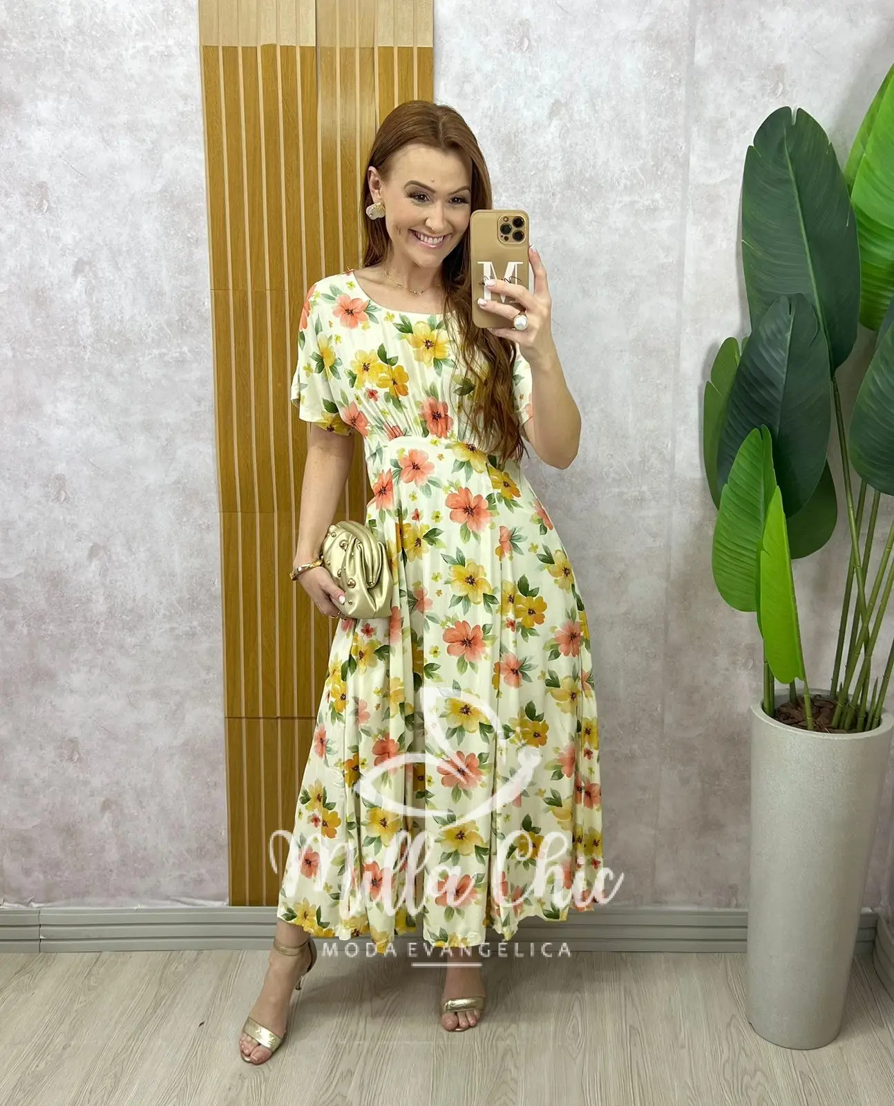 O vestido Esmeralda tem essa estampa linda que transmite elegância e autenticidade. Ele apresenta um design longo possui elástex nas costas que valoriza a silhueta feminina, proporcionando um caimento perfeito. Ele une praticidade e charme, permitindo que você carregue estilo encantador.