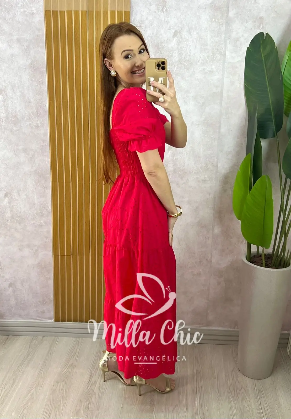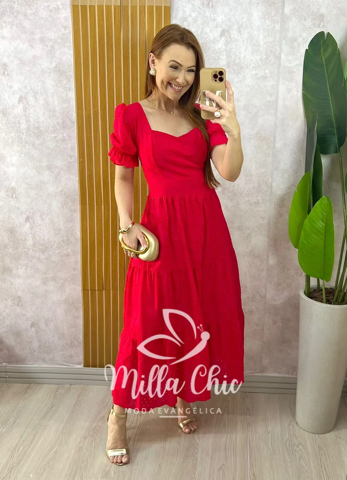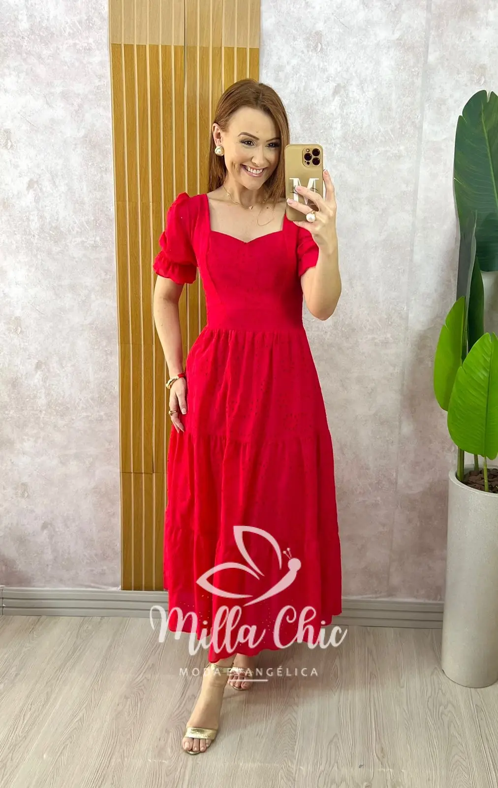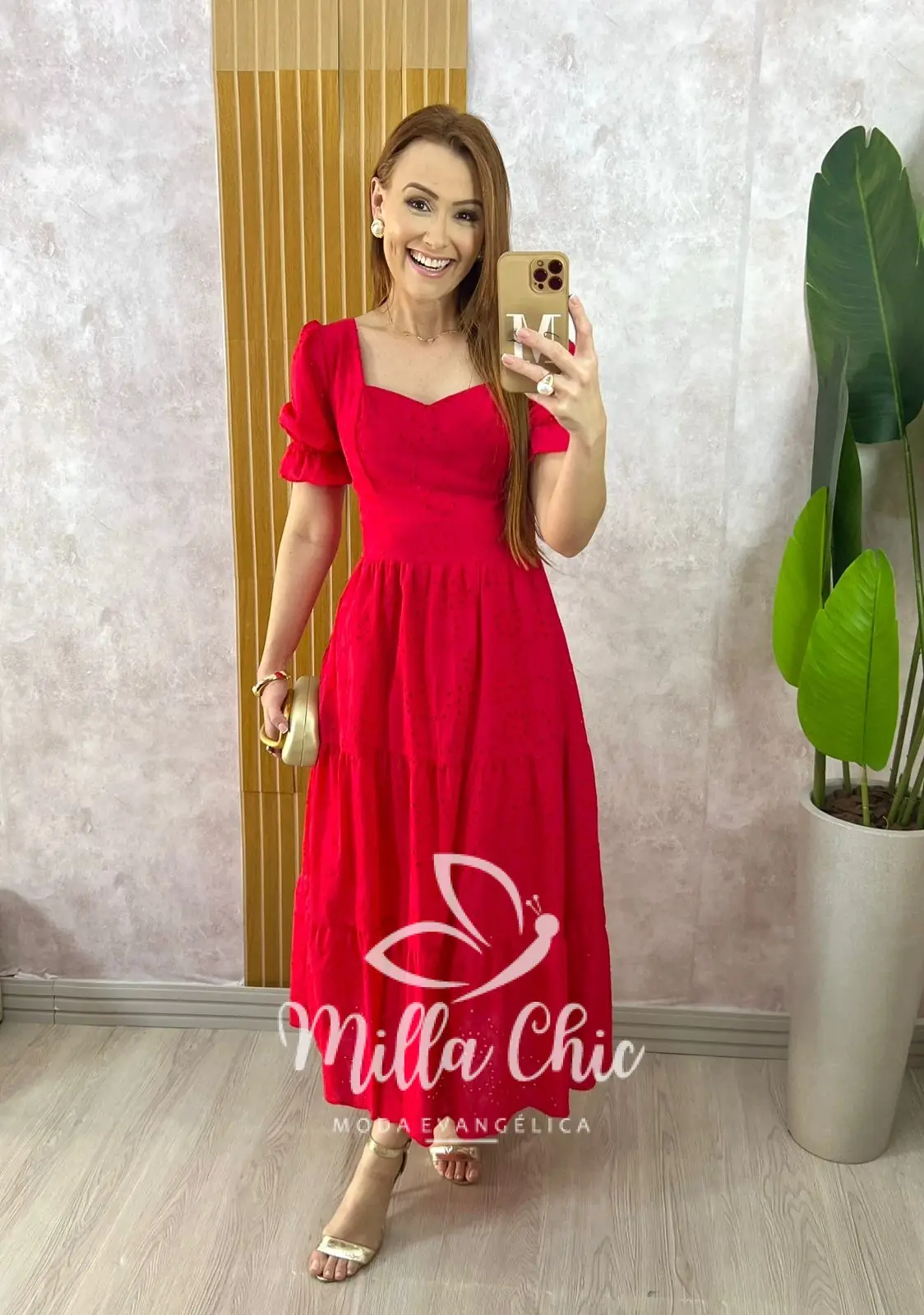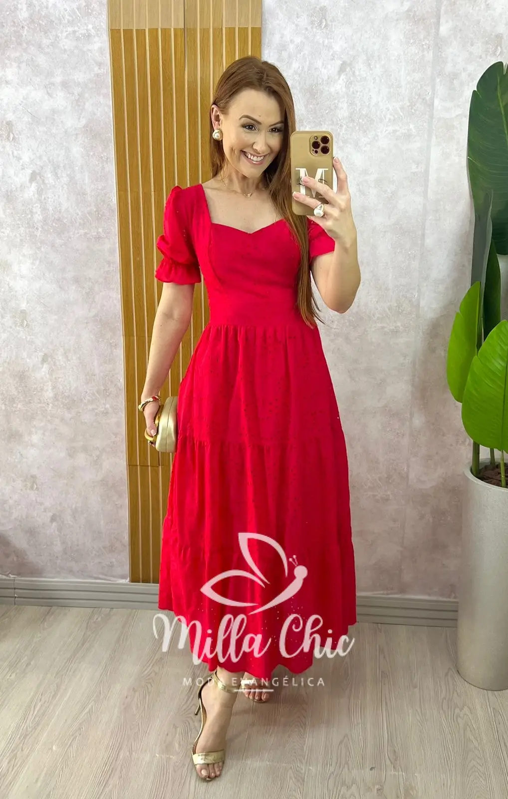Vestido Estela Lesie Algodão Bordada – Vermelho