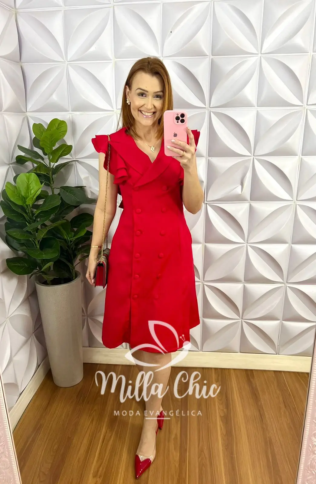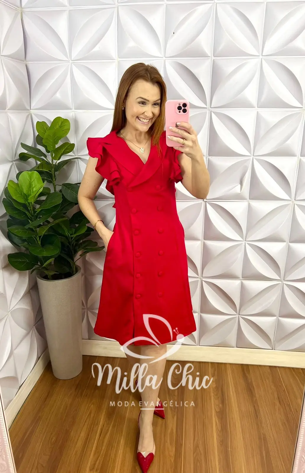Vestido Estilo Sobretudo Alfaiataria Botão Encapado Giovana - Vermelho - Milla Chic
