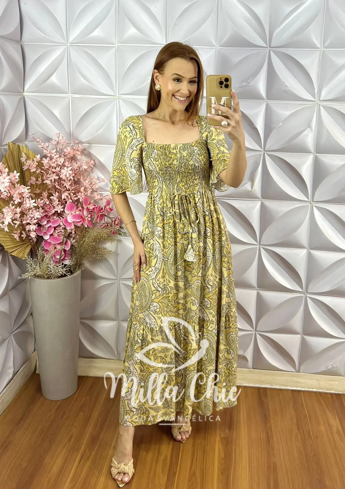O vestido Fabiana tem essa estampa mosaico muito elegante e bem verão que transmite alegria, elegância e autenticidade. Ele apresenta um design longo com elastex na parte da blusa que valoriza a silhueta feminina e deixa perfeito no busto, proporcionando um caimento perfeito sem perder o conforto. Manga raglan e decote quadrado.