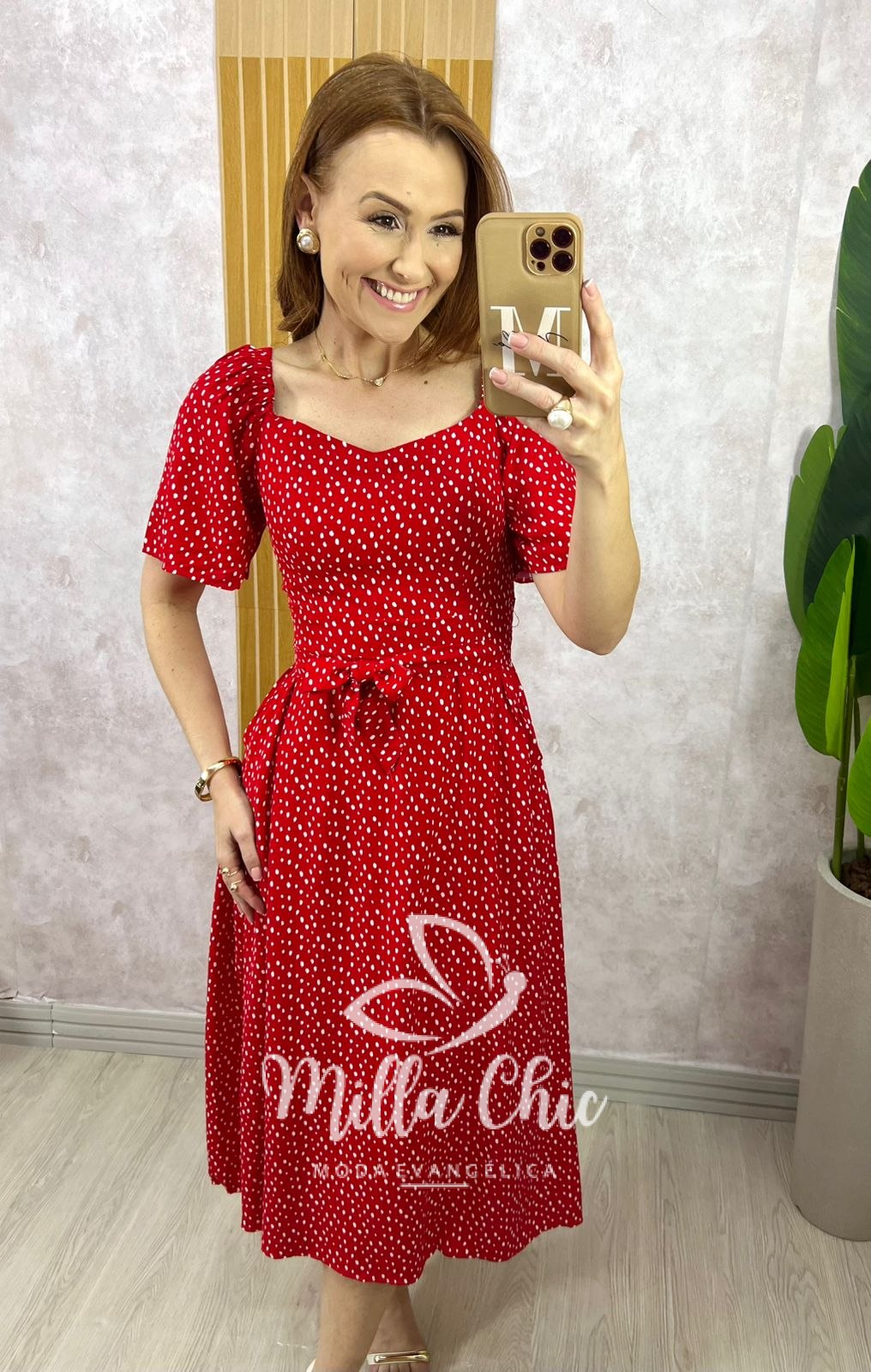 Aquele vestido para usar durante o dia ou a noite . Para o culto ou para um almoço de domingo ele vai te deixar lindona e feminina. O cinto faixa já vem costurado nele e você pode fazer o laço na frente ou atrás .