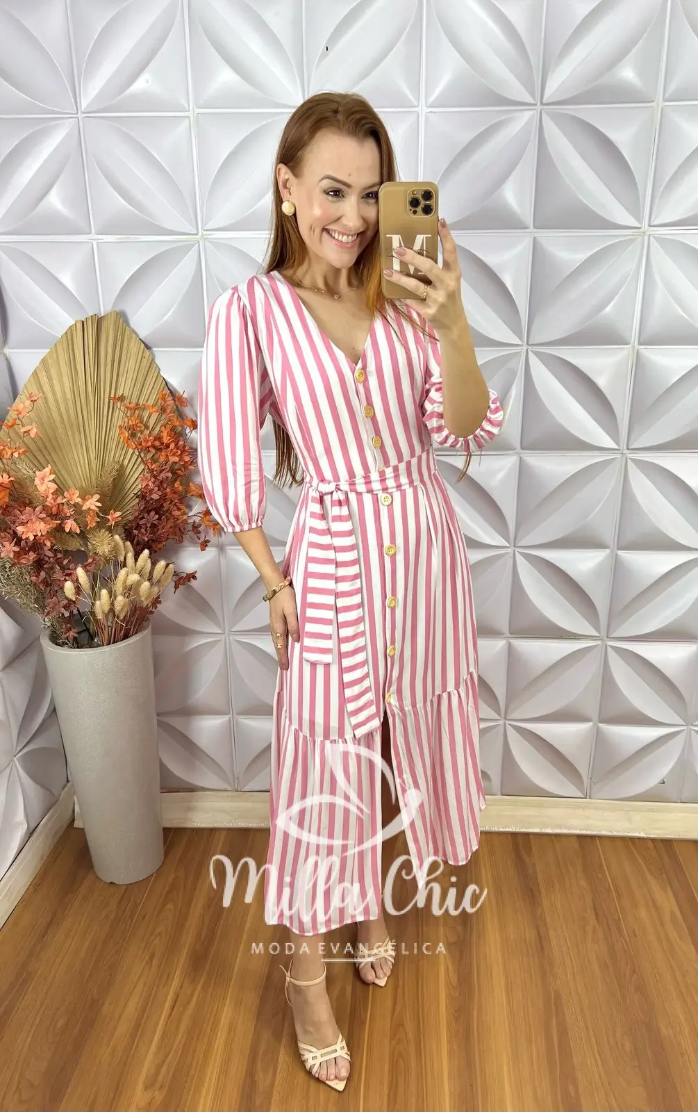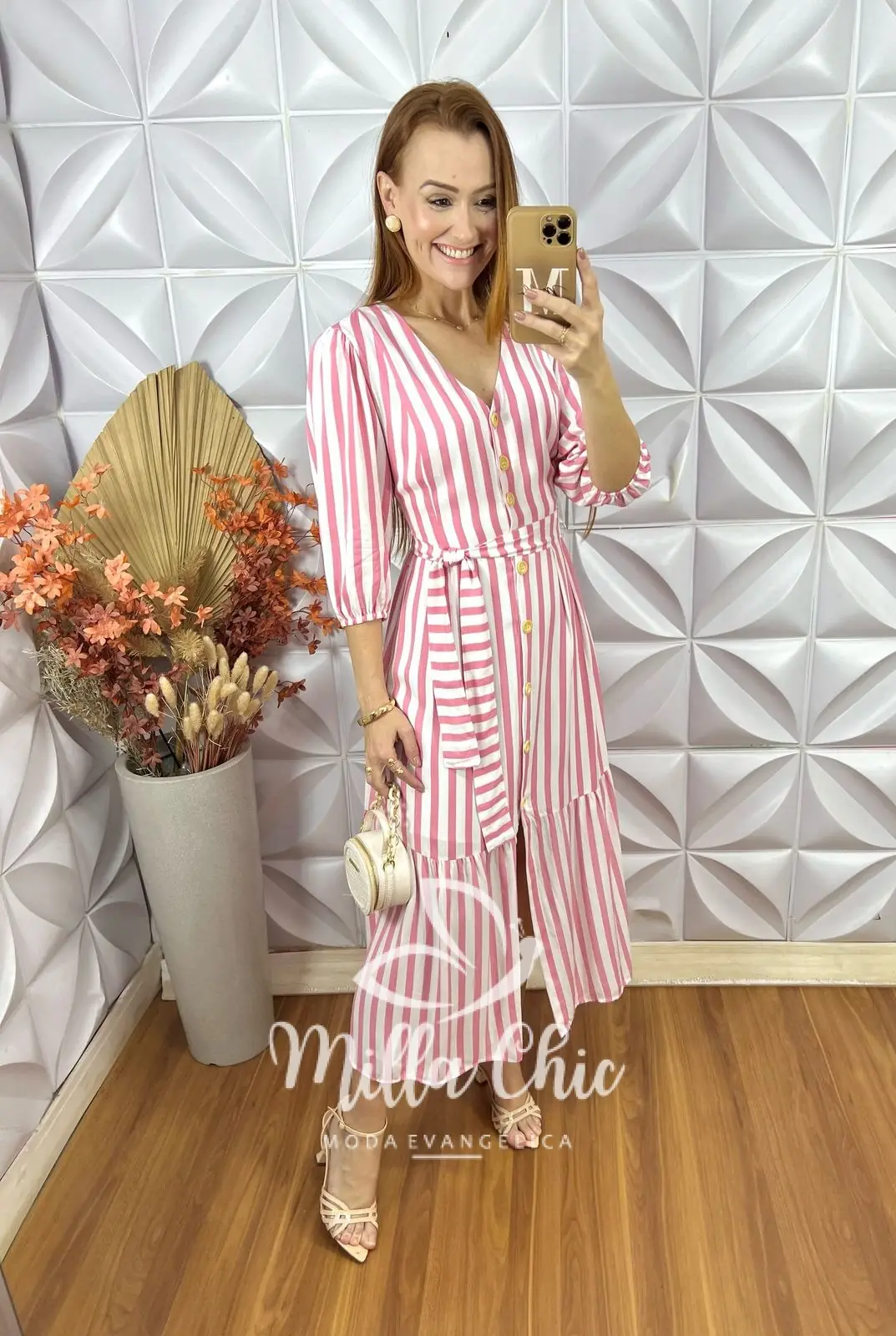 Vestido Geovana Em Viscolinho - Rosa - Milla Chic