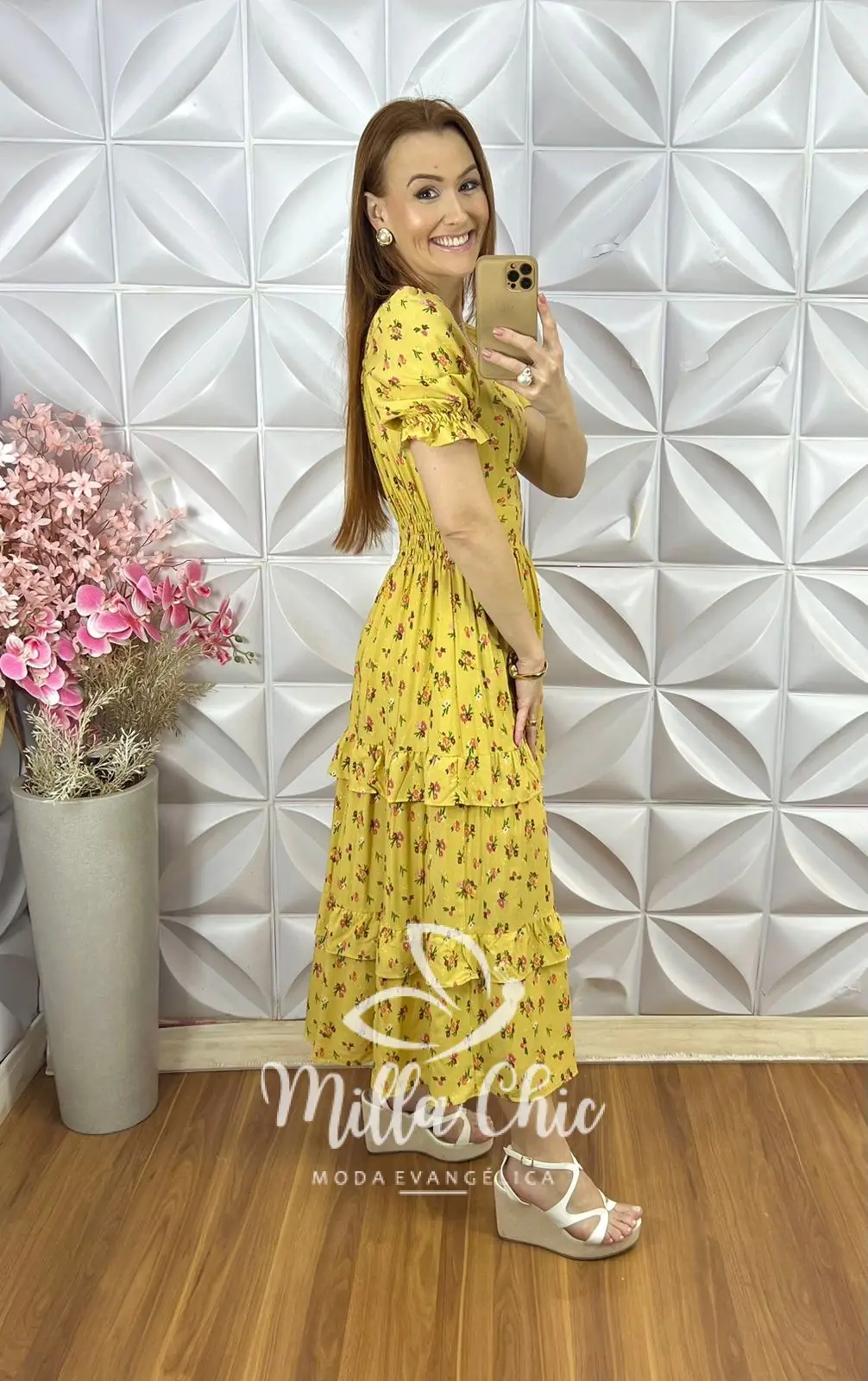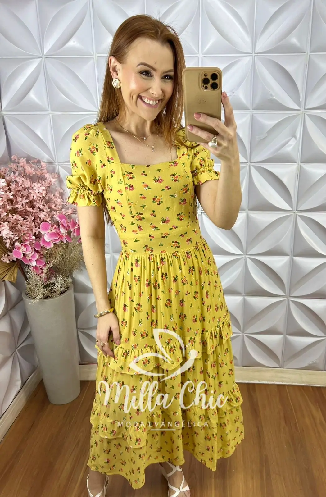 Vestido Glória em Viscolinho - Mostarda - Milla Chic