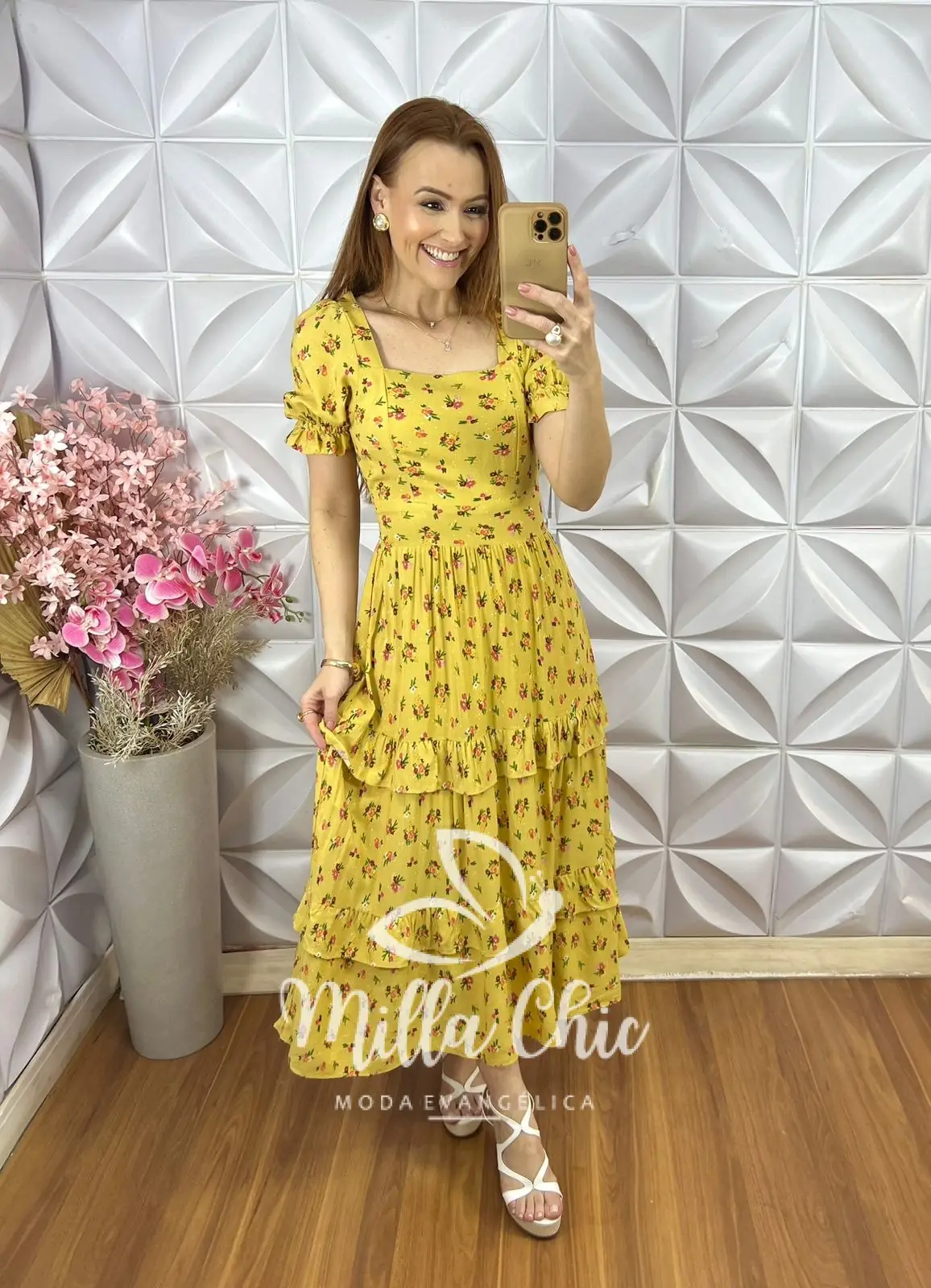 O vestido Glória quando você veste passa aquela feminilidade, delicadeza e elegância. Um clássico mas com toque contemporâneo.