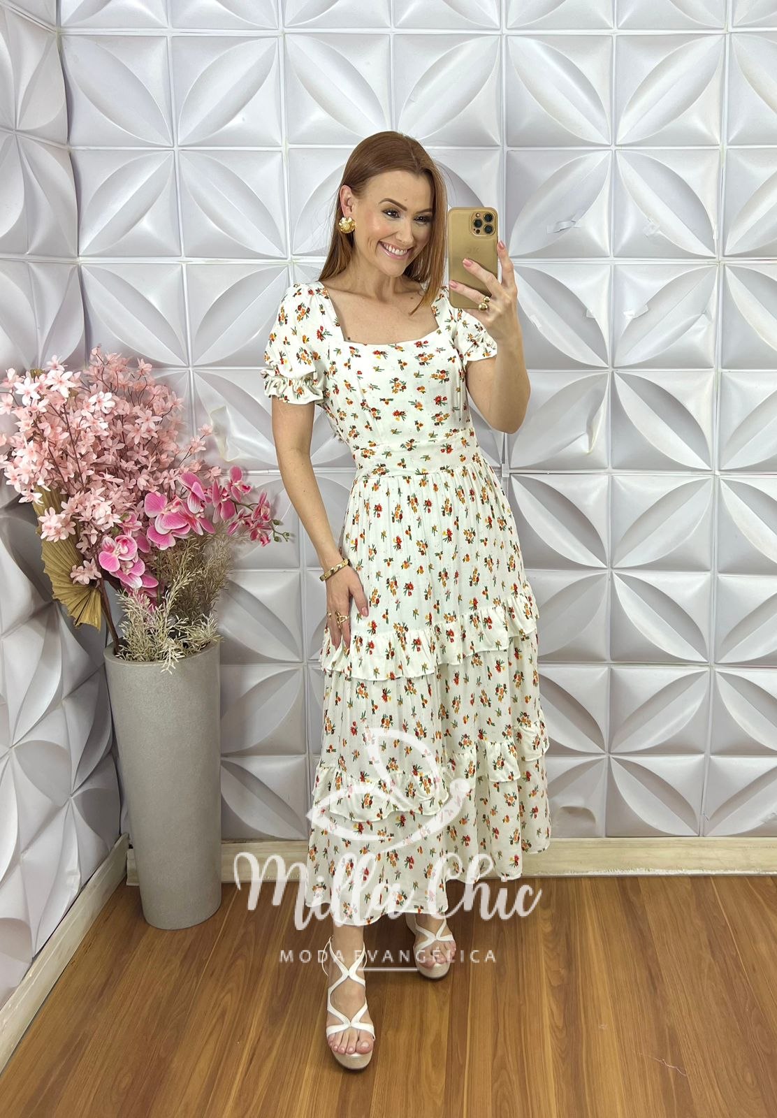 Vestido Glória em Viscolinho - Off White - Milla Chic