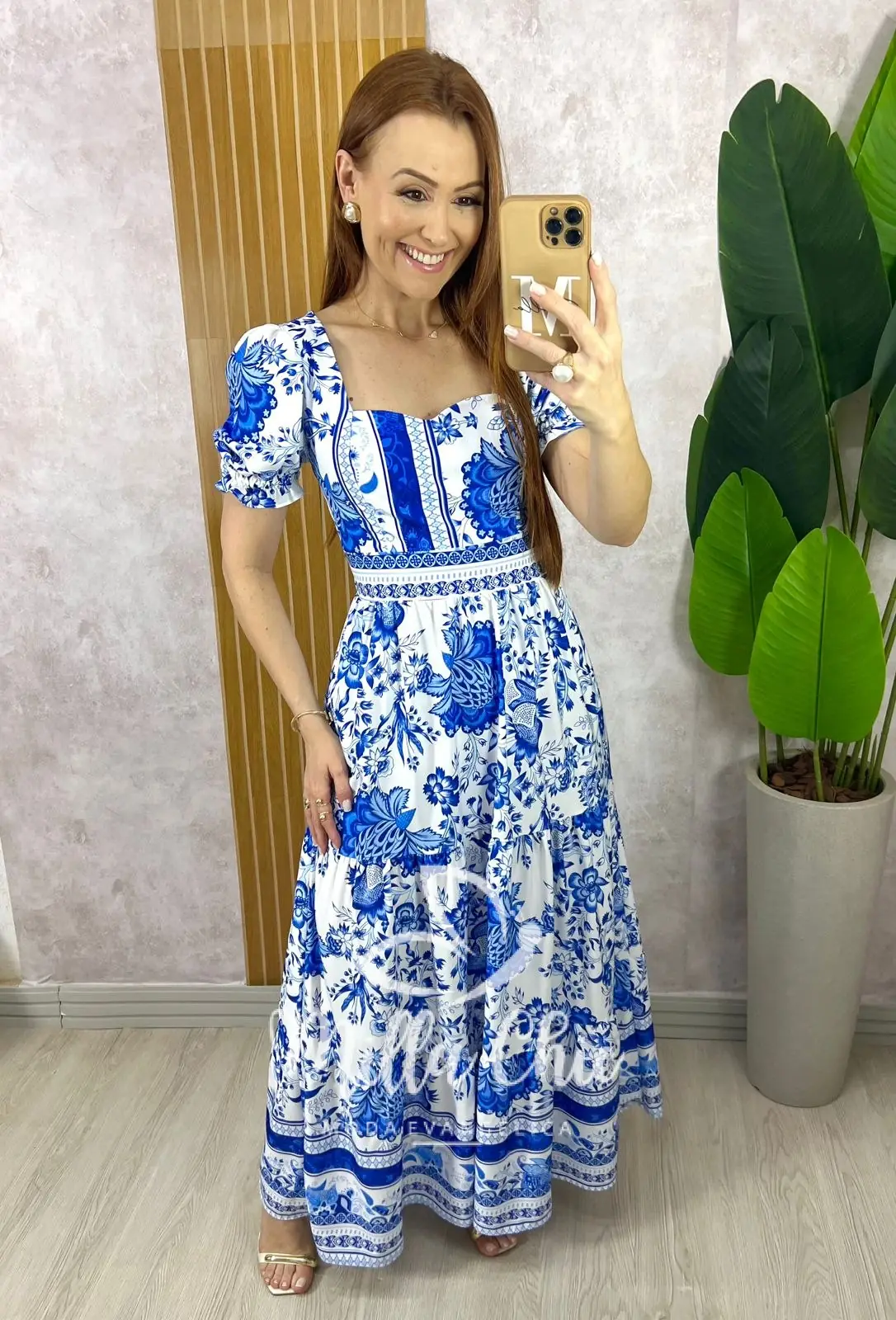 O vestido Grécia tem essa estampa linda em azulejo que transmite elegância e autenticidade. Ele apresenta um design longo e elastex em toda a costas que valoriza a silhueta feminina, proporcionando um caimento perfeito. Manga princesa e decote coração permitindo que você carregue estilo encantador.