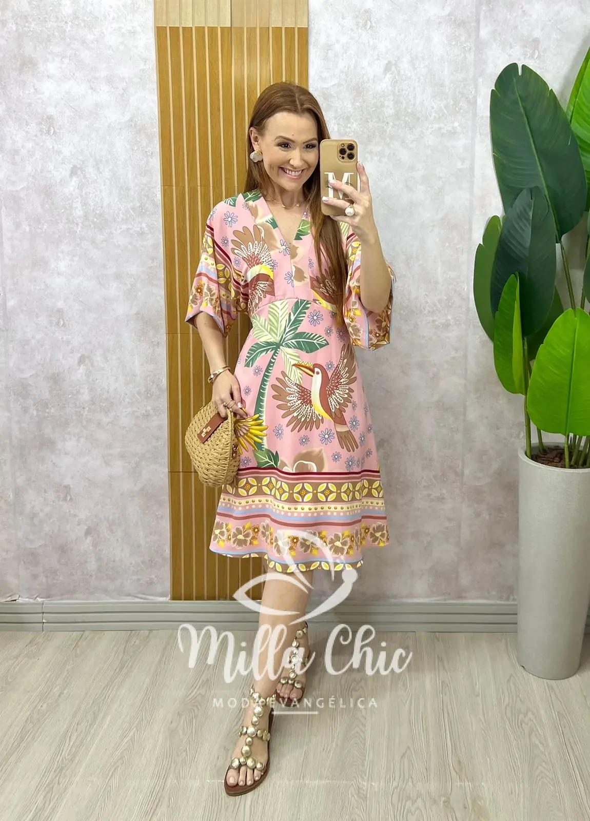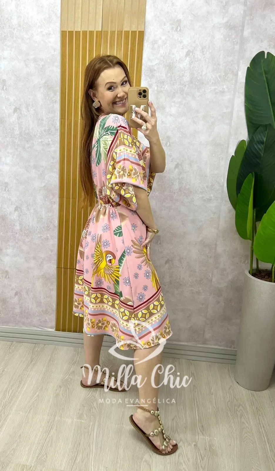 O vestido Hungria tem essa estampa linda e bem verão que transmite alegria e autenticidade. Ele apresenta um comprimento perfeito e confortável. Nas costas possui elástico nas costas bem fino que valoriza a silhueta feminina, proporcionando um caimento perfeito.