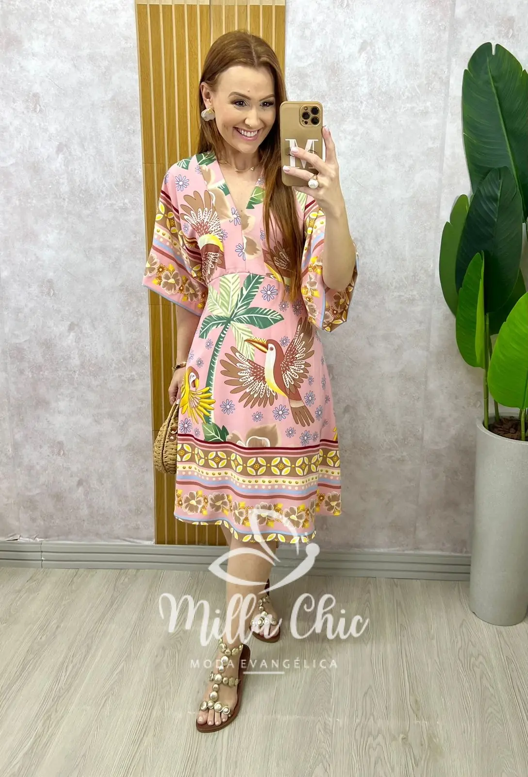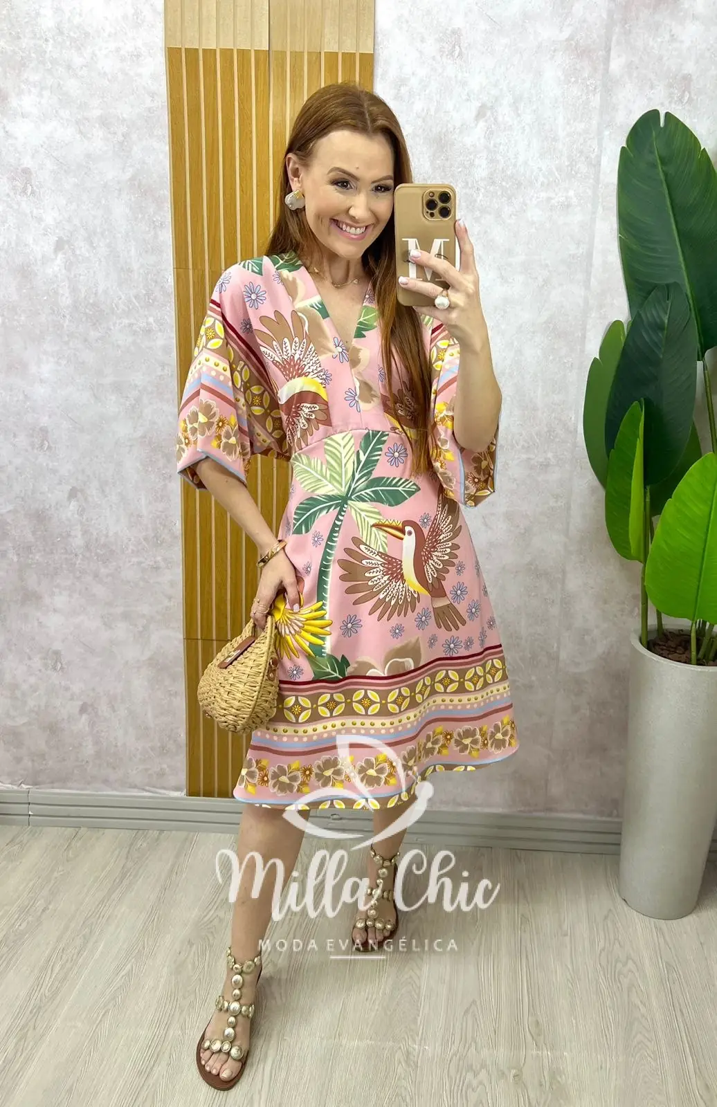 Manga kimono, sem recortes , e desce com a saia evasê sem marcar nada . Um modelo lindo e charmoso para você arrasar em momentos descontraídos.