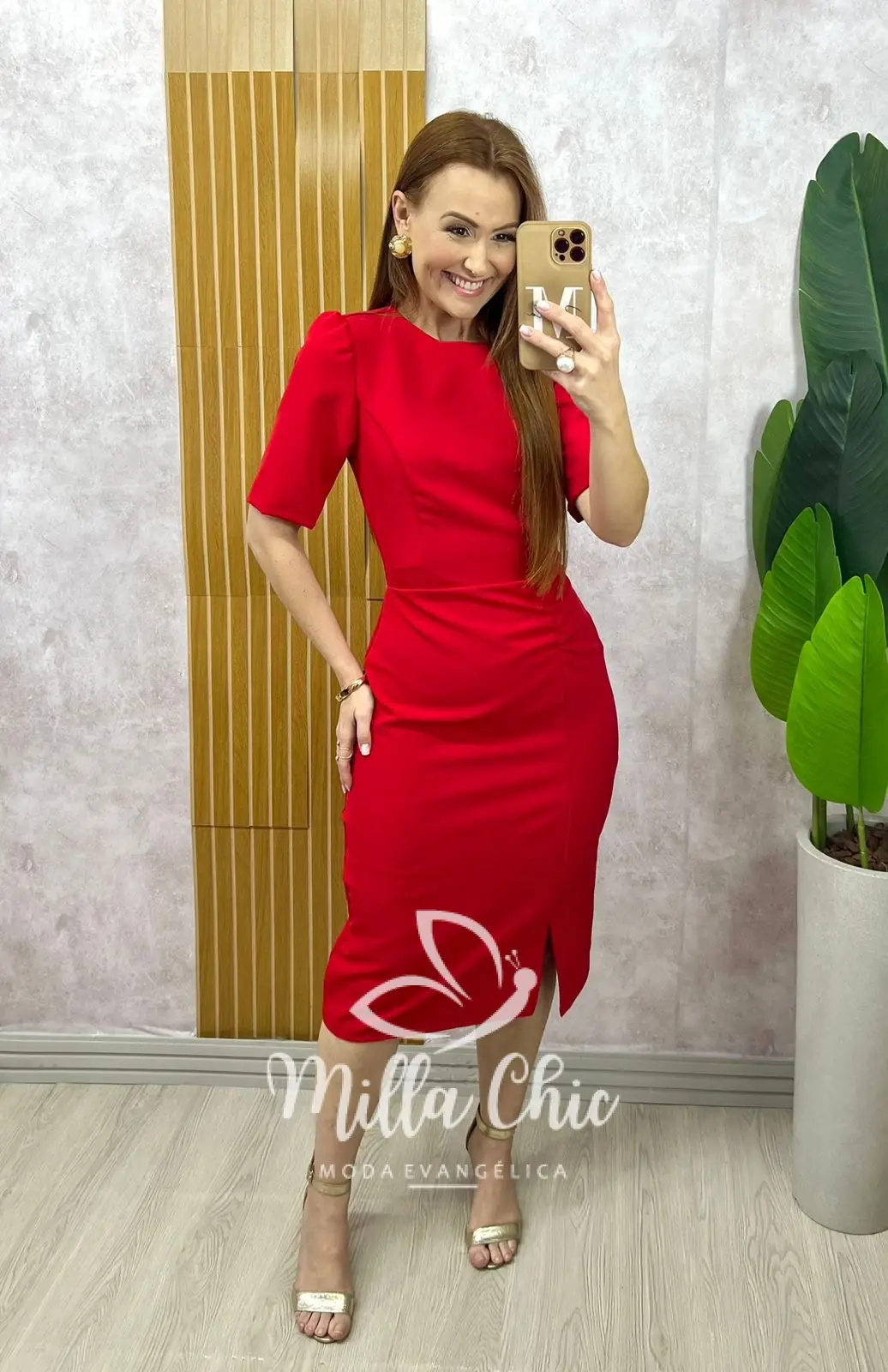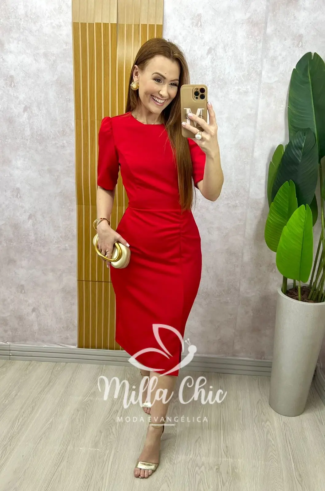 Vestido Irene em alfaiataria - Vermelho tomate - Milla Chic