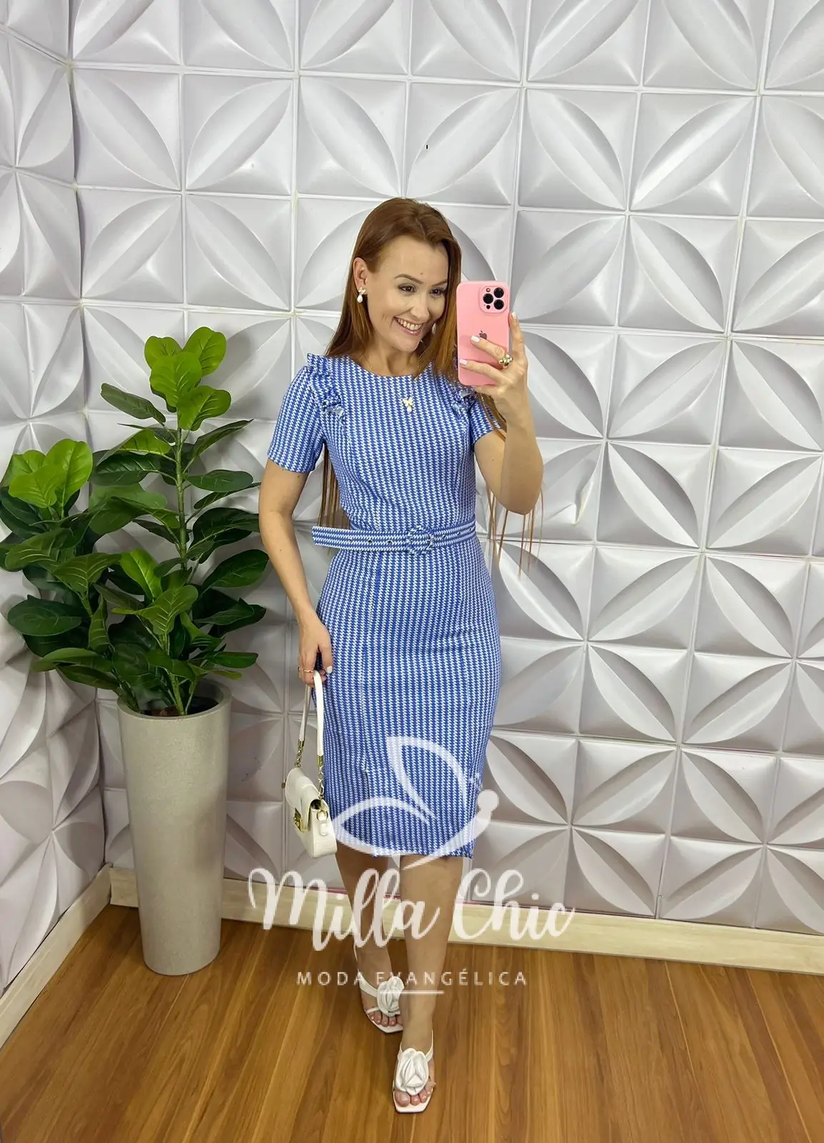 Possui: Manga , gola canoa, babadinho no ombro, cintura marcada, recorte nas laterais para dar caimento e vestir bem, Modelo tubinho, Comprimento mídi, fendas na barra. Cinto encapado fivela redonda.