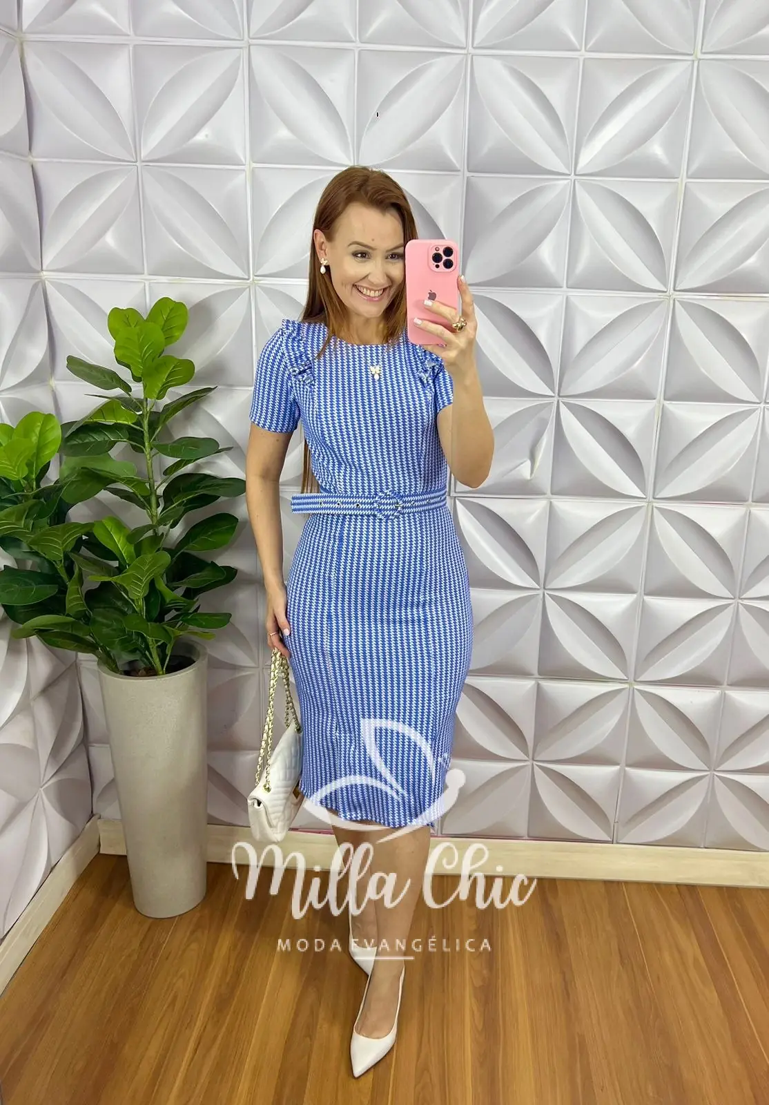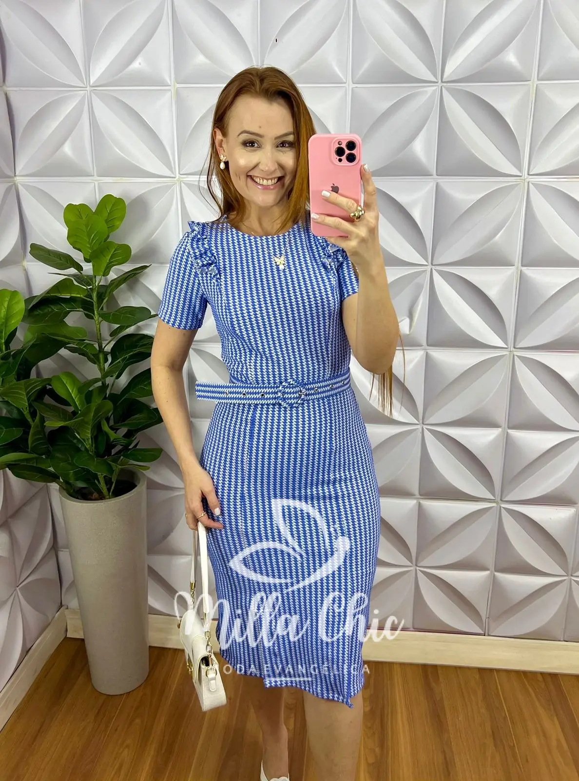 Vestido todo no Tecido Jaccar confortável e elegante! estampado de Pied de Poule que esta um charme!