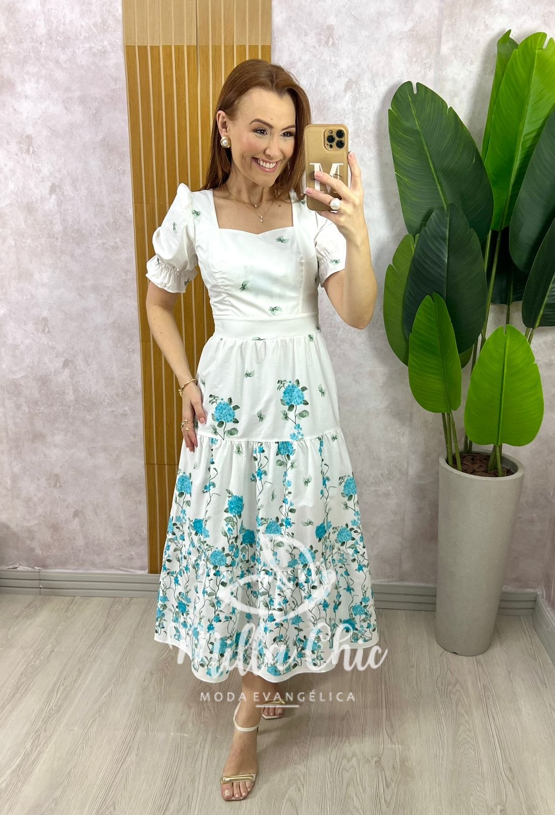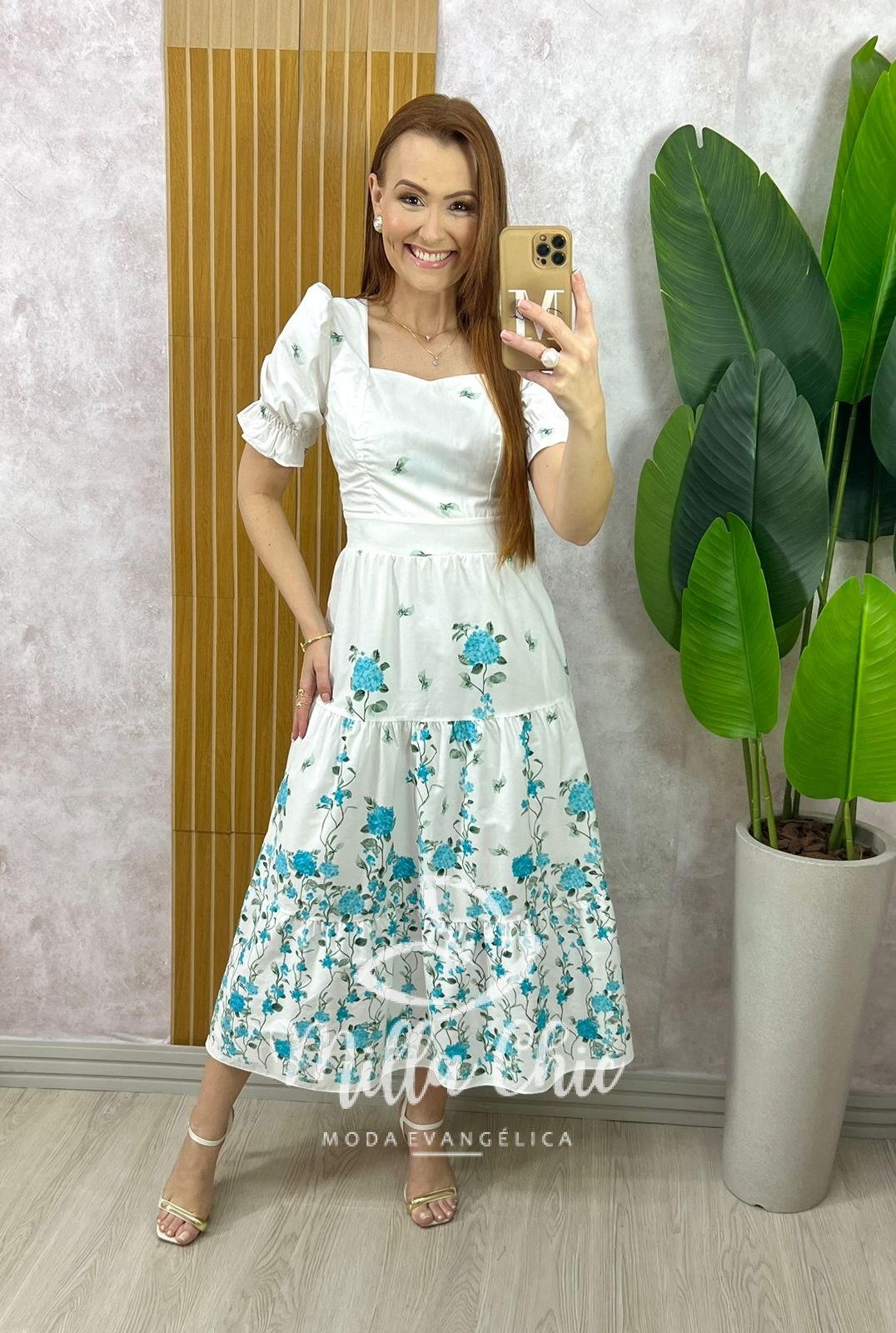 Um vestido que esbanja leveza e romantismo em cada detalhe! Perfeito para todas as ocasiões, com aquele toque que transforma um momento simples em memórias incríveis! O vestido midi Jasmine Vi é confeccionado em fibras naturais no tecido tricoline : 💯 % Algodão e {bem confortável e fresco} em uma bela estampa localizada de rosas azuis celeste e orquídea , encaixadas de forma harmoniosa, deixando a peça ainda mais sofisticada e única! O fundo branco realça a beleza das flores e traz ainda mais leveza. Uma composição pensada com todo cuidado para valorizar e torná-lo ainda mais especial! Ainda possui: forro, decote coração, corpinho estruturado, cintura marcada , saia com recortes e um caimento impecável.