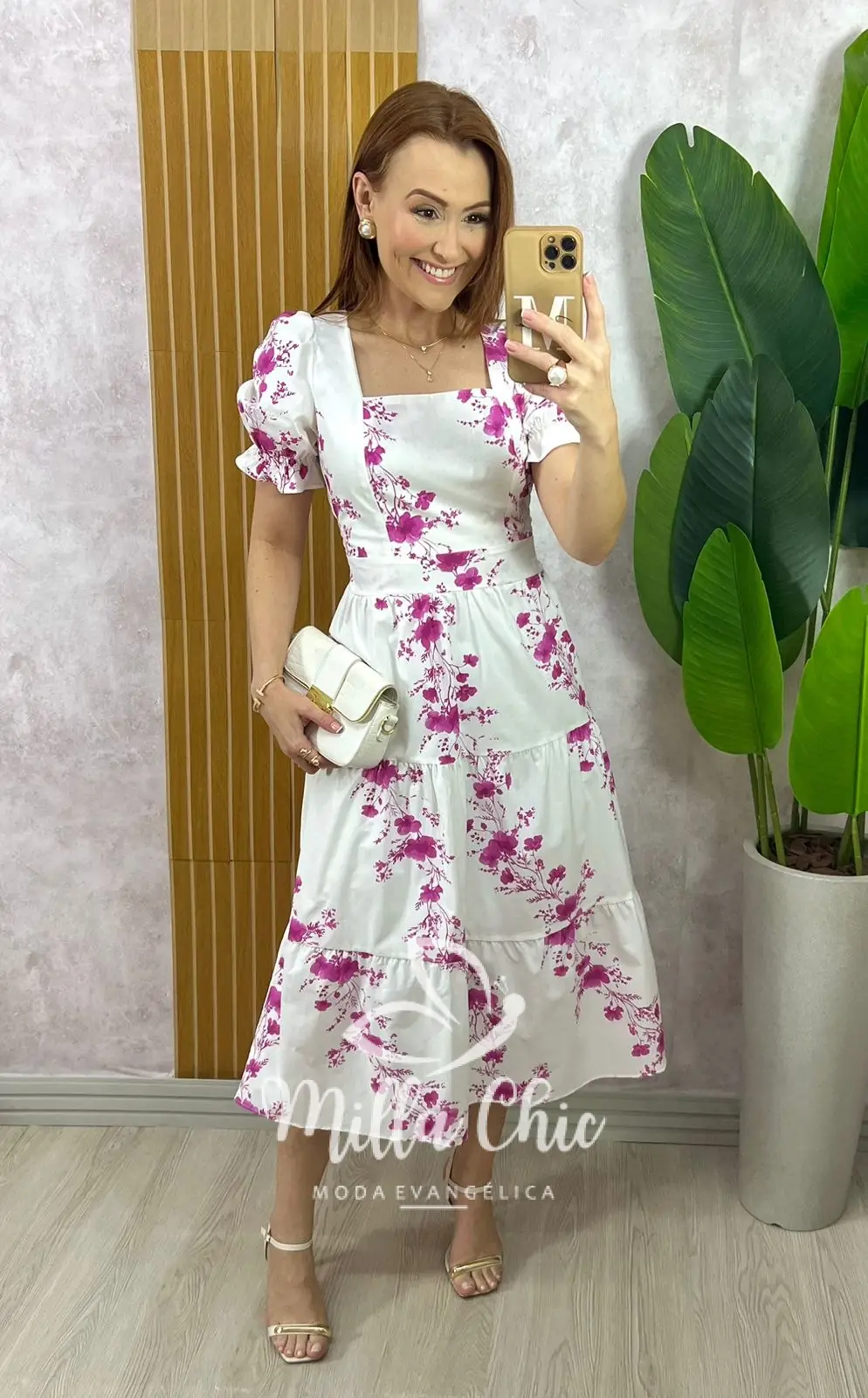 Um vestido que esbanja leveza e romantismo em cada detalhe! Perfeito para todas as ocasiões, com aquele toque que transforma um momento simples em memórias incríveis! O vestido midi Jasmine Vi é confeccionado em fibras naturais no tecido tricoline : 💯 % Algodão e {bem confortável e fresco} em uma bela estampa localizada de rosas cor orquídea, encaixadas de forma harmoniosa, deixando a peça ainda mais sofisticada e única! O fundo branco realça a beleza das flores e traz ainda mais leveza. Uma composição pensada com todo cuidado para valorizar e torná-lo ainda mais especial! Ainda possui: forro, decote reto, corpinho estruturado, cintura marcada, saia com recortes e um caimento impecável.