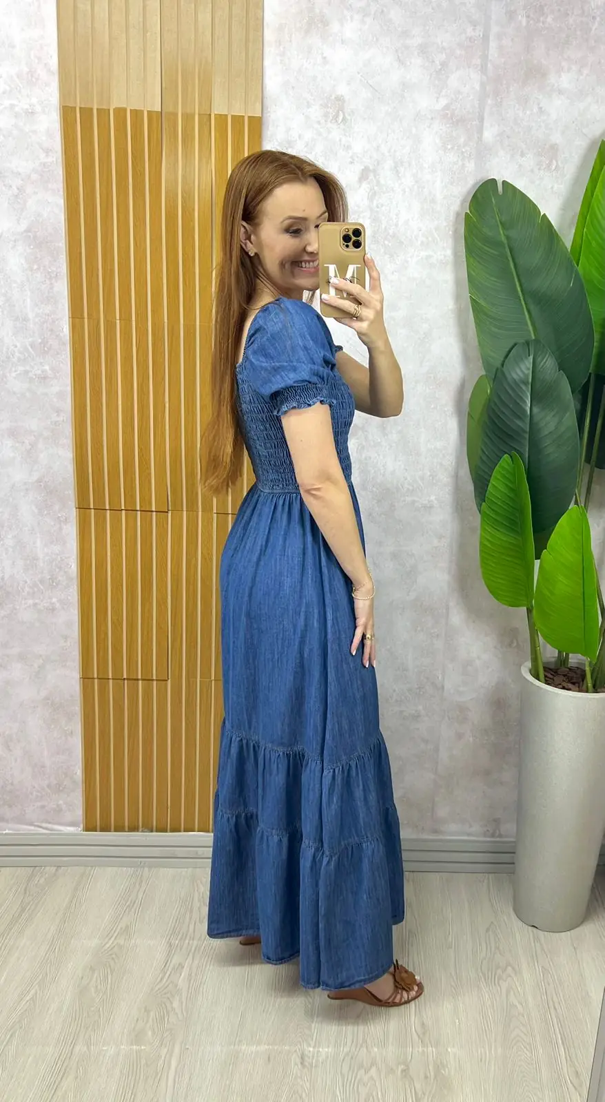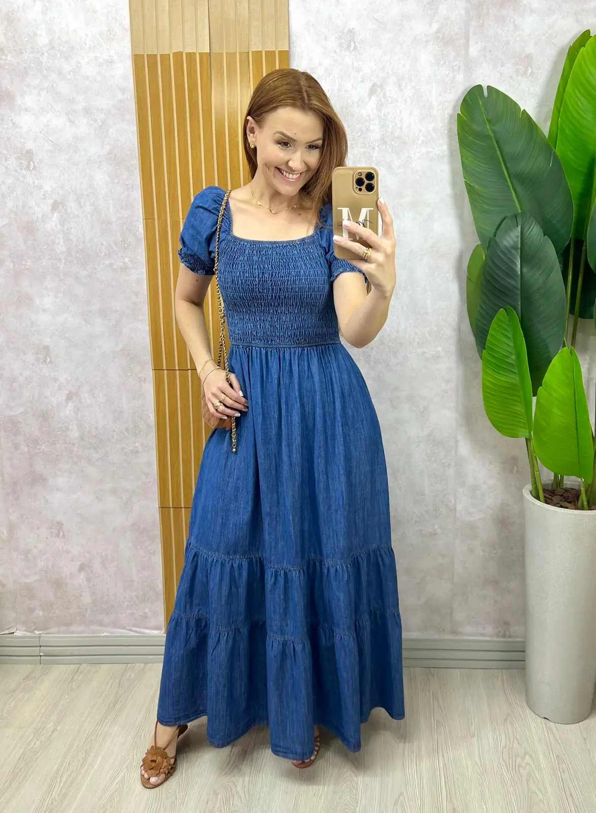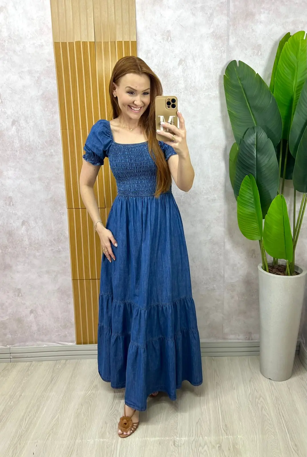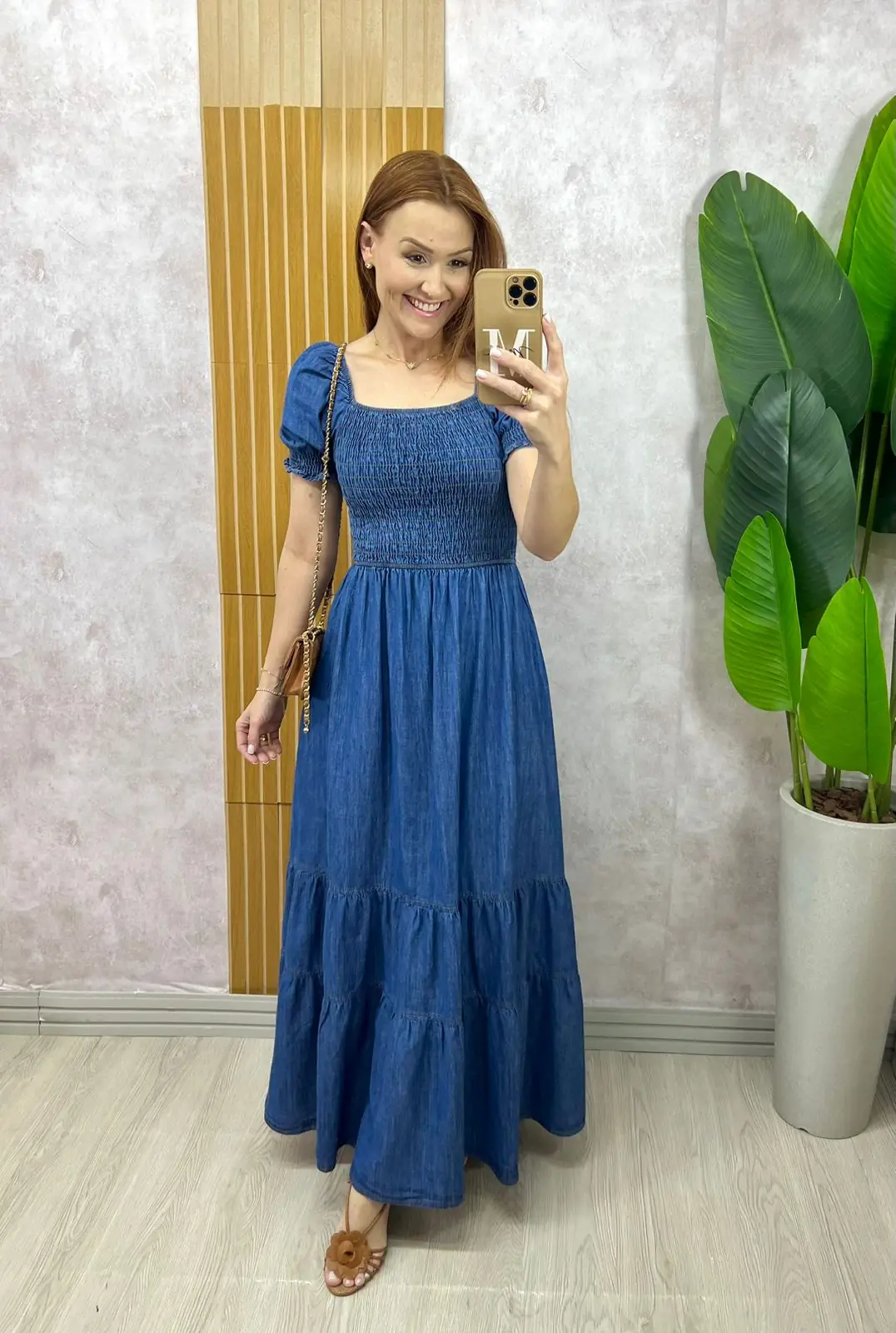 O vestido Vívian é todo confeccionado em jeans . Aquele jeans molinho com algodão . Ele é a escolha perfeita para quem busca uma peça que une estilo e conforto.