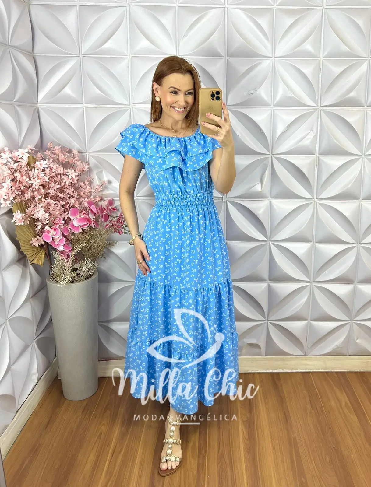O vestido Joice tem essa estampa apresenta um design longo com o elastex na parte da cintura que valoriza a silhueta feminina, proporcionando um caimento perfeito. As mangas babado passam feminilidade e deixam você maravilhosa. Ele une praticidade e charme, permitindo que você carregue estilo encantador.