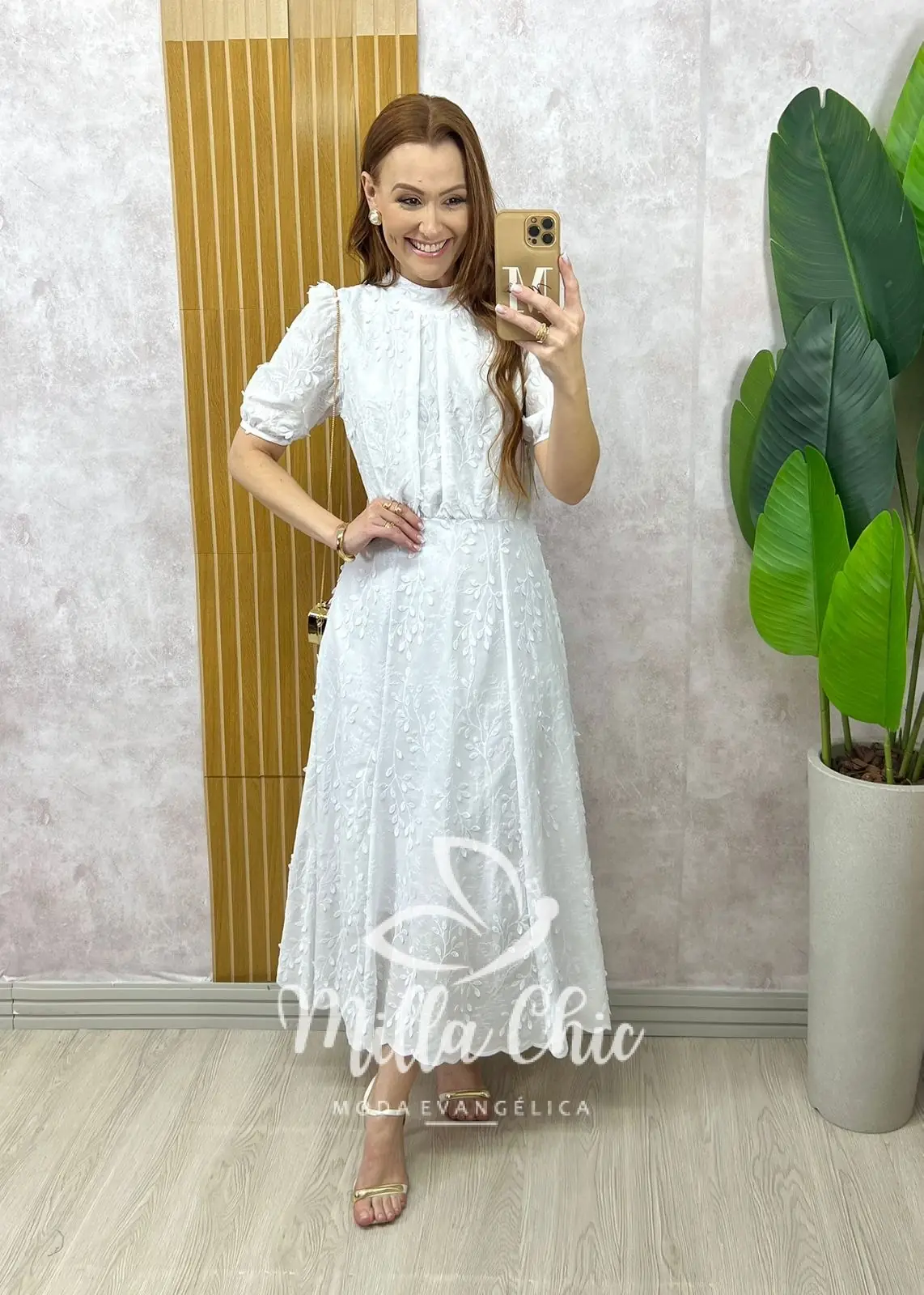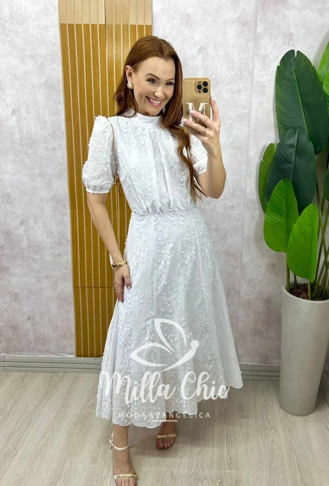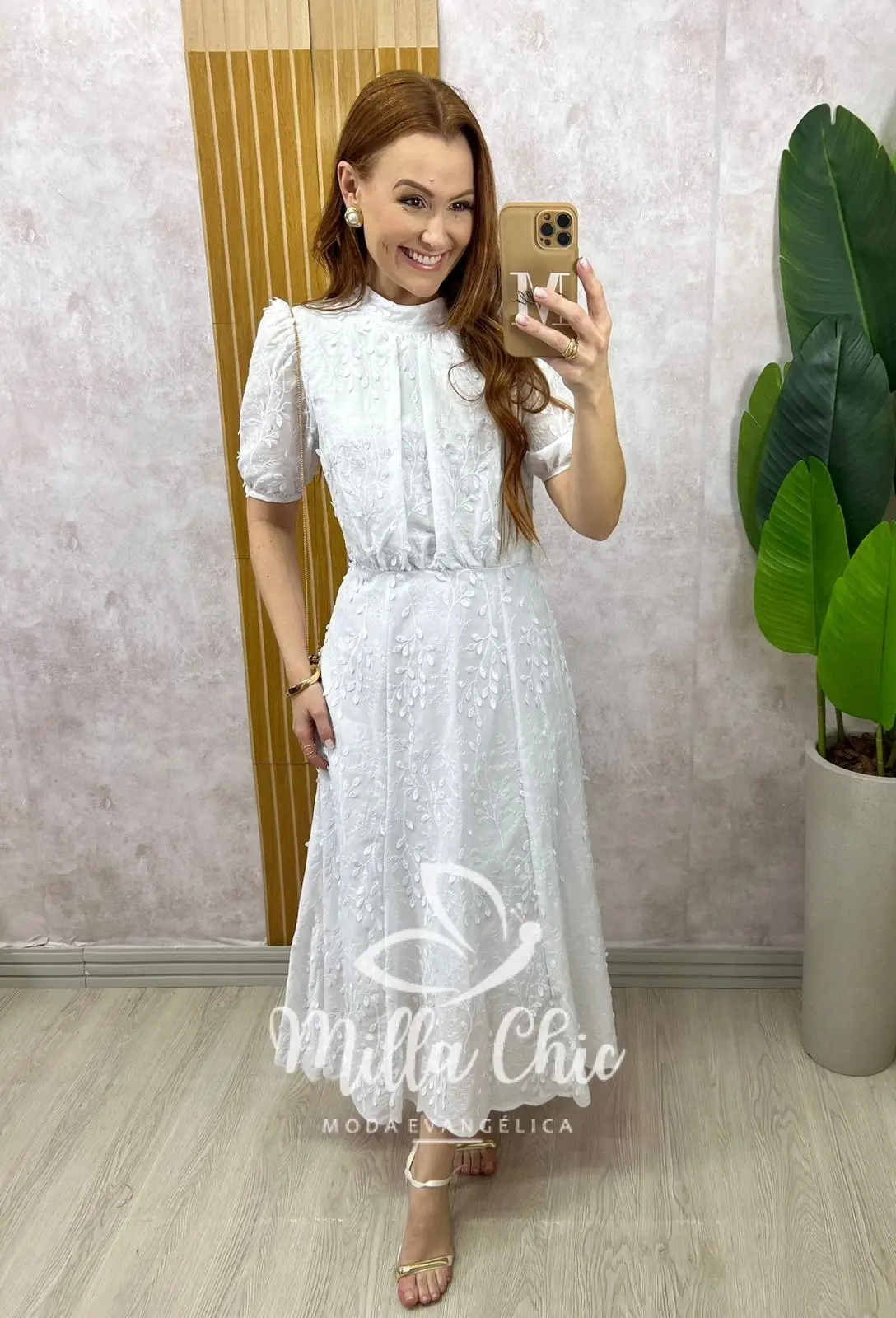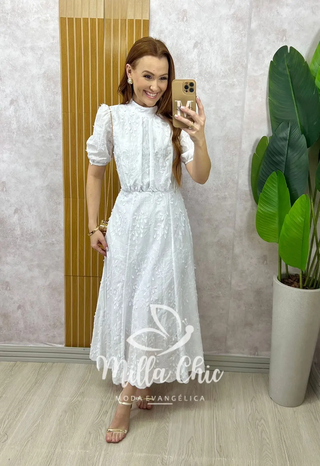 Vestido Joyce  em Lesie algodão Branco - Milla Chic