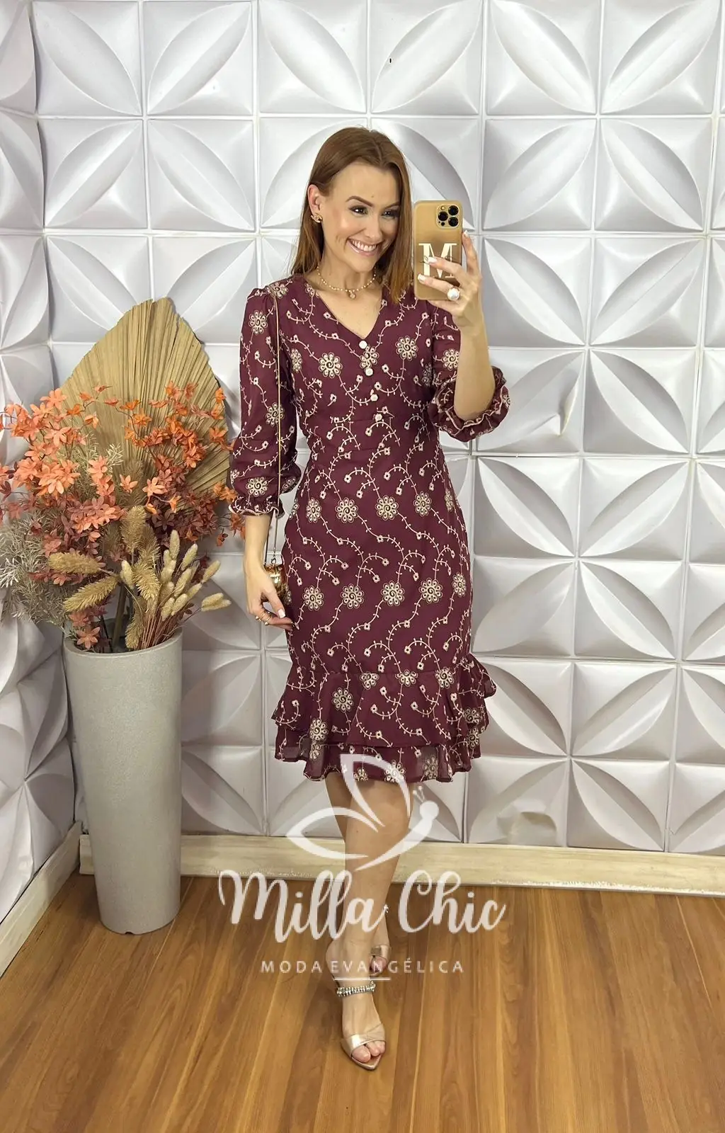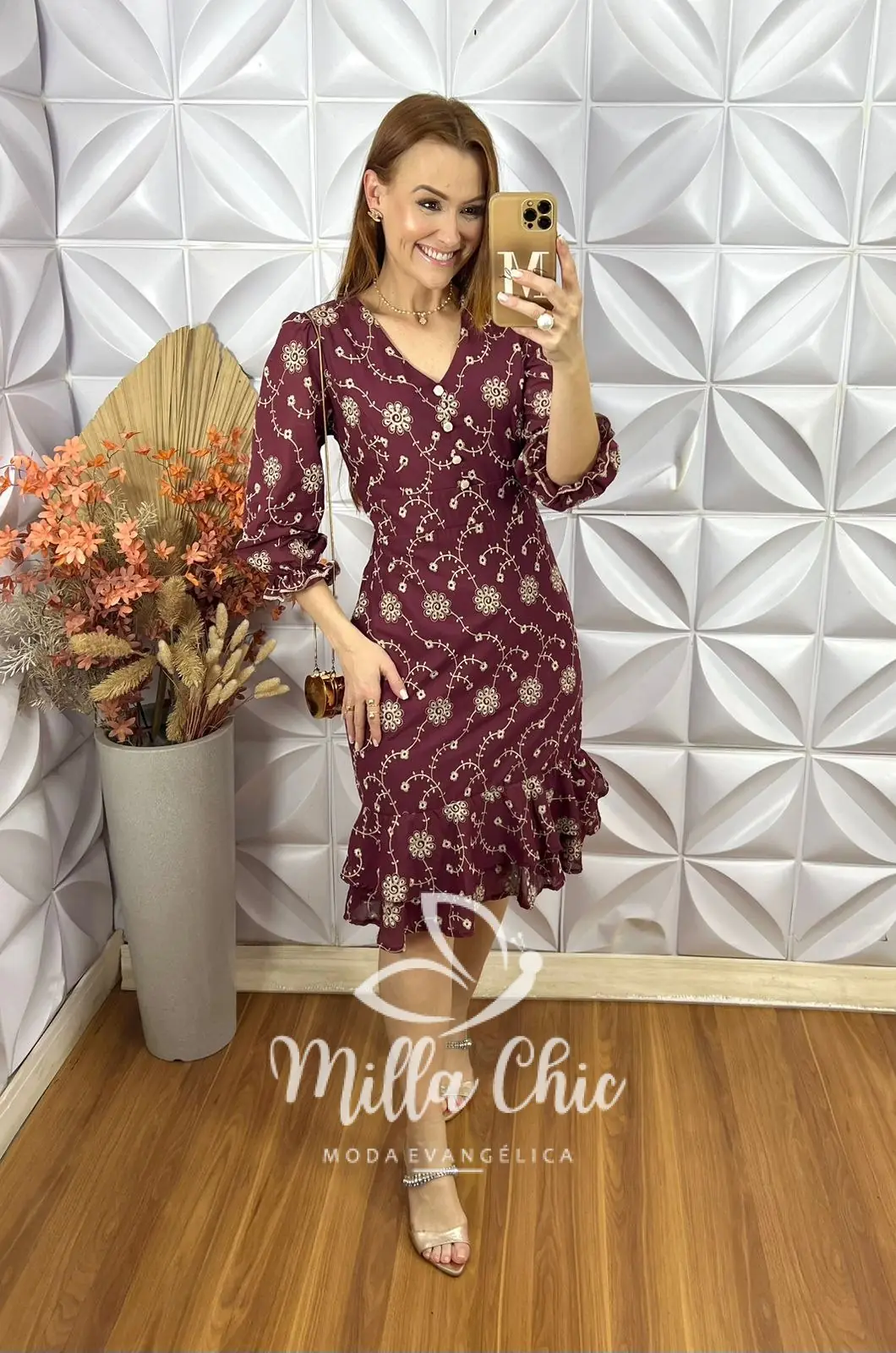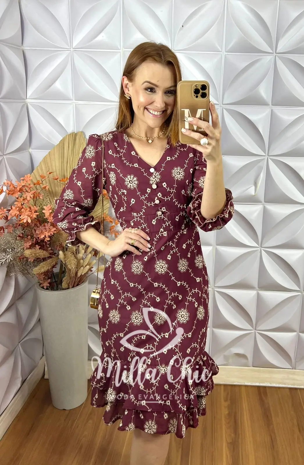 Vestido Laís Em Lesie Algodão - Marsala - Milla Chic