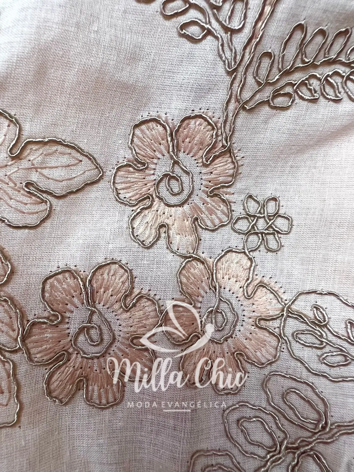 Vestido Laíse 100% Algodão Bordado Em Alto Relevo Helena - Areia - Milla Chic