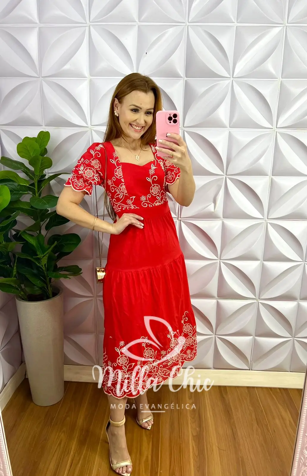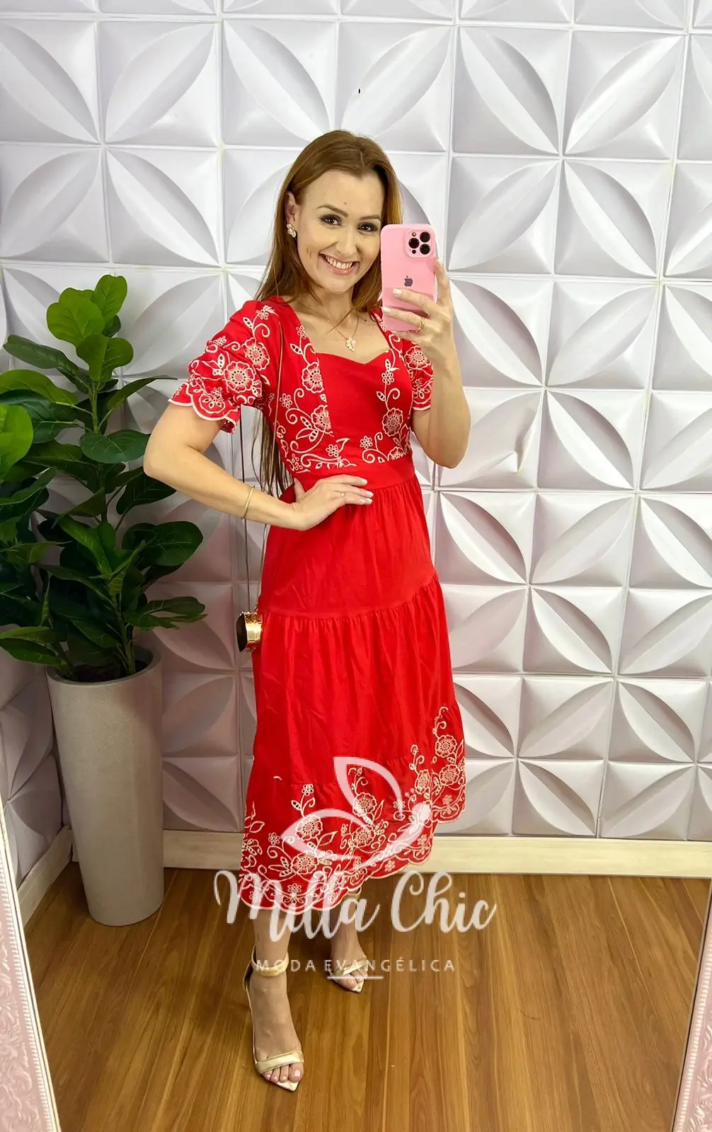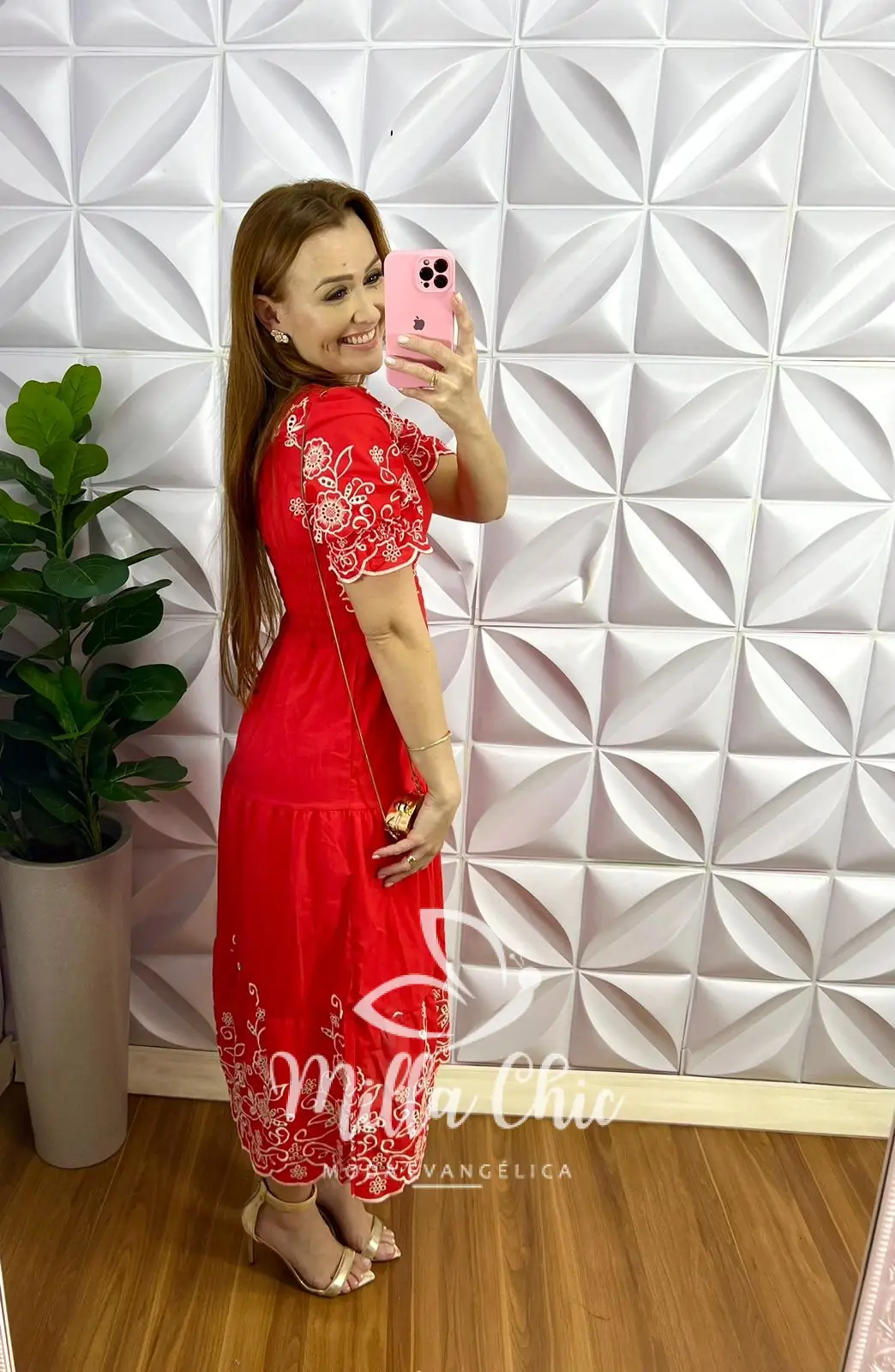 Vestido Laíse 100% Algodão Bordado Helena - Vermelho - Milla Chic