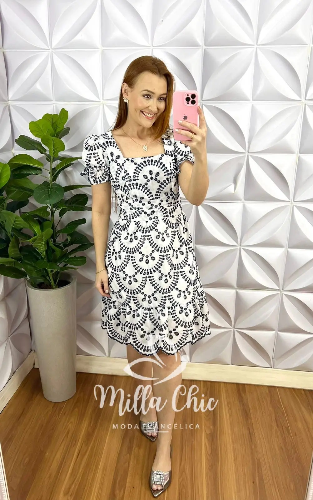 Vestido Laise Bordado Ate O Joelho Aurora - Branco - Milla Chic