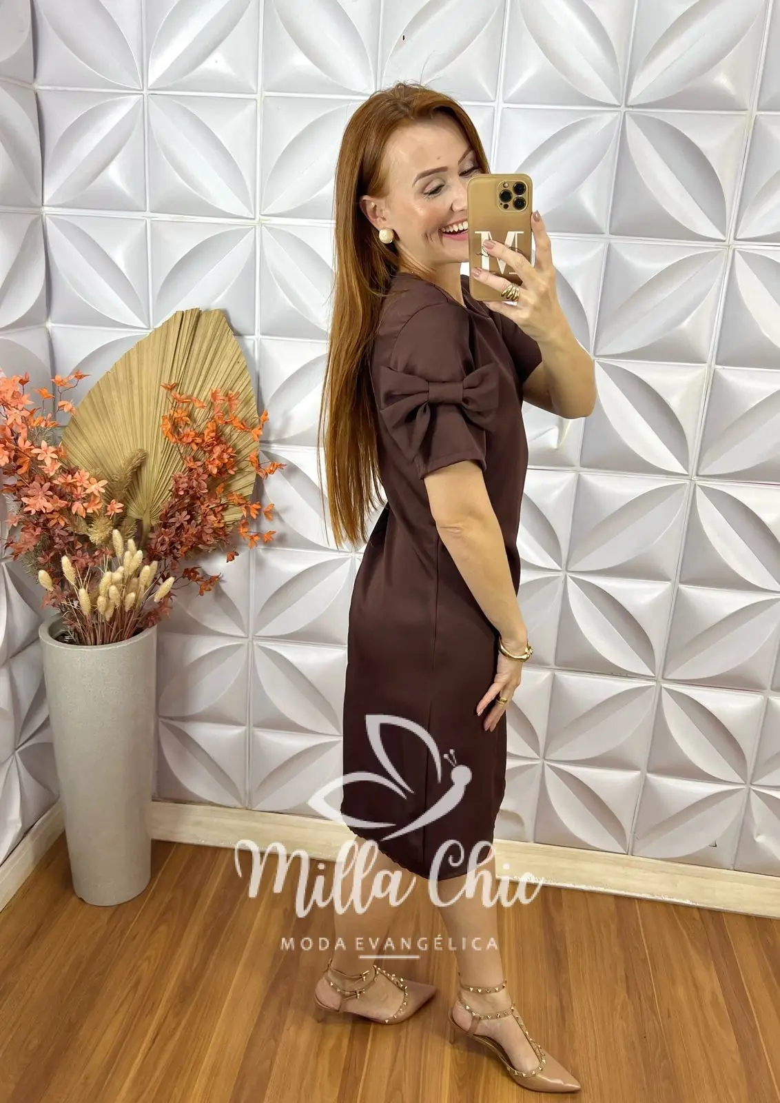 A modelagem é justa no busto e desce com o volume evase ideal . Nas mangas possui os laços costurados na manga que traz toda uma sofisticaçã e feminilidade.
