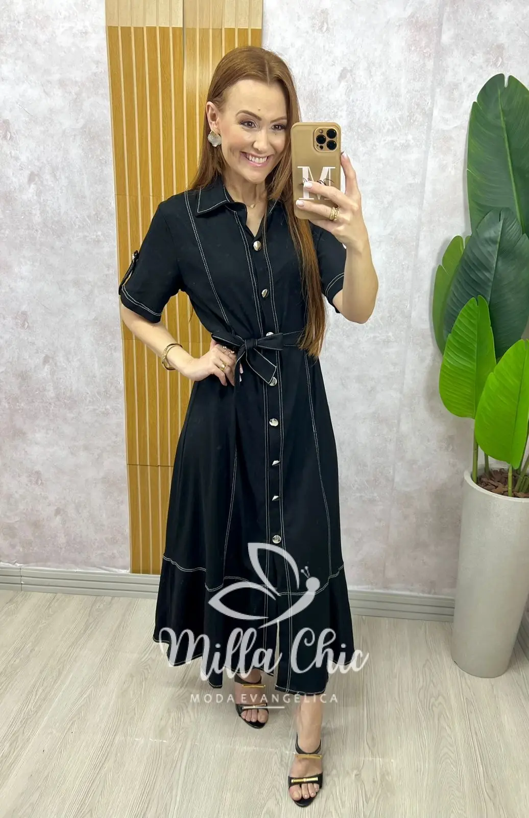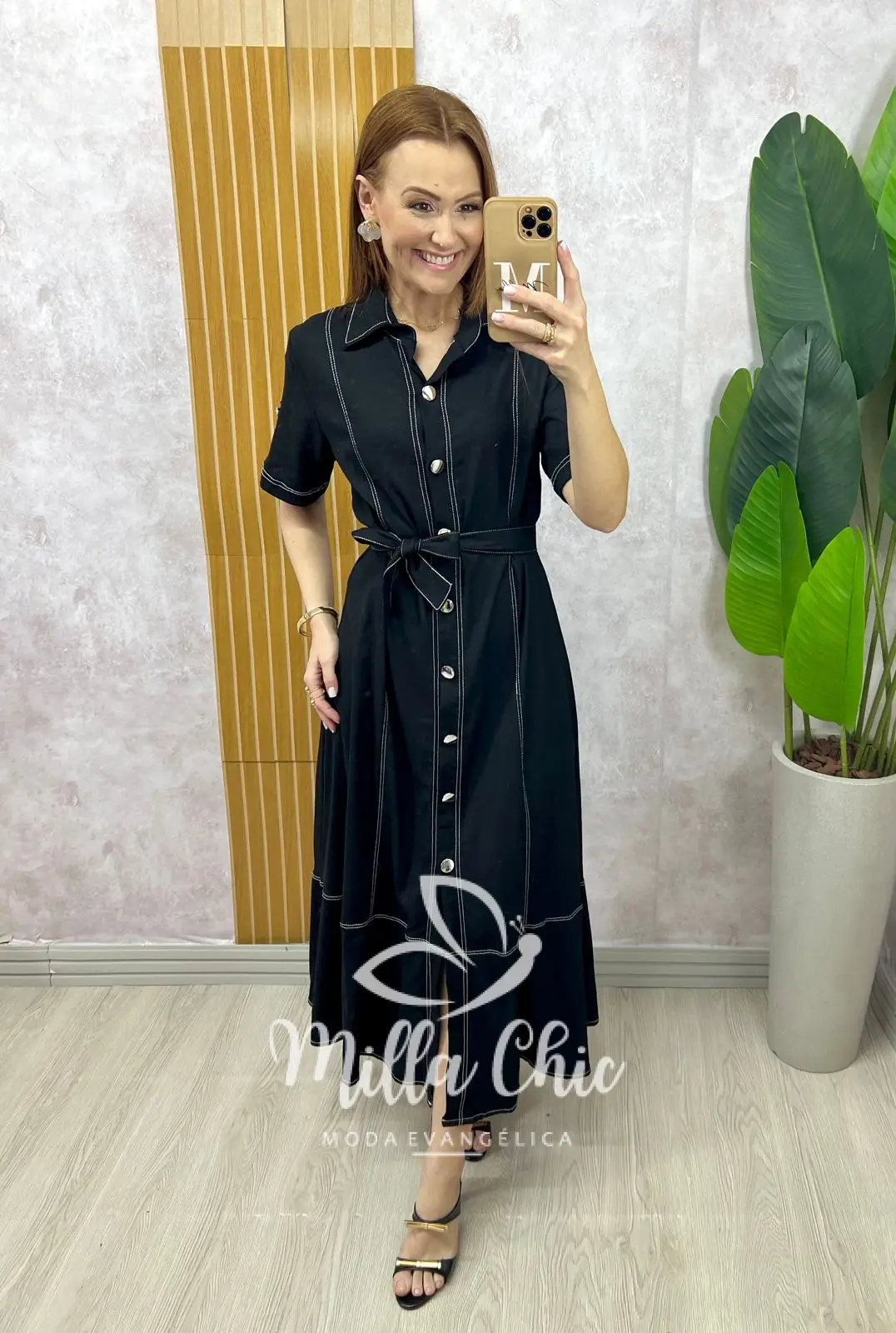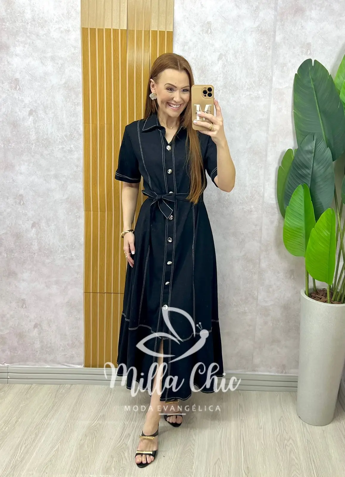 Vestido Lavínia em Linho - Preto - Milla Chic