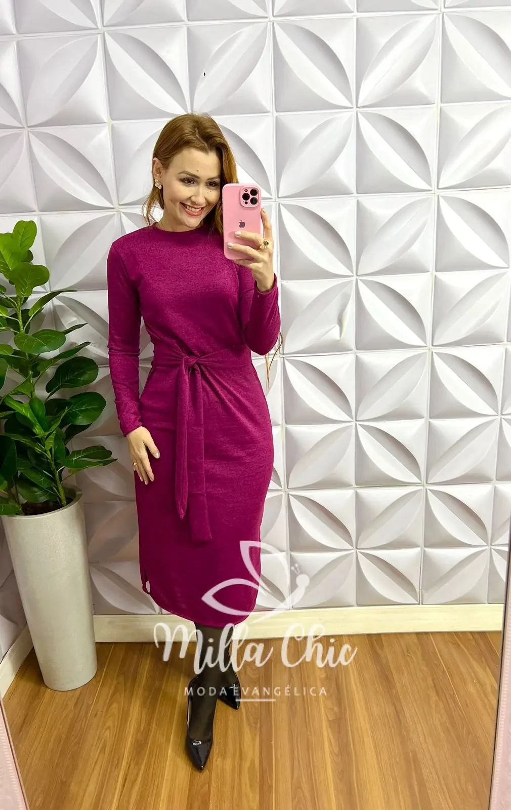 Vestido Lãzinha Midi Com Fendas Laterais Elaine - Fúcsia - Milla Chic