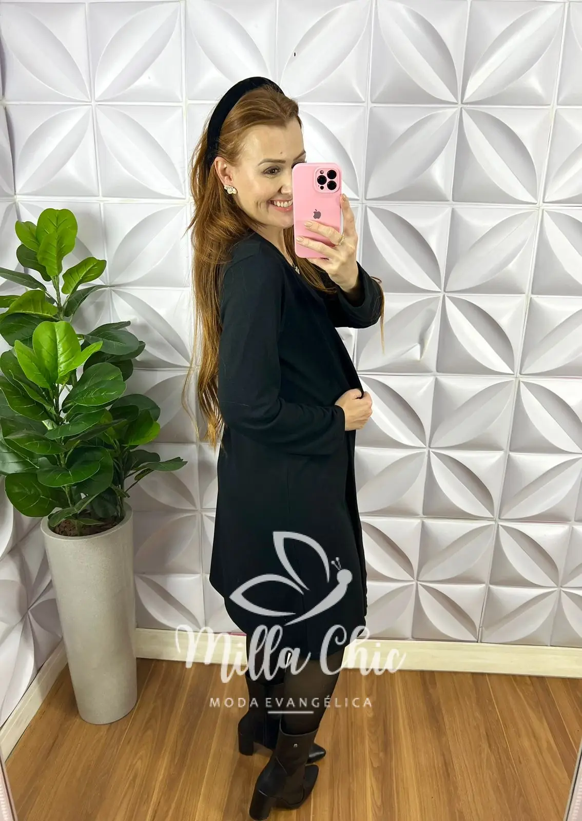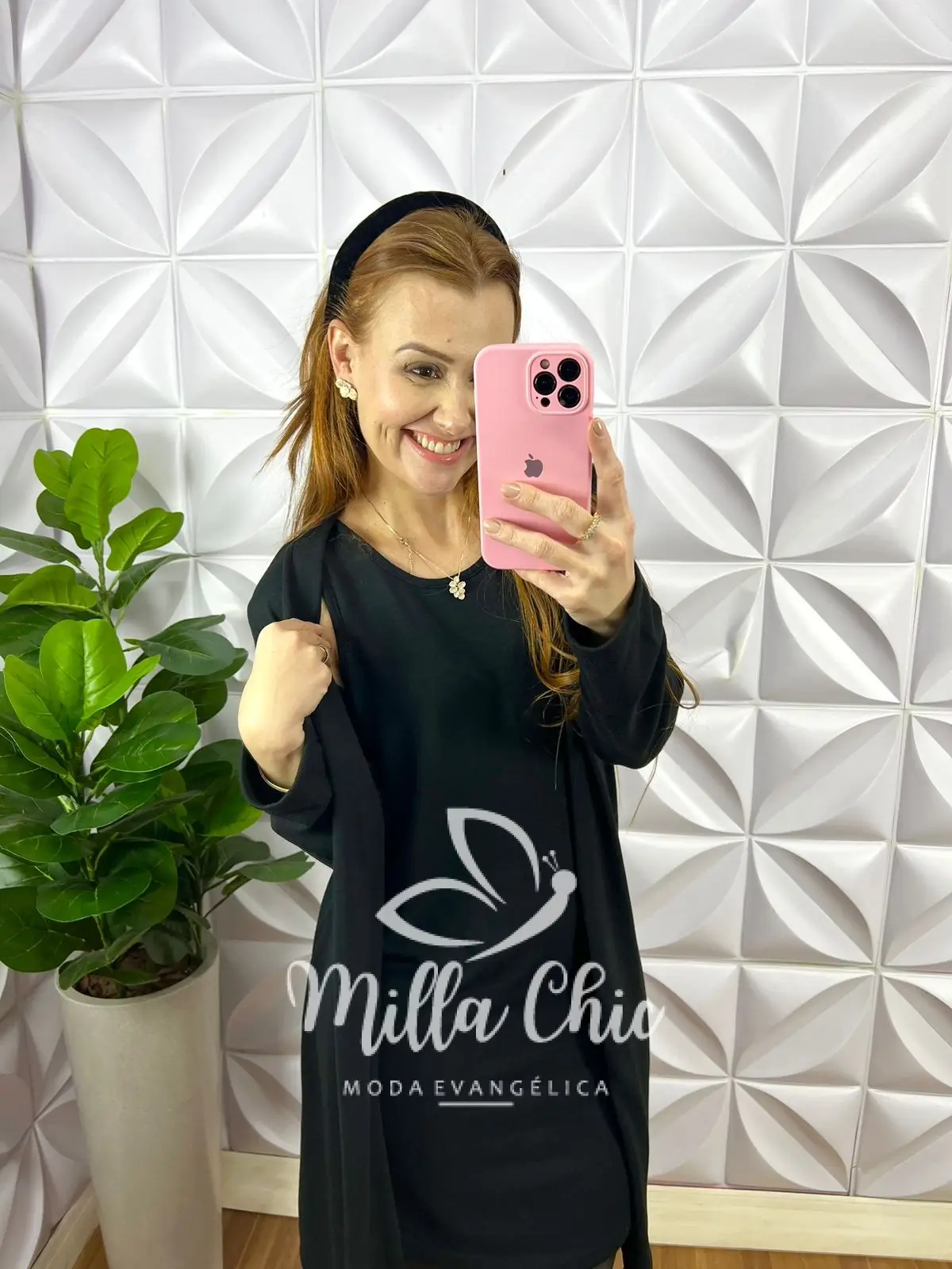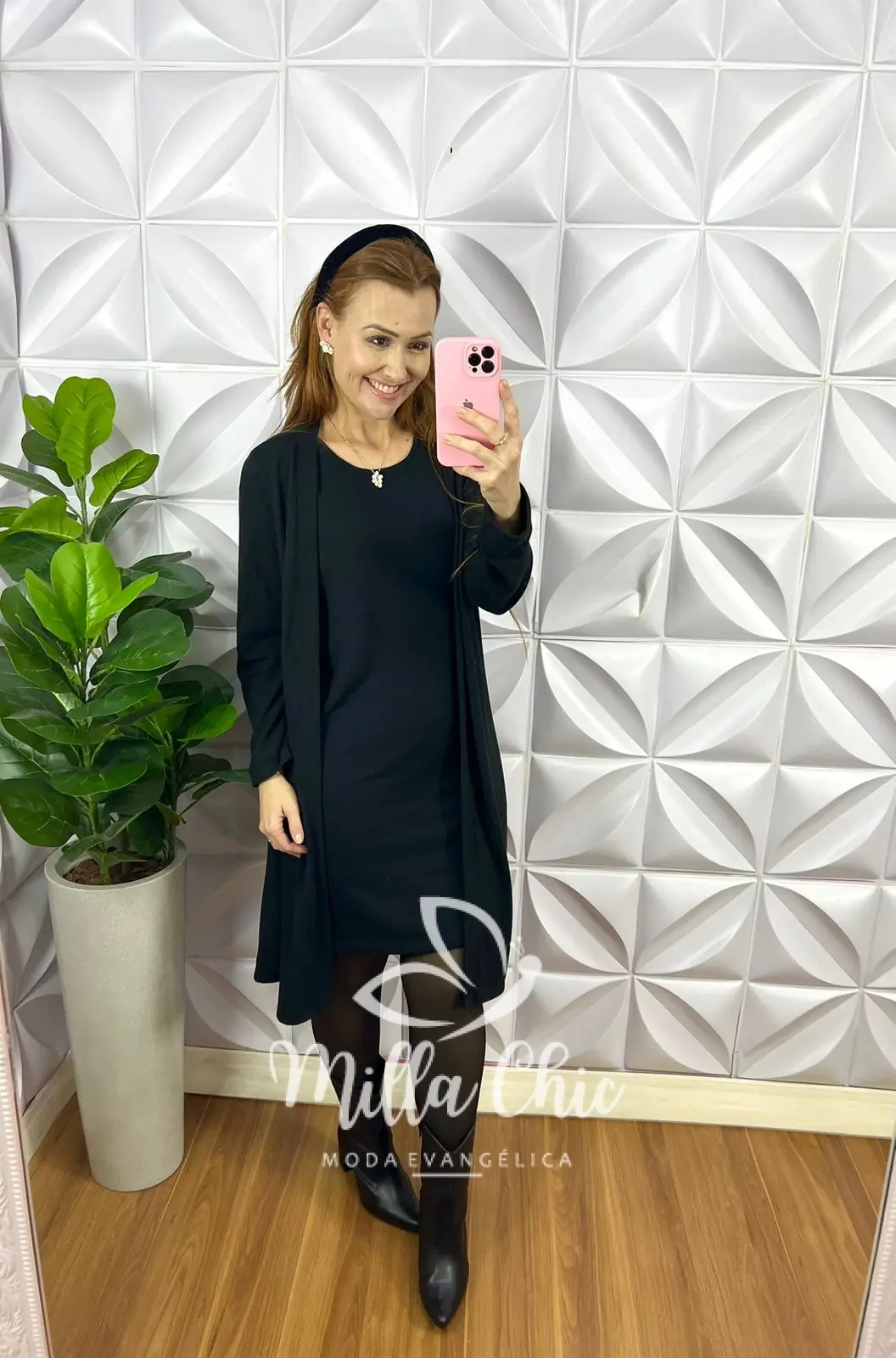 Vestido Lãzinha Tubinho Com Cardigã Greta - Preto - Milla Chic