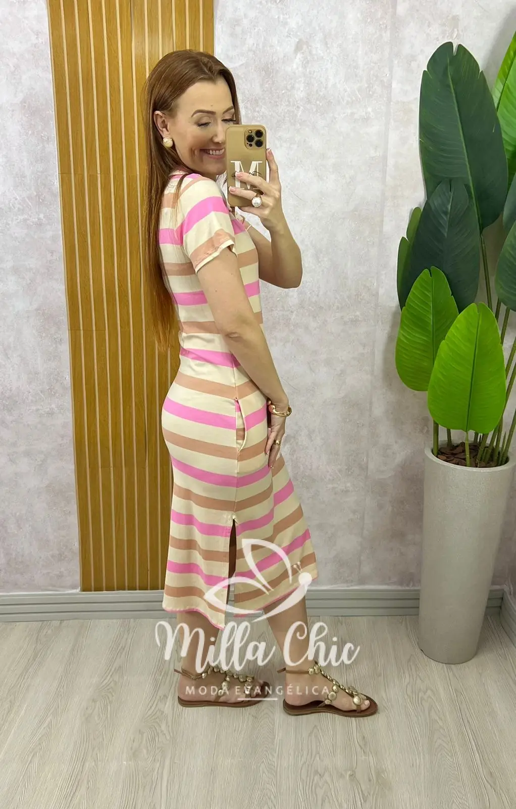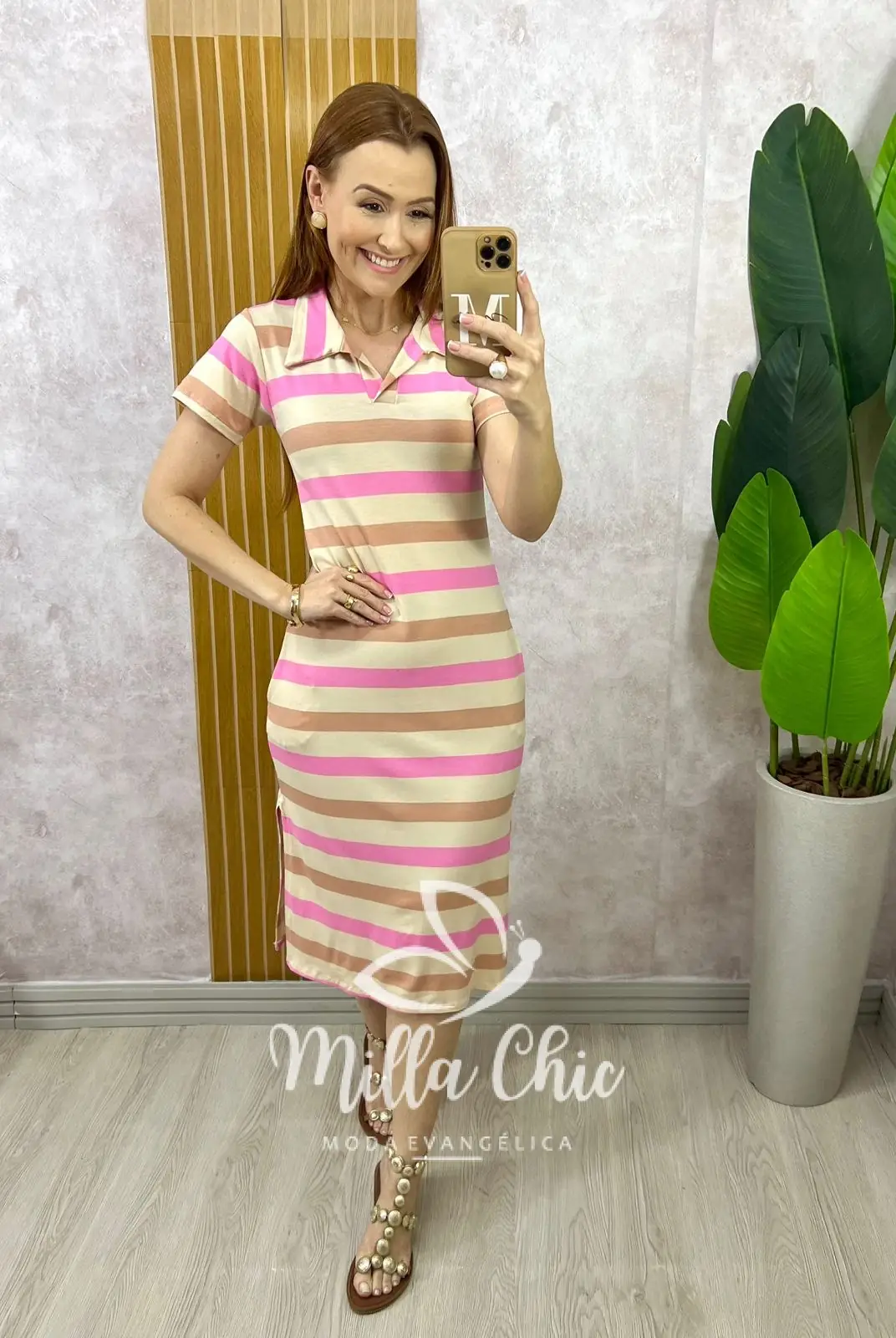 Vestido Leila Em Viscolycra - Colorful Rosa - Milla Chic
