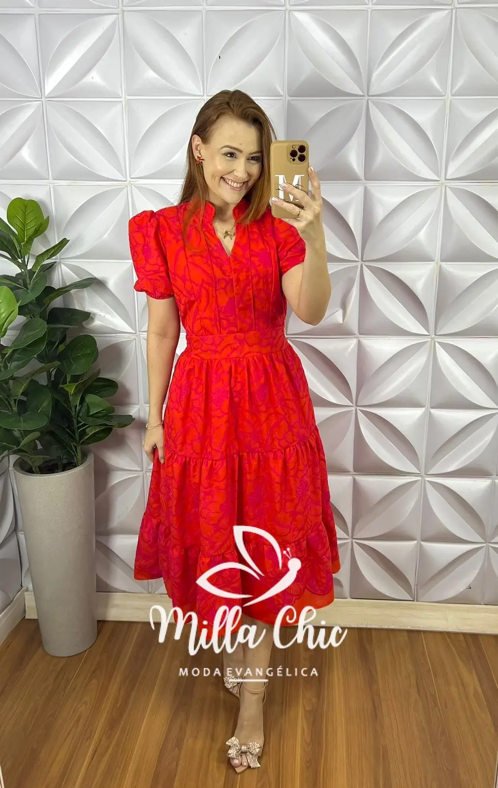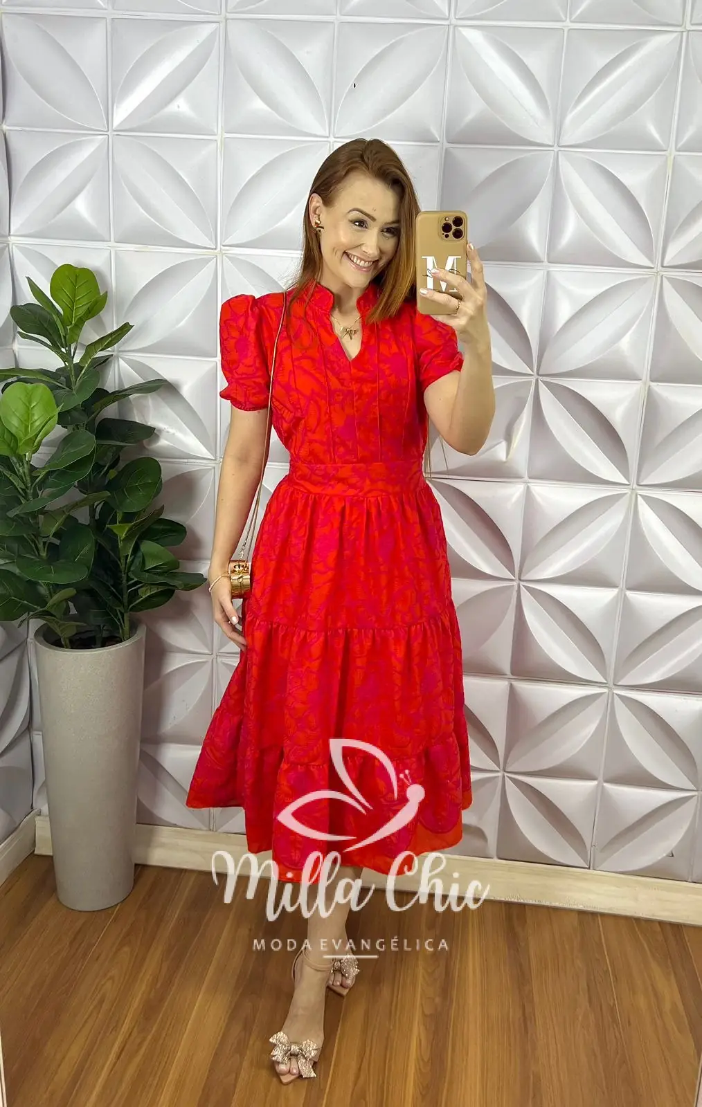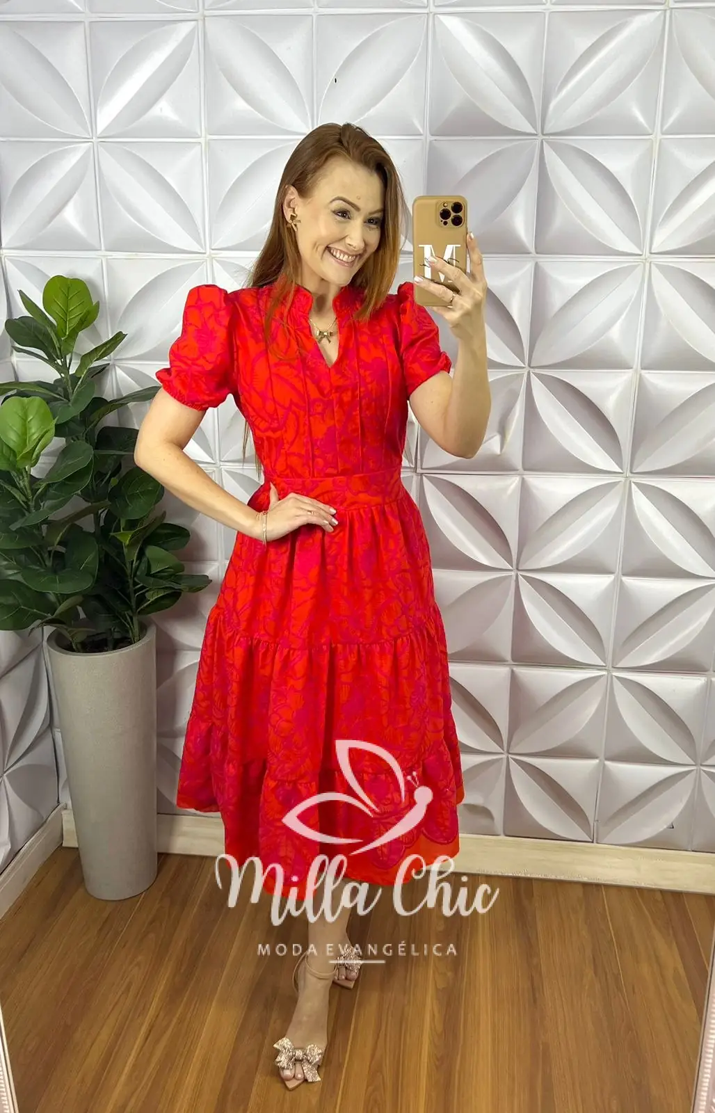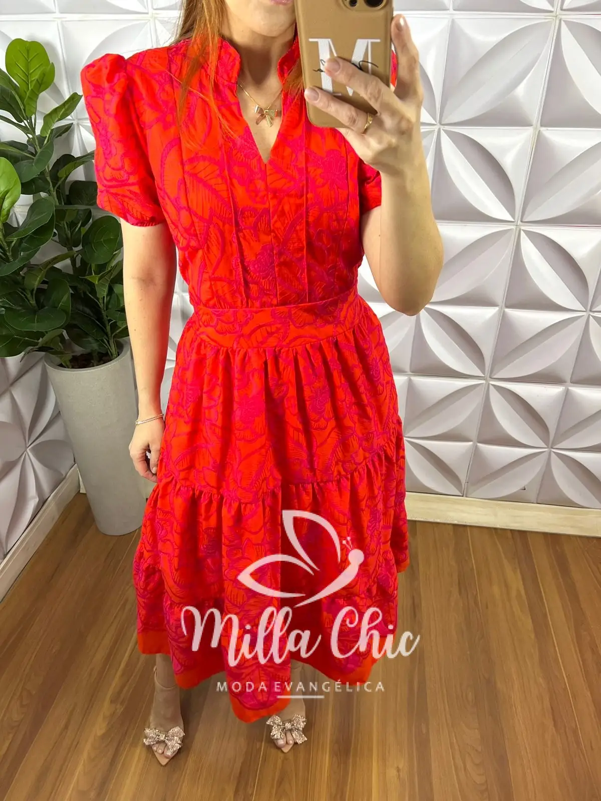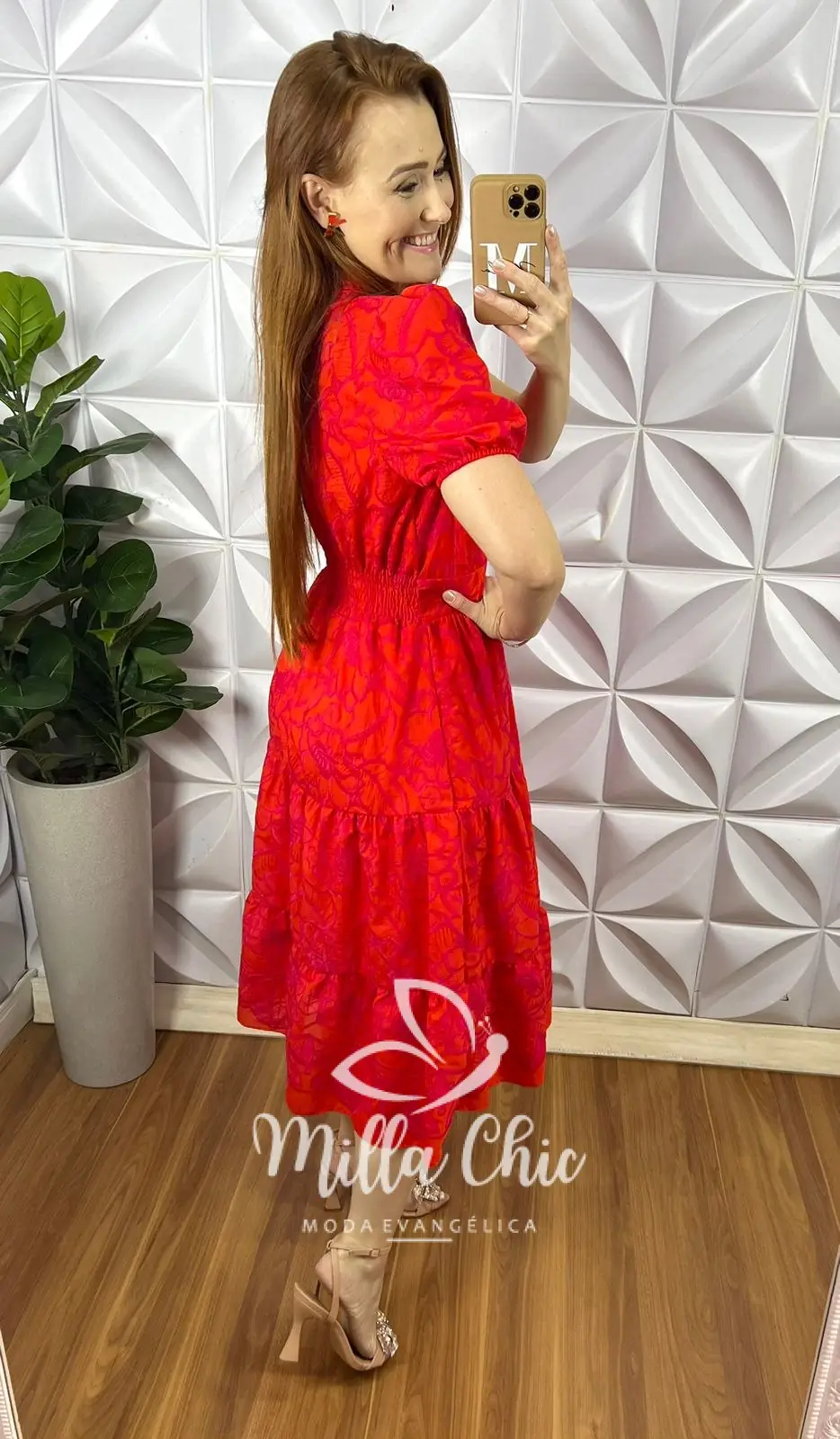 Vestido Leise tecido com caimento incrível! Elegante para ocasiões especiais com Bordado bicolor pink que esta um charme!