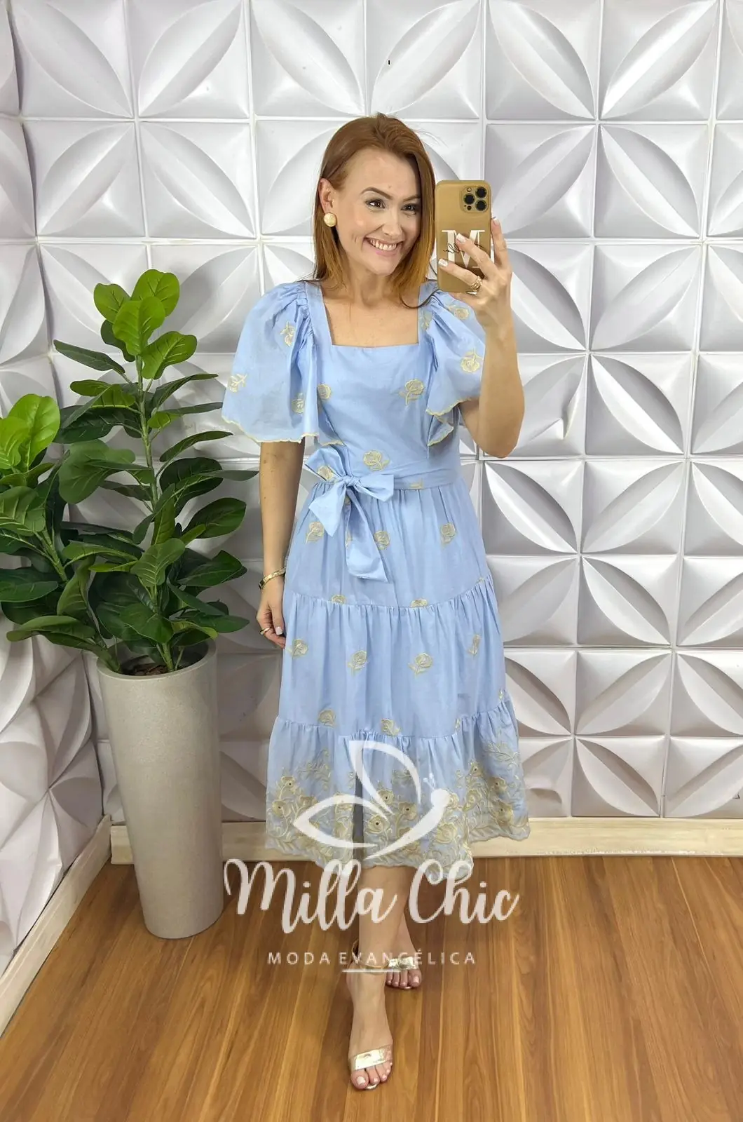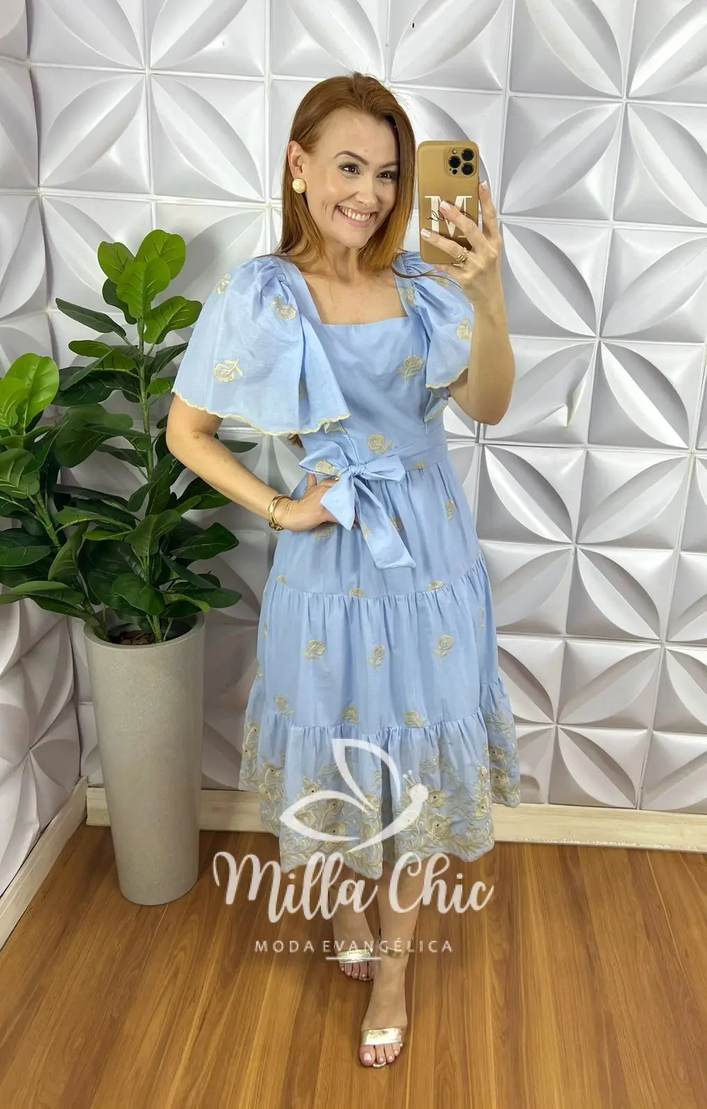 Vestido Leise Bordado tecido que traz delicadeza e romantismo para o look! Com bordados de borboleta Em alto relevo que esta um charme!