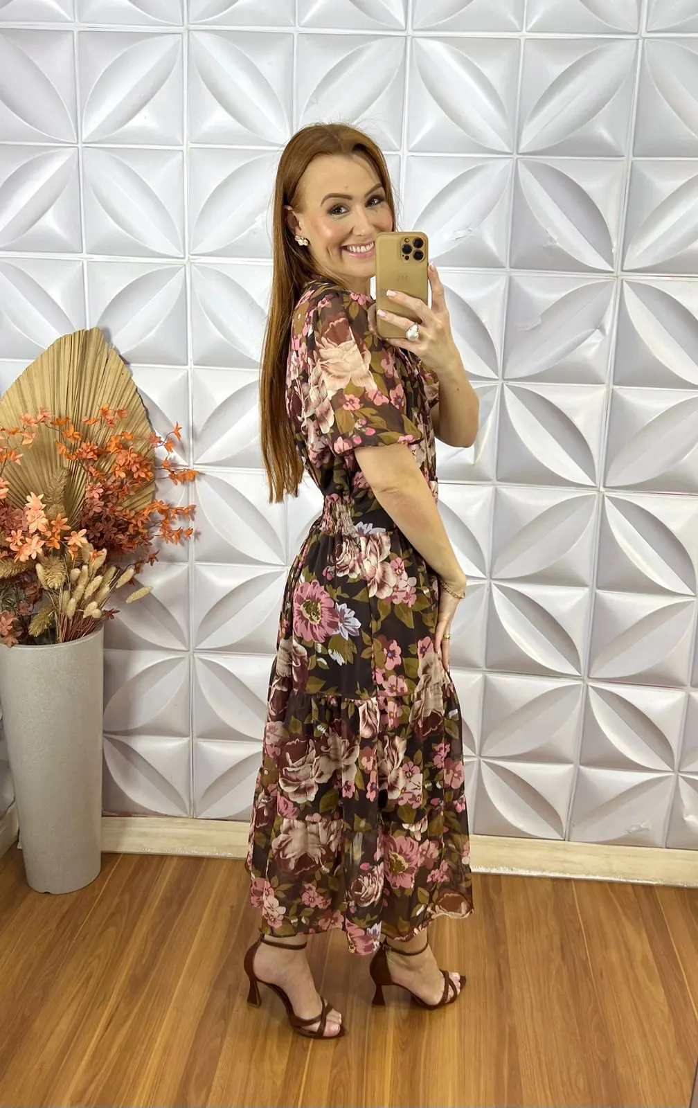 Vestido Letícia Em Chiffon Estampado – Cores de Outono
