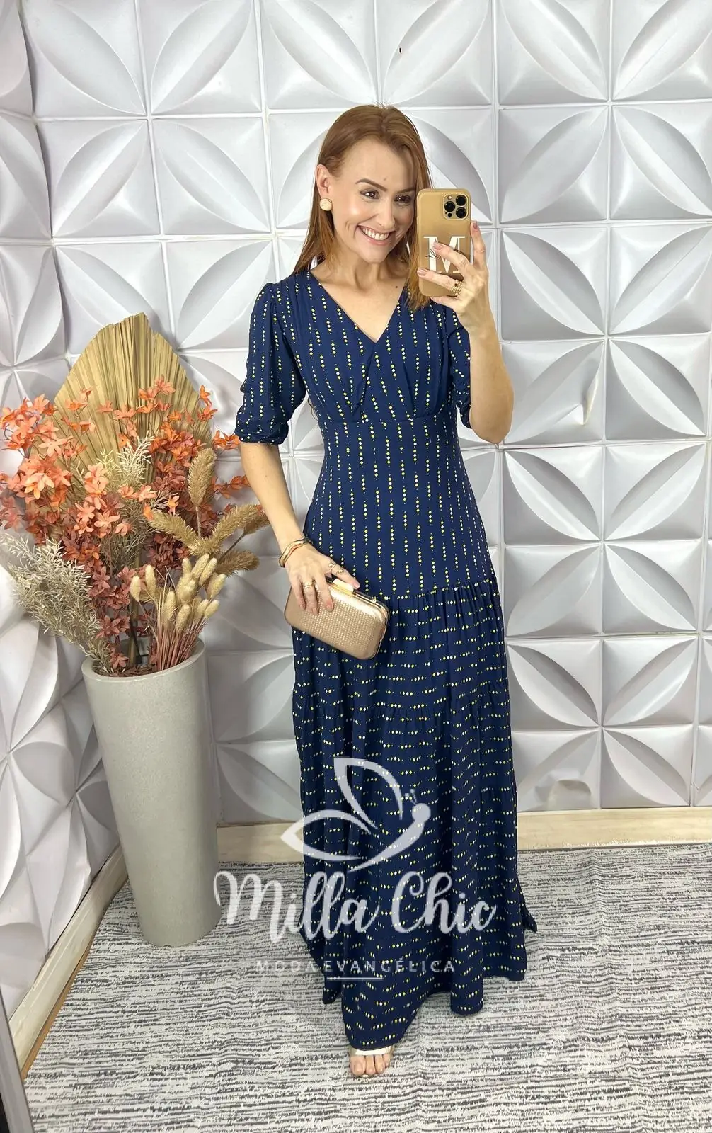 Esse é o vestido longo Leona nosso mais novo lançamento. Aquele modelo delicado feminino e com aquele toque moderno e autêntico .