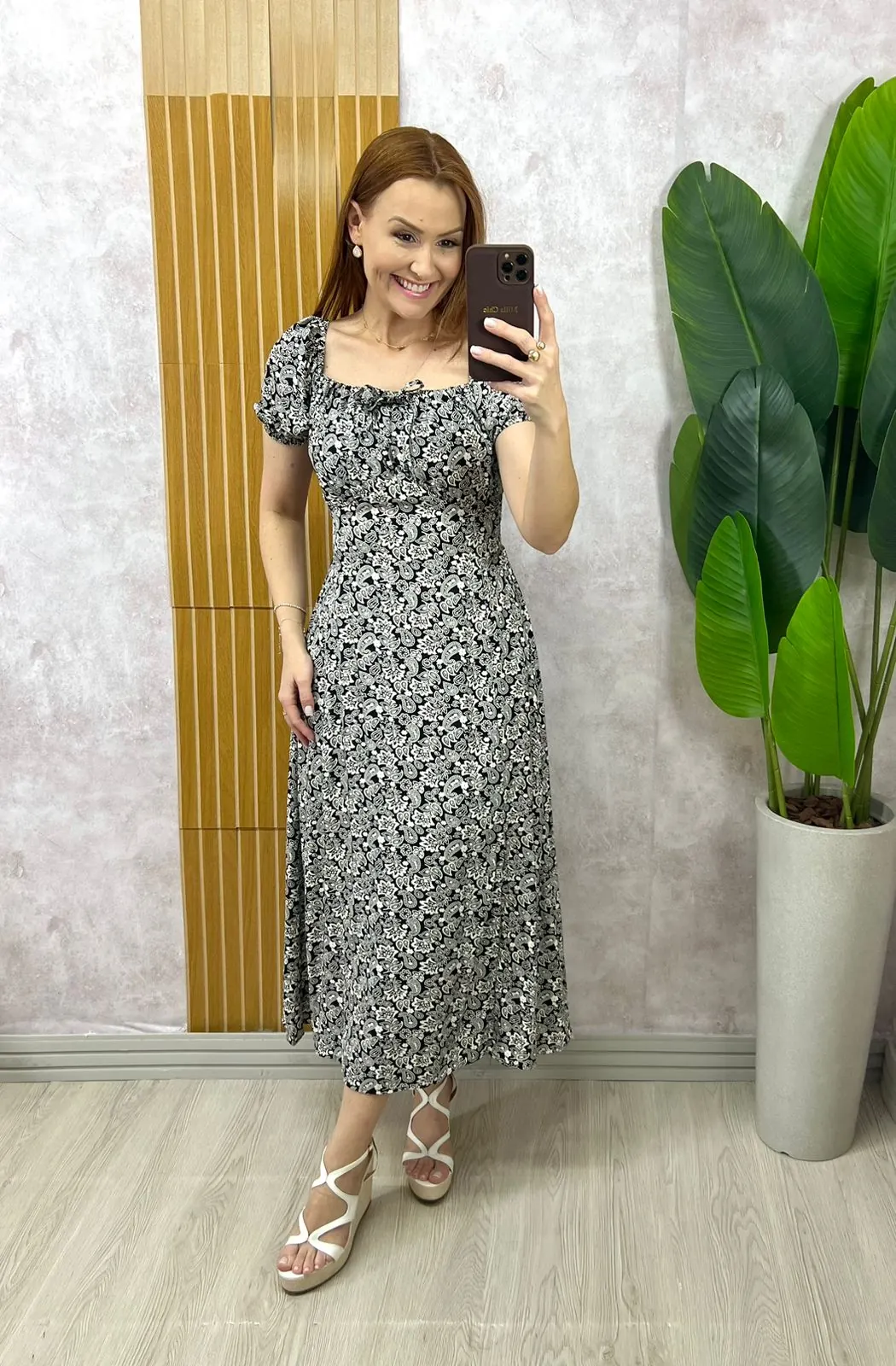 Vestido Luiza Em Viscolinho – Preto Estampa Paisley