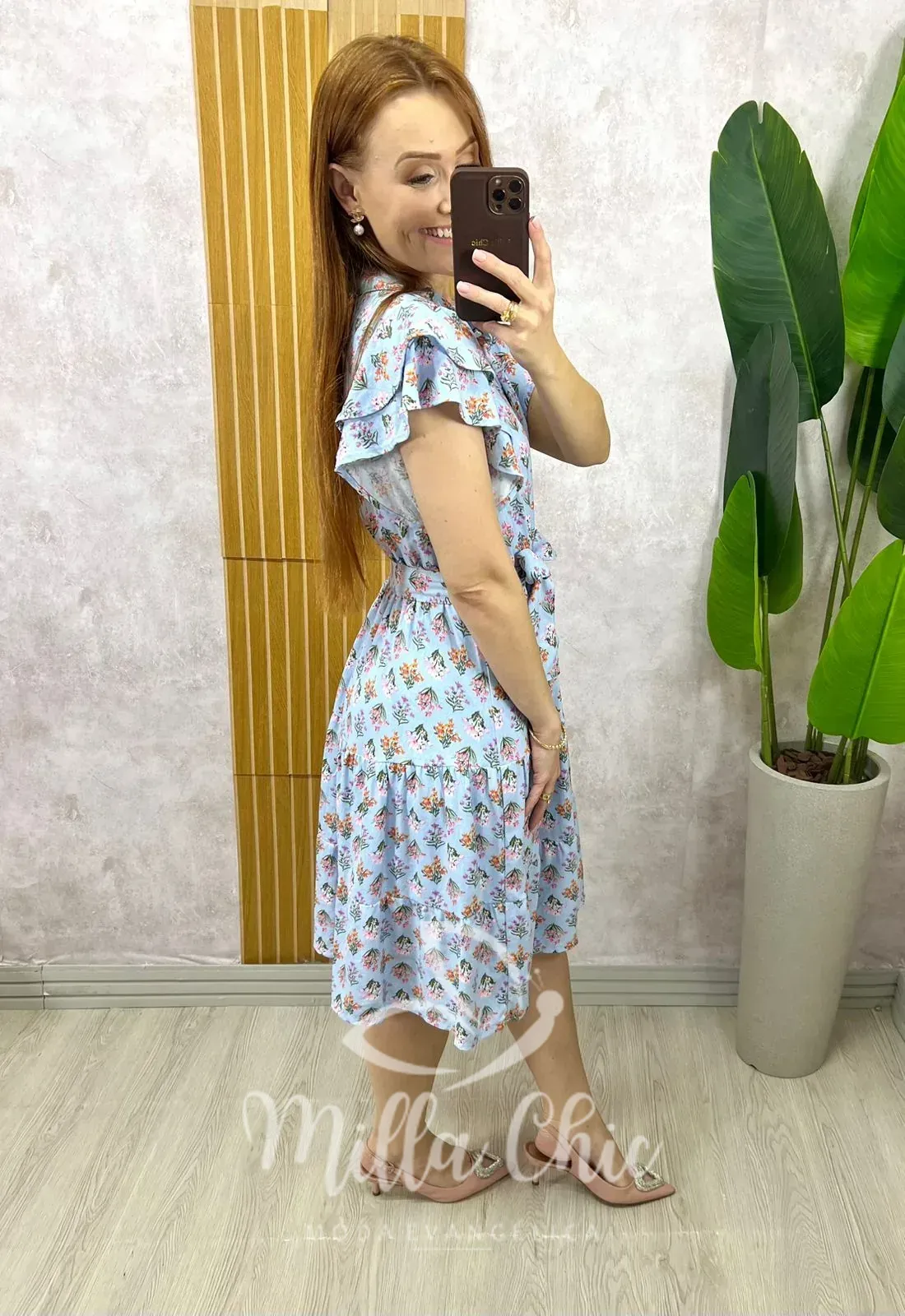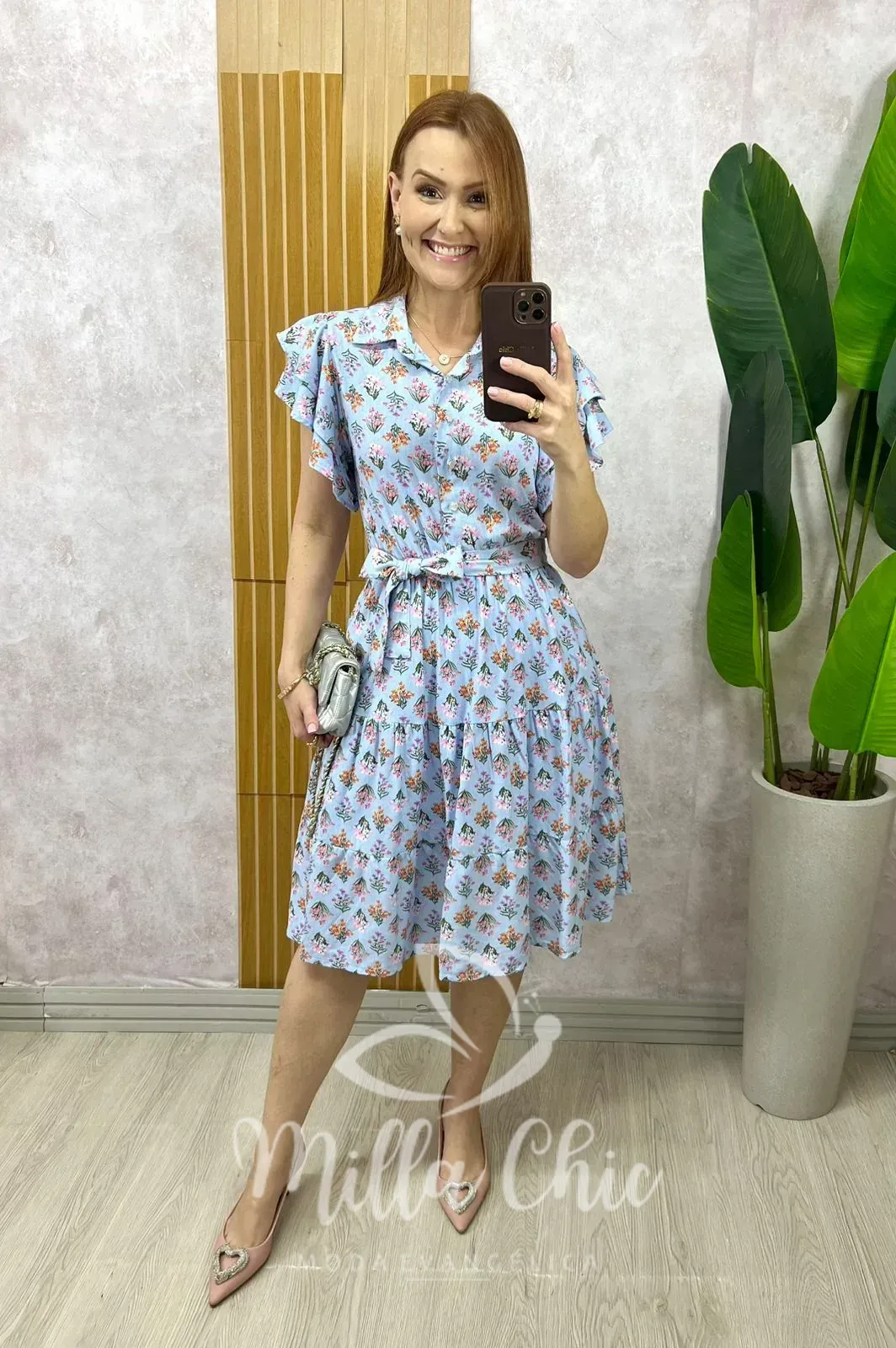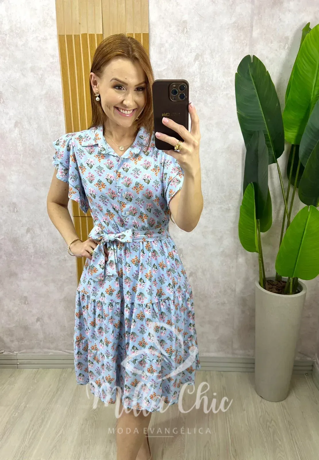Botões funcionais , acompanha a faixa cinto que dá aquela acinturada , a manga tem os babados que transmite modernidade e leveza . As saias são em marias que dão aquele movimento lindo e solto .
