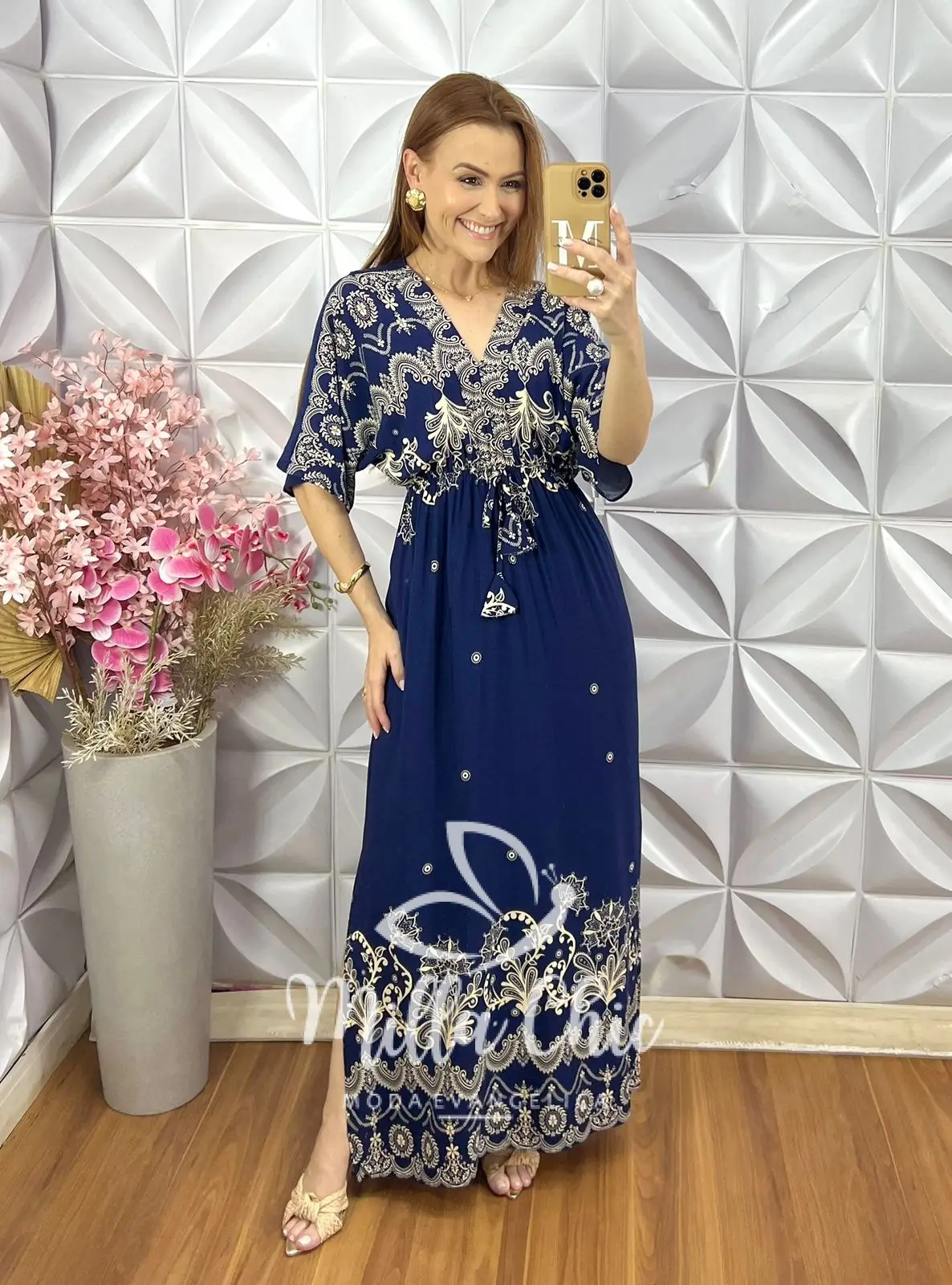 O vestido Manu tem essa estampa linda em mosaico e bem verão que transmite elegância e autenticidade. Ele apresenta um design longo que valoriza a silhueta feminina, proporcionando um caimento perfeito. Com uma fenda lateral bem discreta, ele une praticidade e charme, permitindo que você carregue estilo encantador.