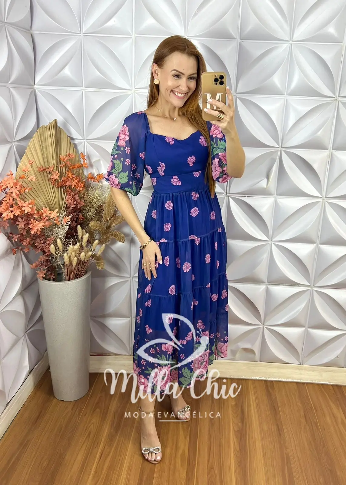 Esse é o vestido Mariana todo confeccionado no tecido chiffon . É um tecido leve e voal tem transparência e todo forrado na frente e tem caimento perfeito e leve.