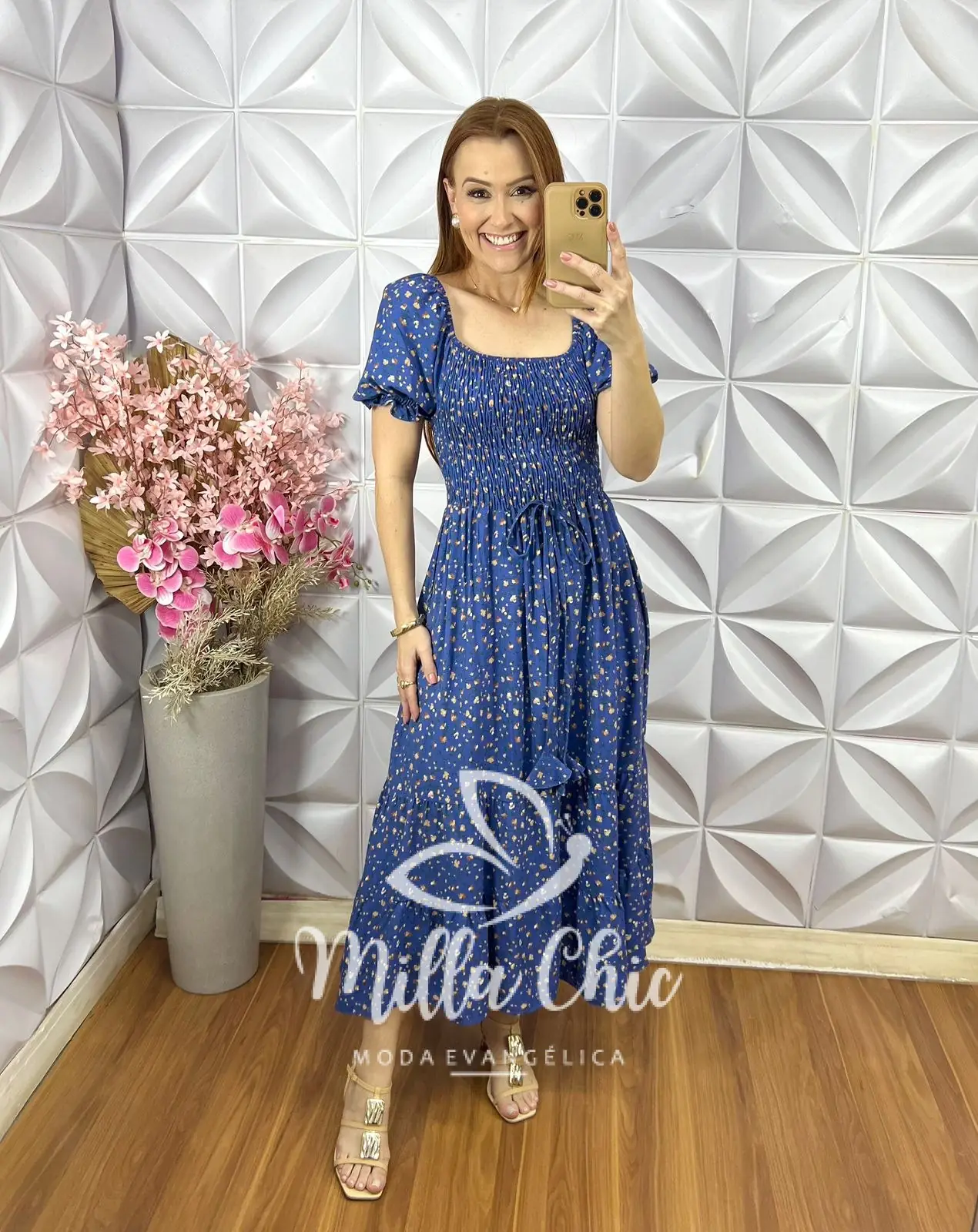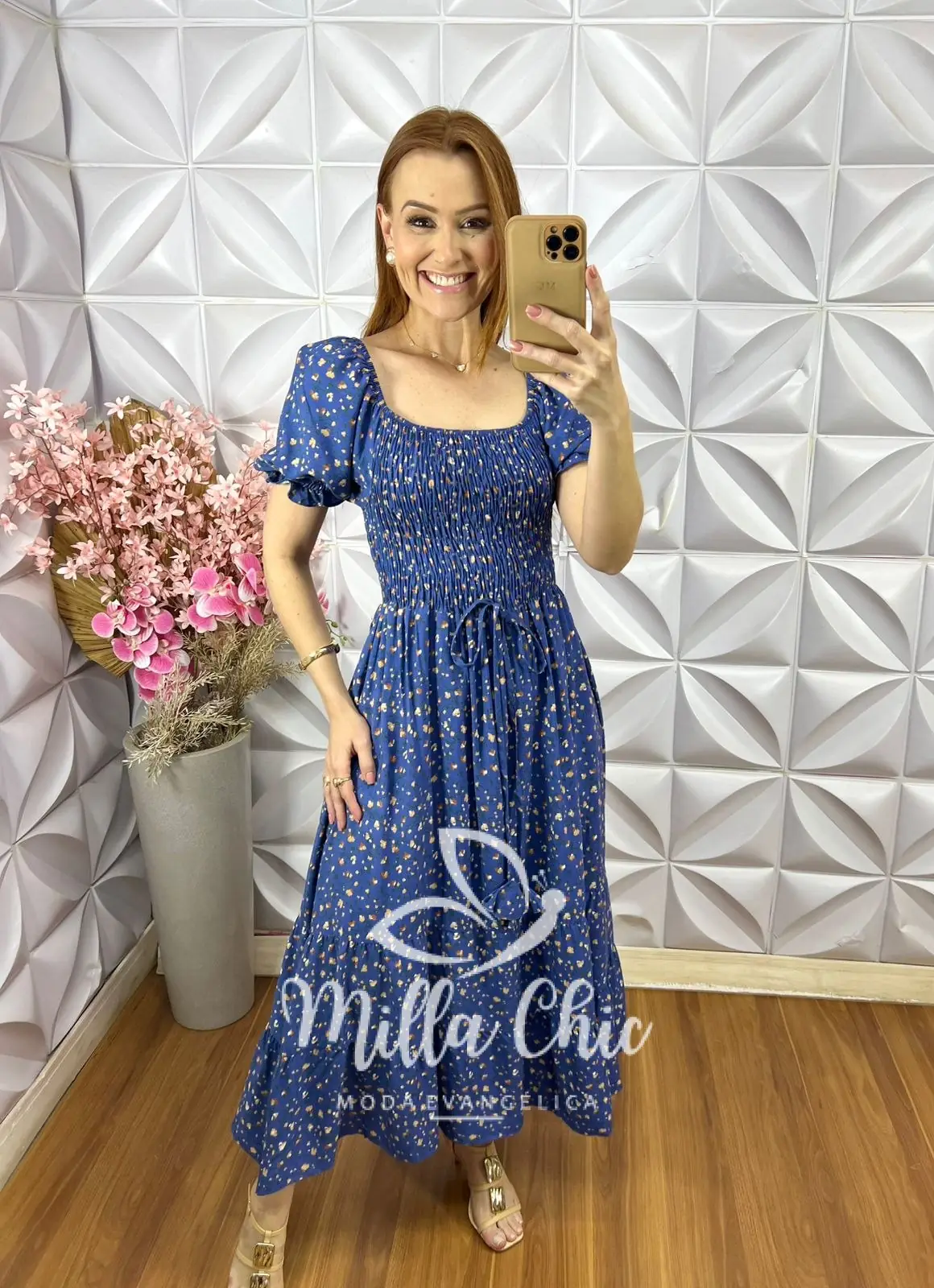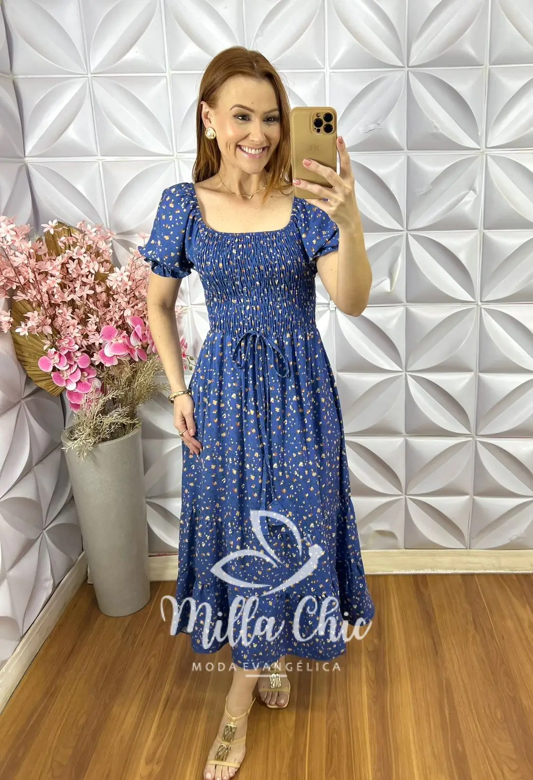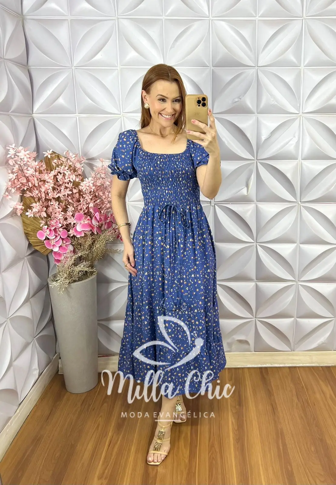 O vestido Melina apresenta um design mídi que fica lindo e a cintura fica bem marcada por conta do design do elastax na parte da blusa proporcionando um caimento perfeito.