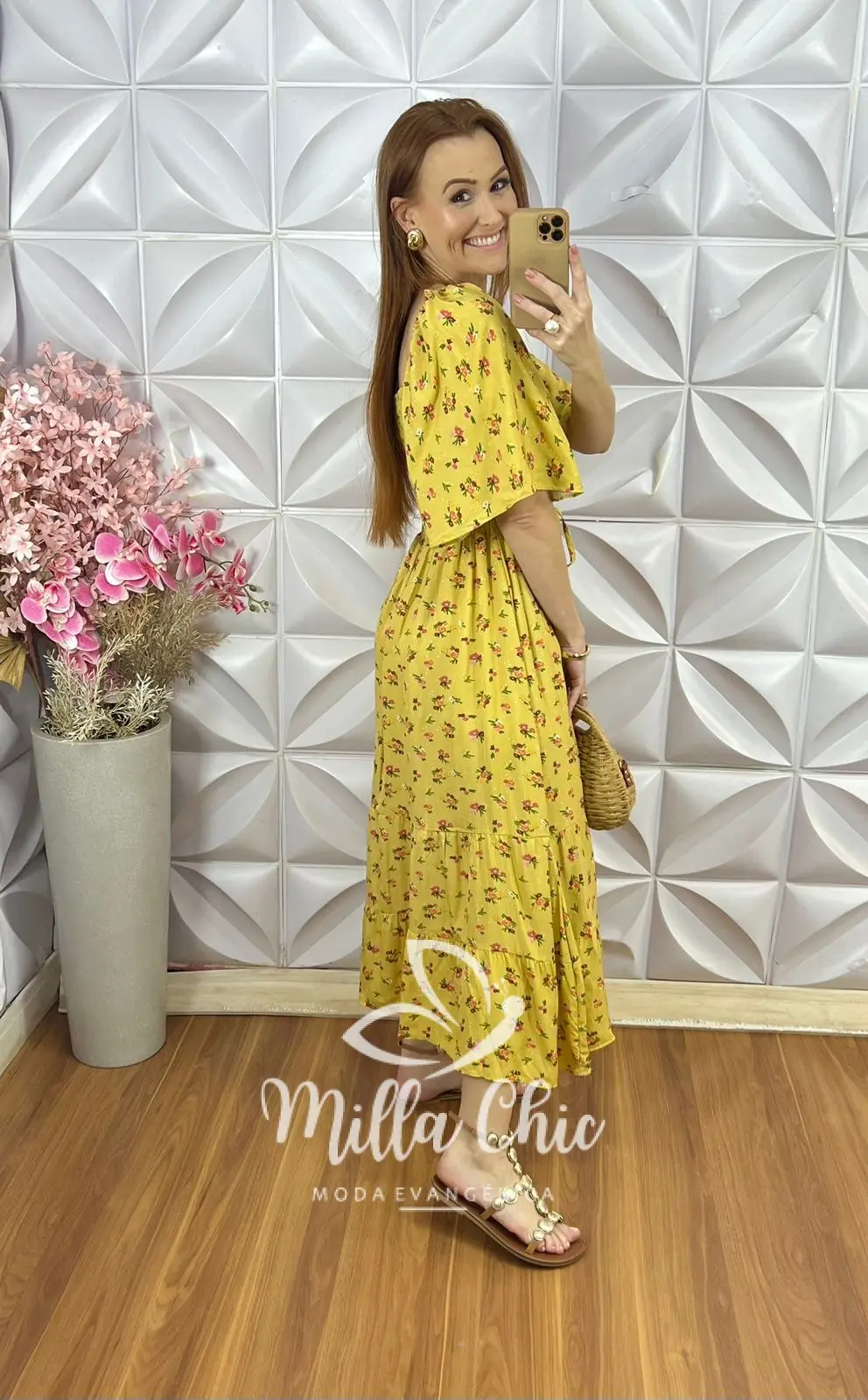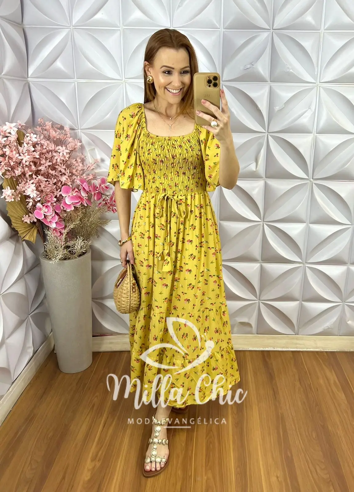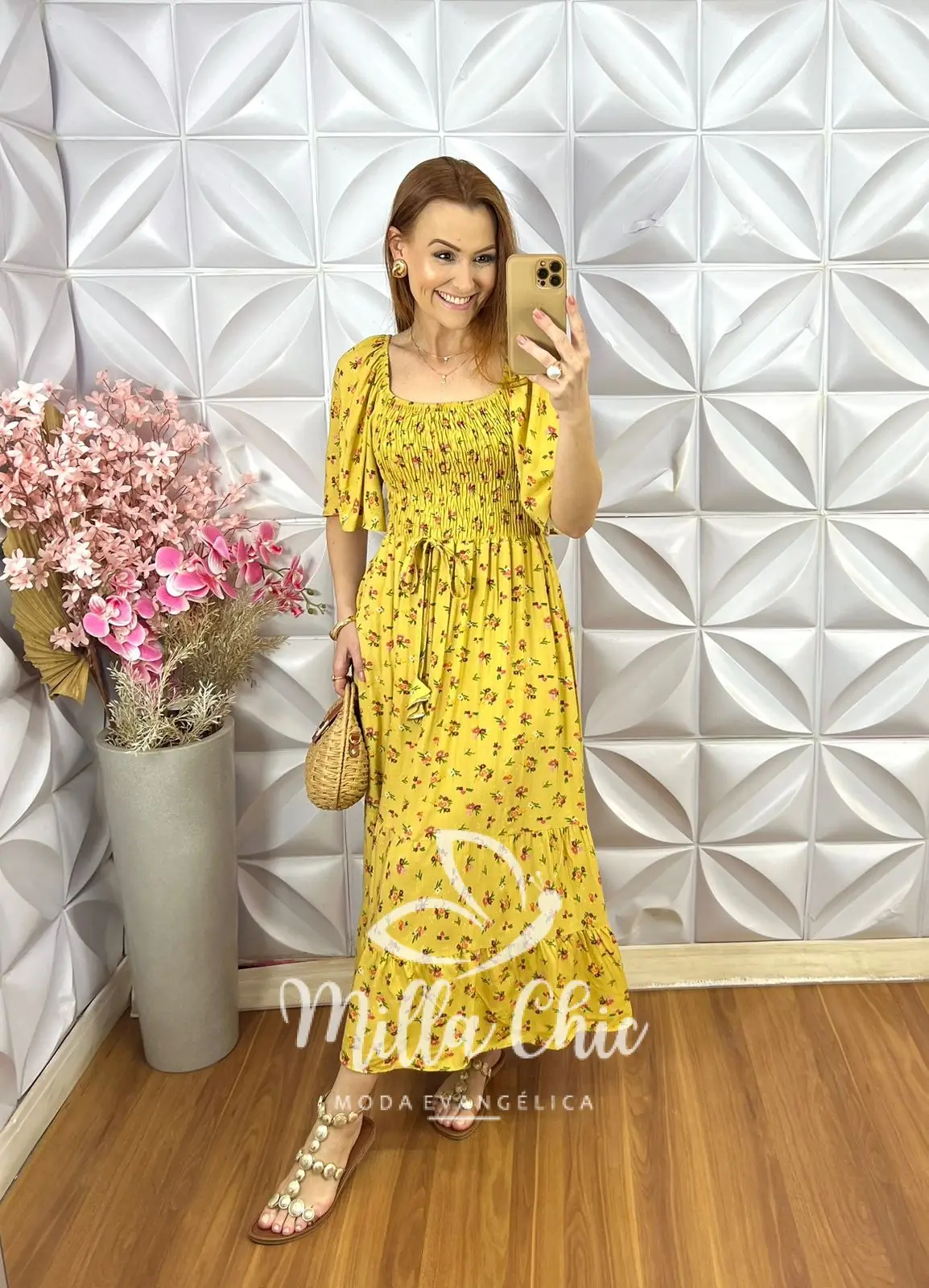 O vestido Melina apresenta um design mídi que fica lindo e a cintura fica bem marcada por conta do design do elastax na parte da blusa proporcionando um caimento perfeito.