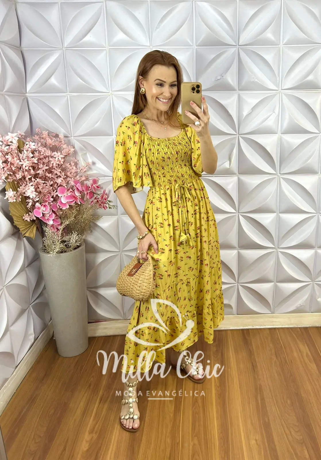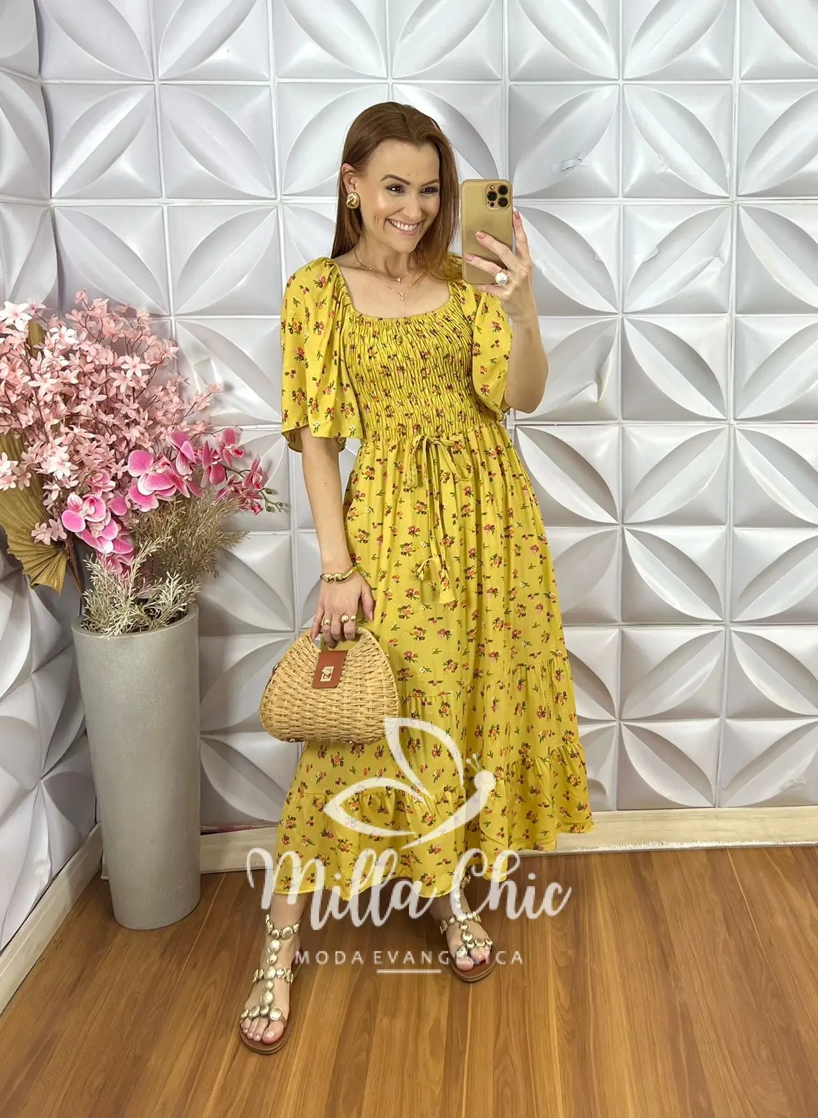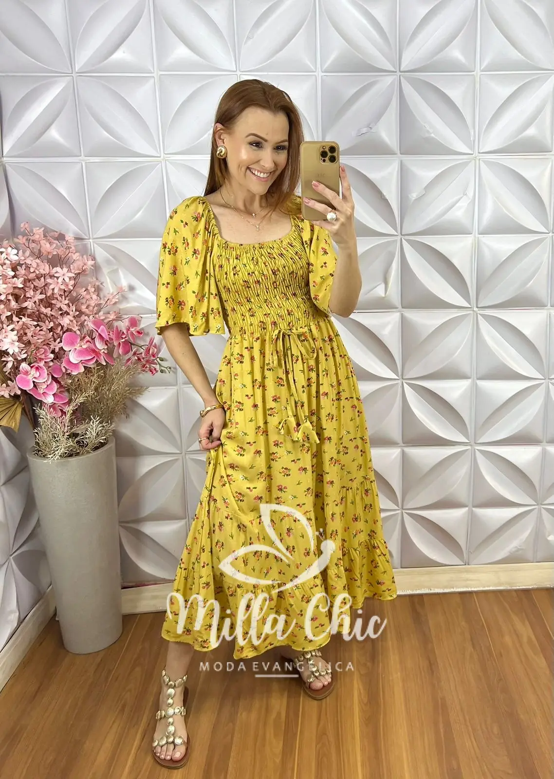 O vestido Melina apresenta um design mídi que fica lindo e a cintura fica bem marcada por conta do design do elastax na parte da blusa proporcionando um caimento perfeito.
