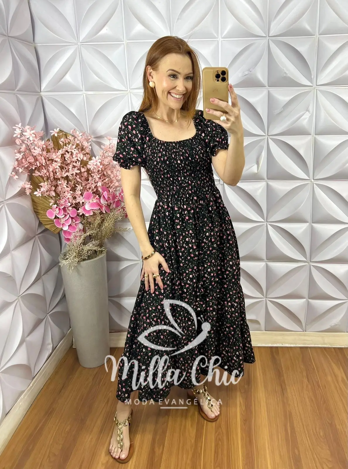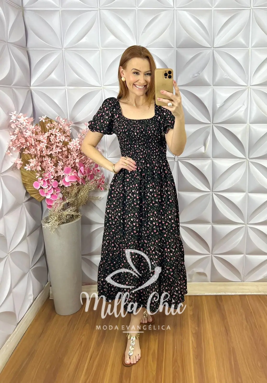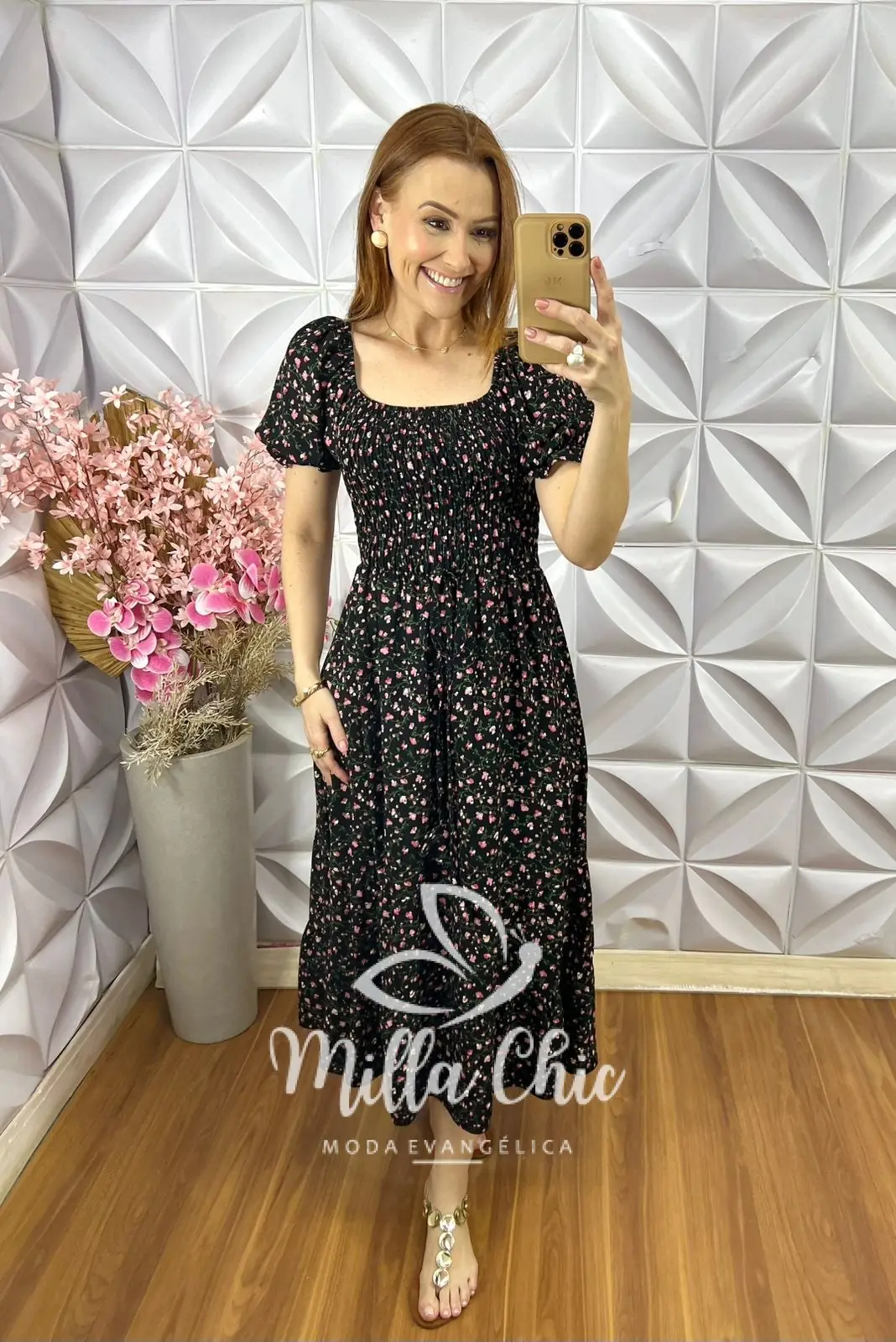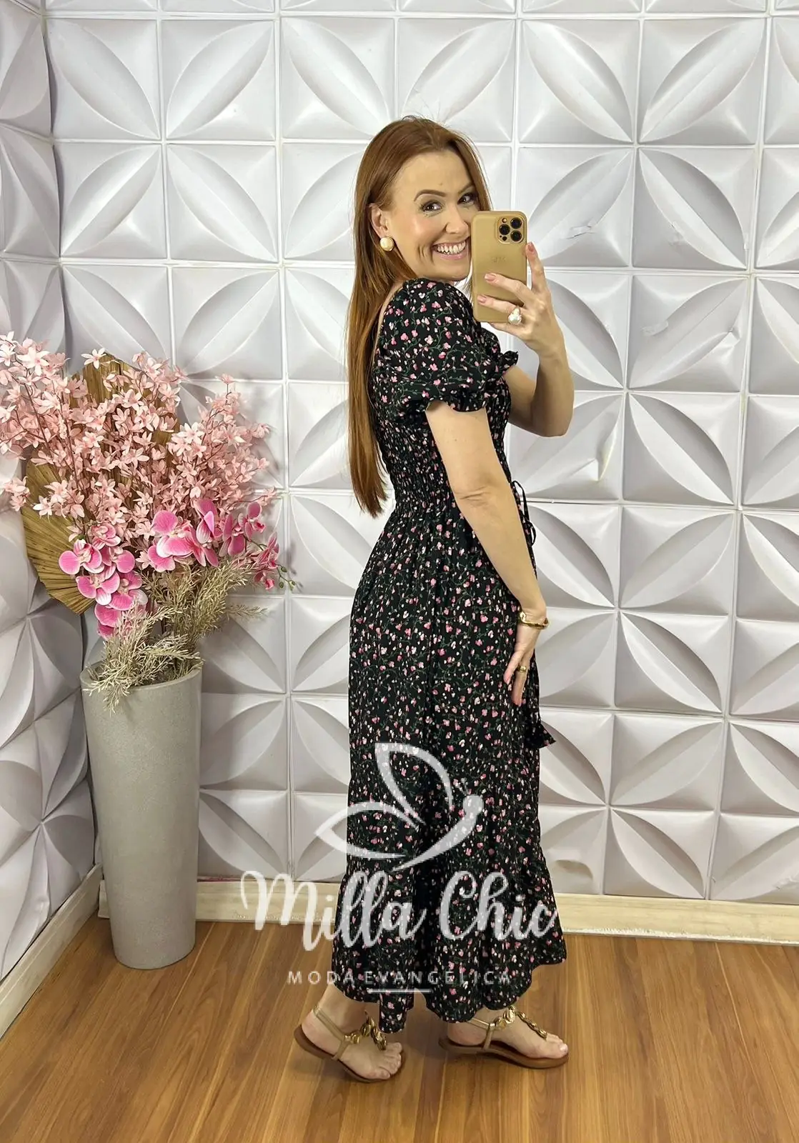 O vestido Melina apresenta um design mídi que fica lindo e a cintura fica bem marcada por conta do design do elastax na parte da blusa proporcionando um caimento perfeito.