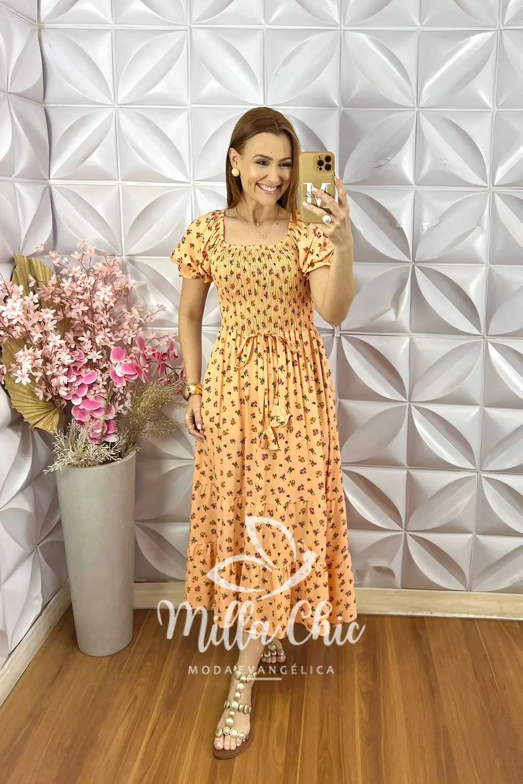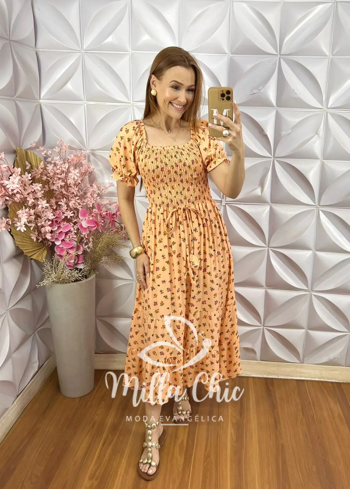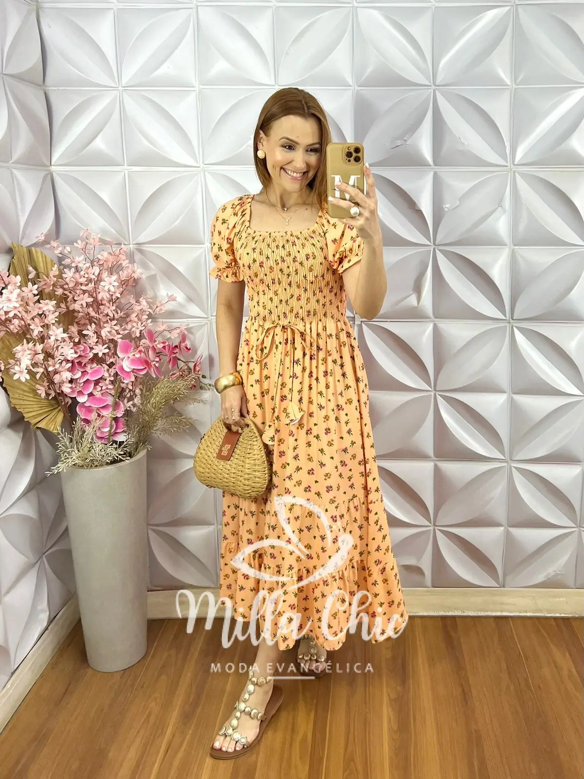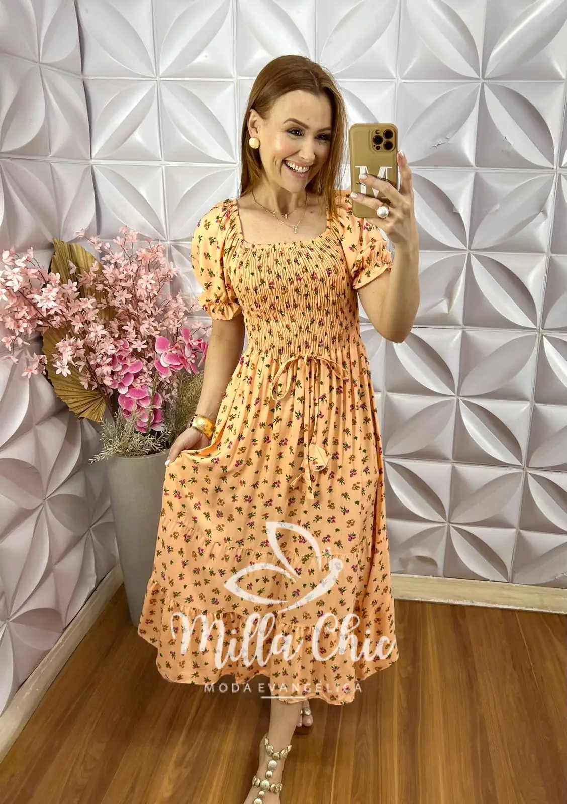 O vestido Melina apresenta um design mídi que fica lindo e a cintura fica bem marcada por conta do design do elastax na parte da blusa proporcionando um caimento perfeito.