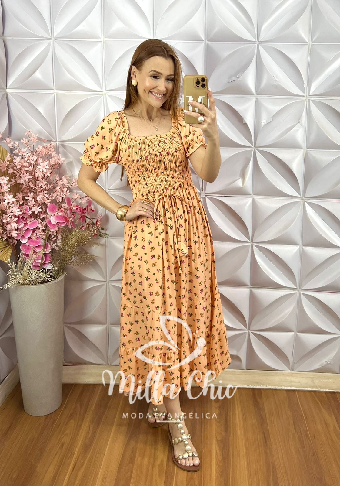 Vestido Melina Manga Princesa - Pêssego - Milla Chic