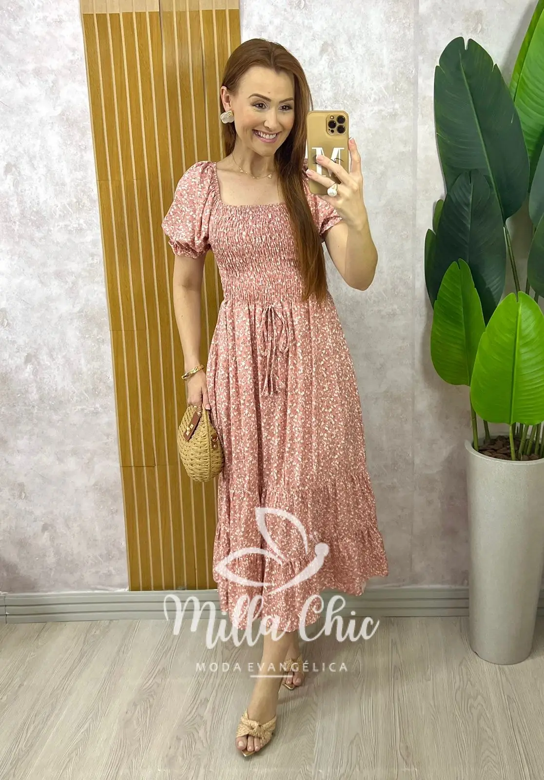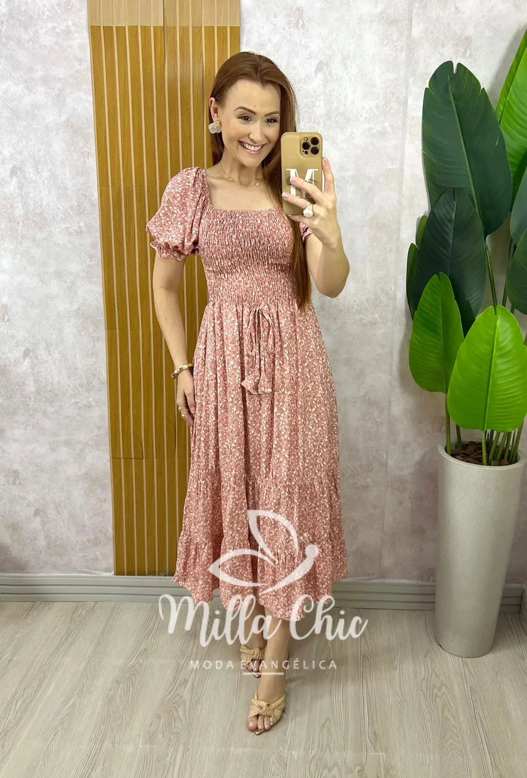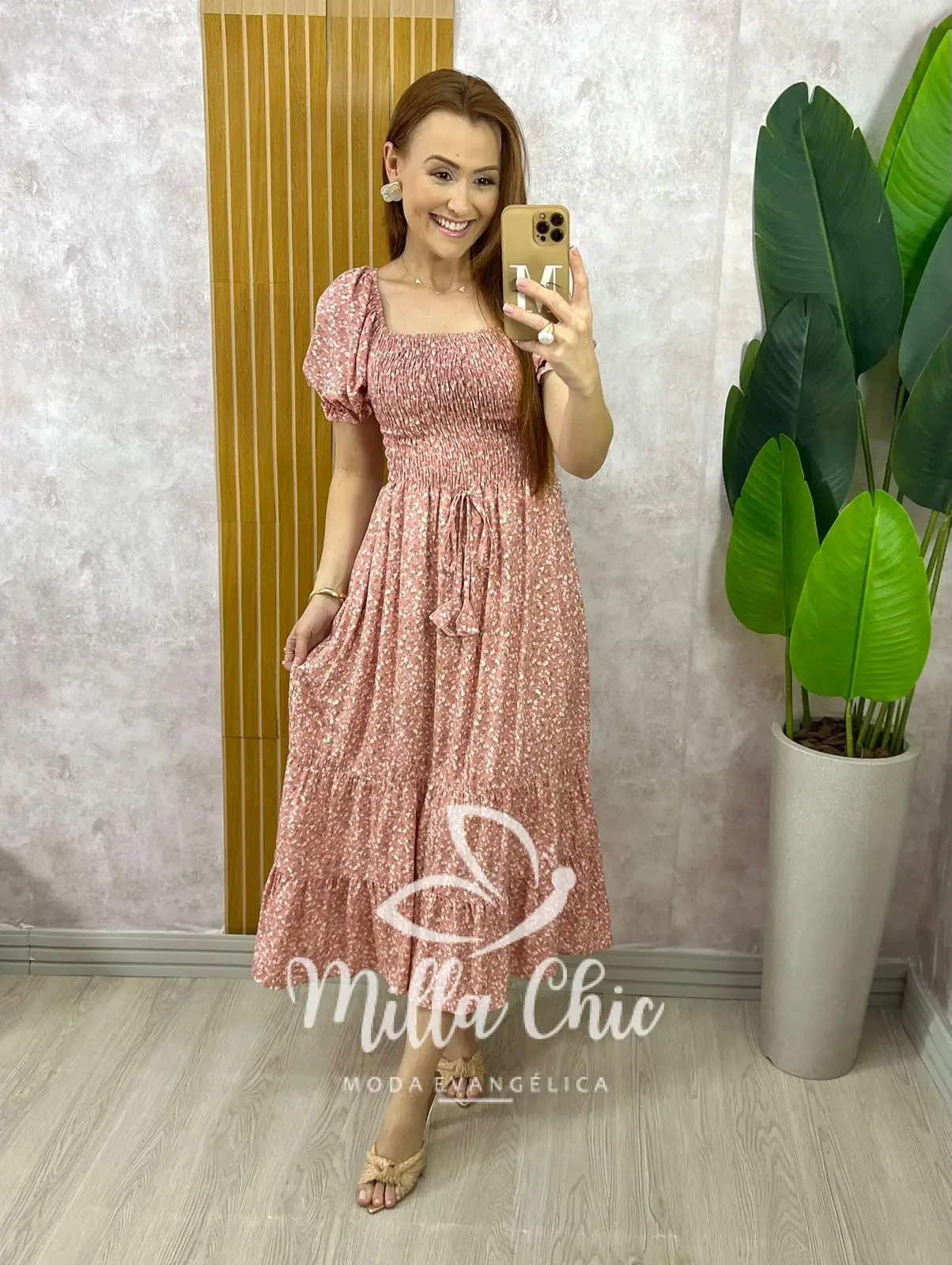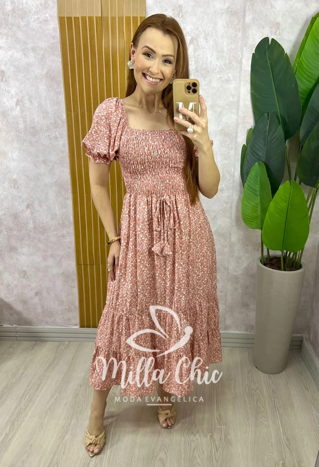 O vestido Melina apresenta um design mídi que fica lindo e a cintura fica bem marcada por conta do design do elastex na parte da blusa proporcionando um caimento perfeito.